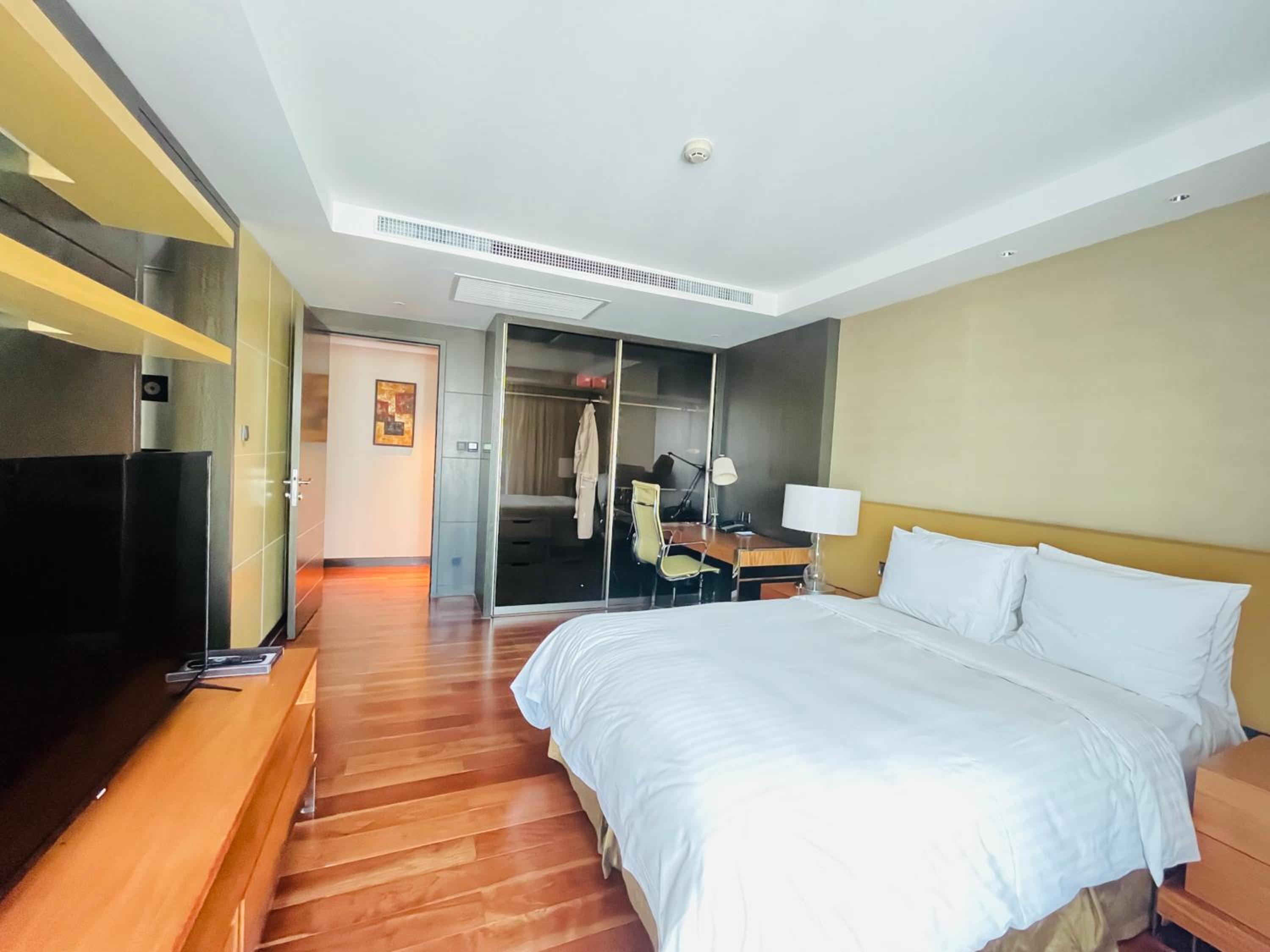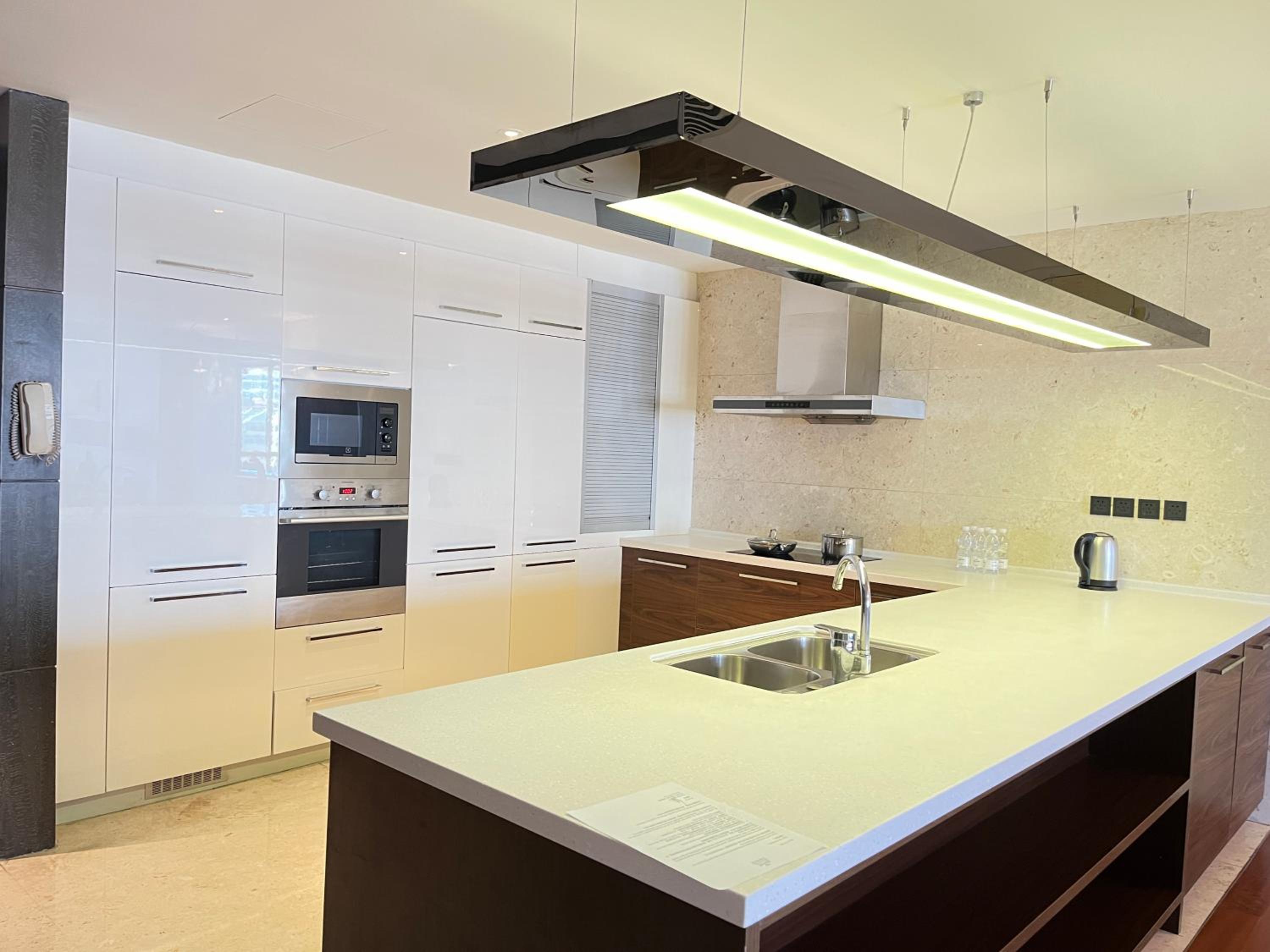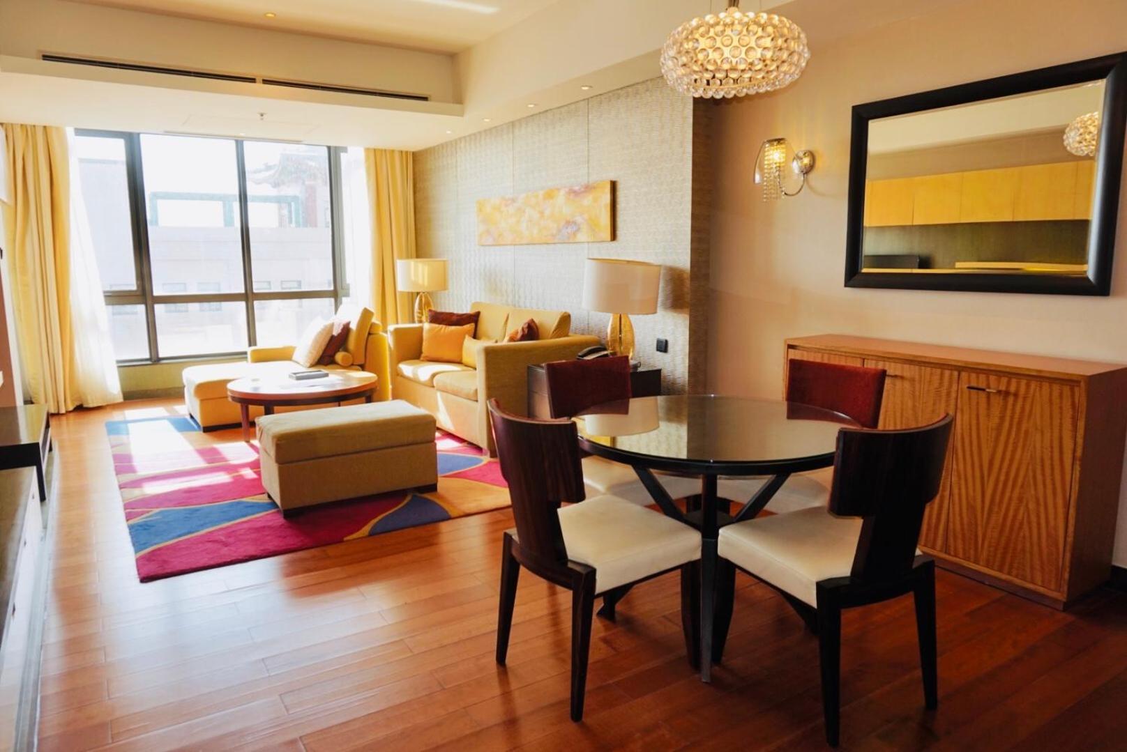 Spacious and Modern Living: The Sandalwood Marriott Executive Apartments offer 1 to 3 bedroom apartments with soundproof windows, separate living rooms, flat-screen TVs, and fully-equipped kitchens. Some units even feature balconies with scenic views.