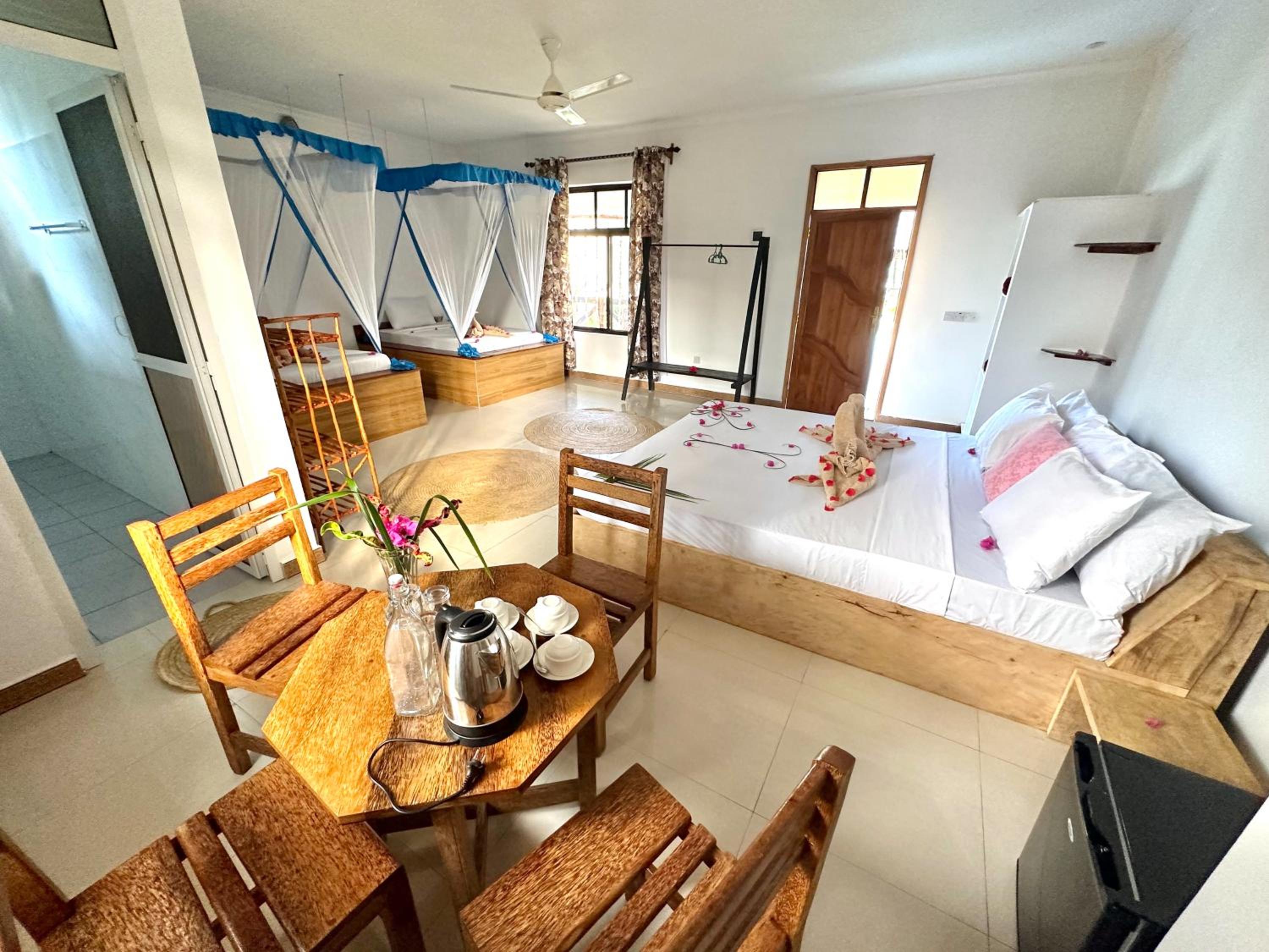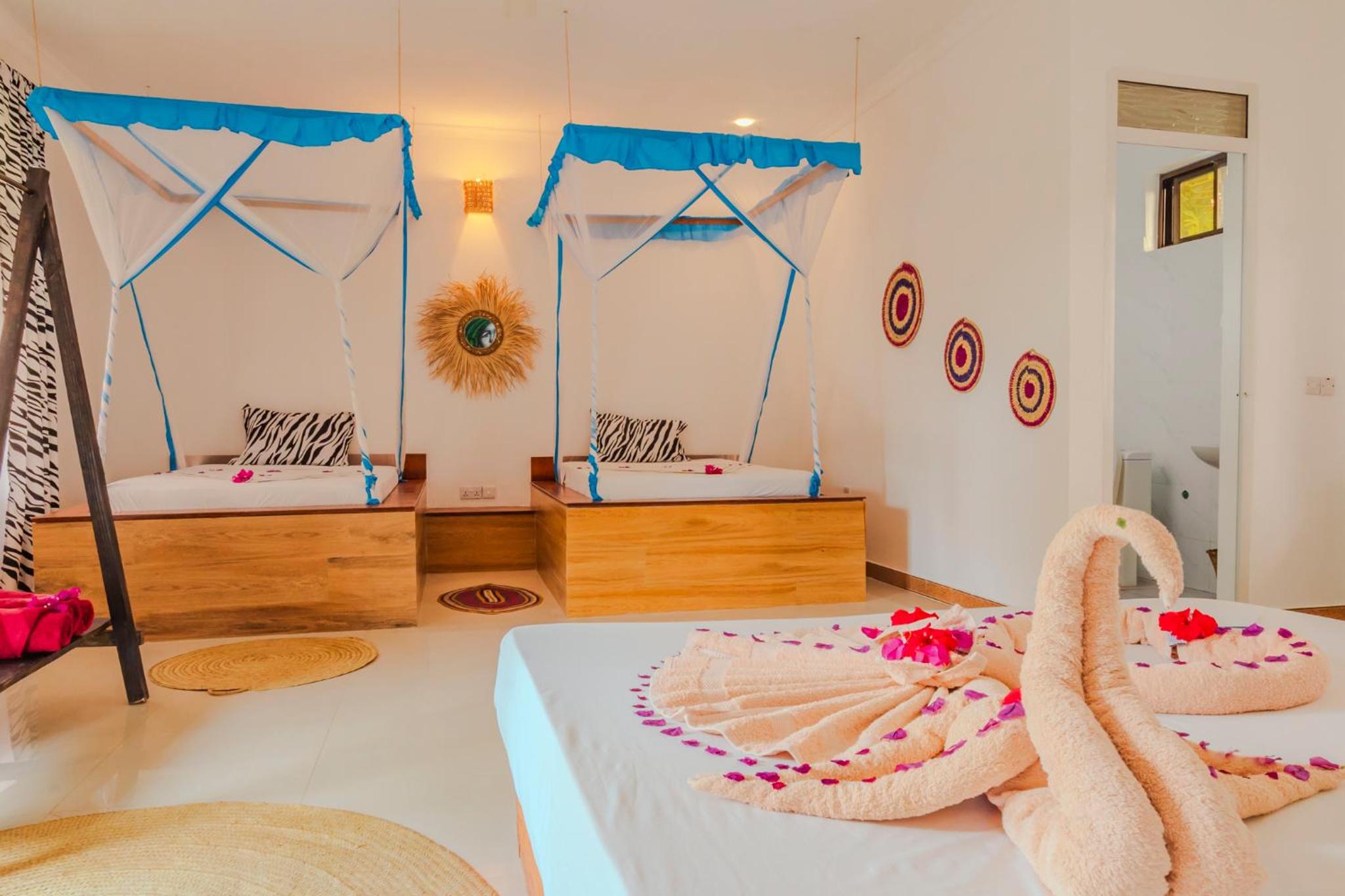 Explore the surroundings of Pwani Mchangani with activities like cycling or head to Matemwe Beach just 2.3 km away. For a cultural experience, visit the Peace Memorial Museum located 39 km from the hotel. Book now to experience a perfect blend of luxury and relaxation at TIANDE Boutique Hotel.