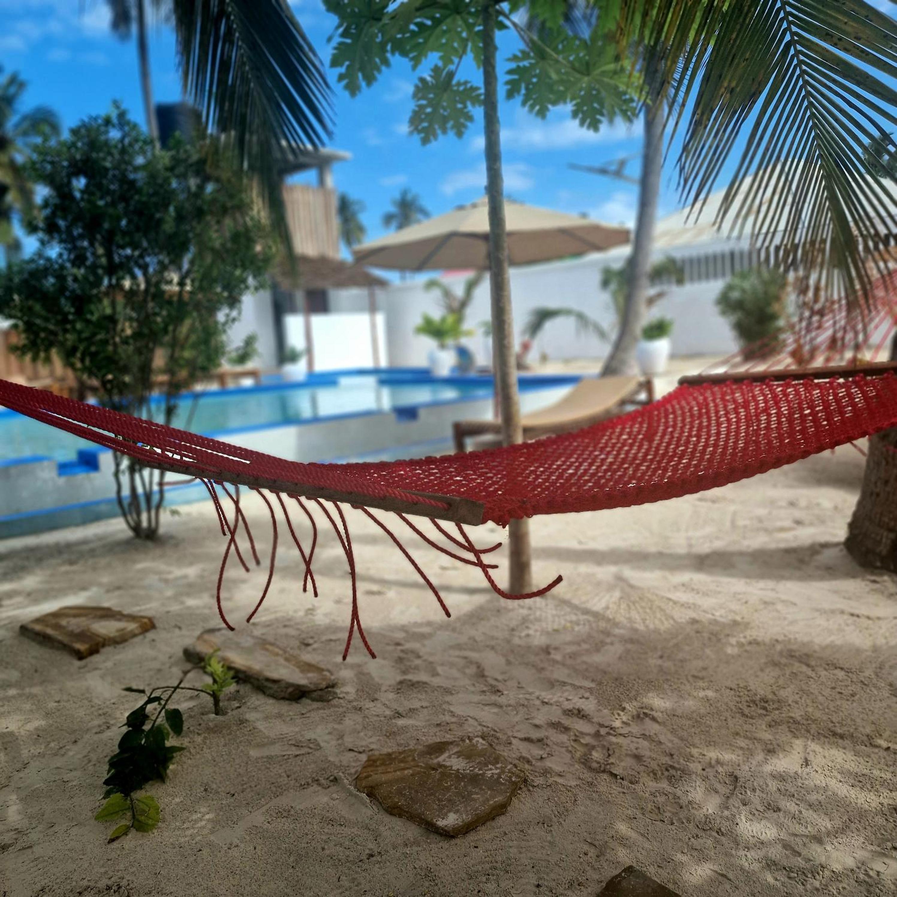 Credit card machine sometimes could not connect to network which led to unexpected cash expenses. King size bed did not have large enough mattress to cover frame so was uncomfortable getting on and off bed, sometimes would get scraped by wooden edge of bed frame. Pool area was nice.