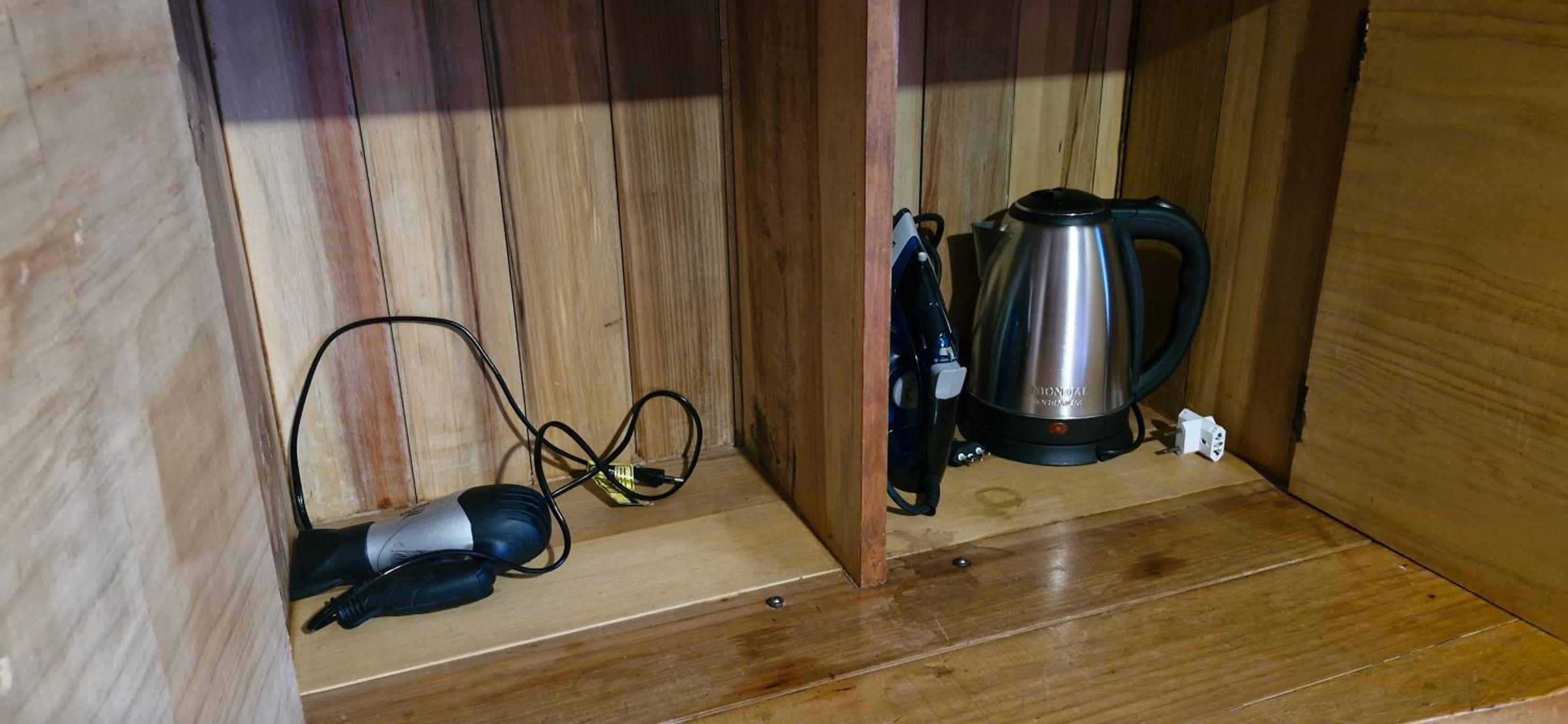 Private bathroom with hair dryer and free toiletries