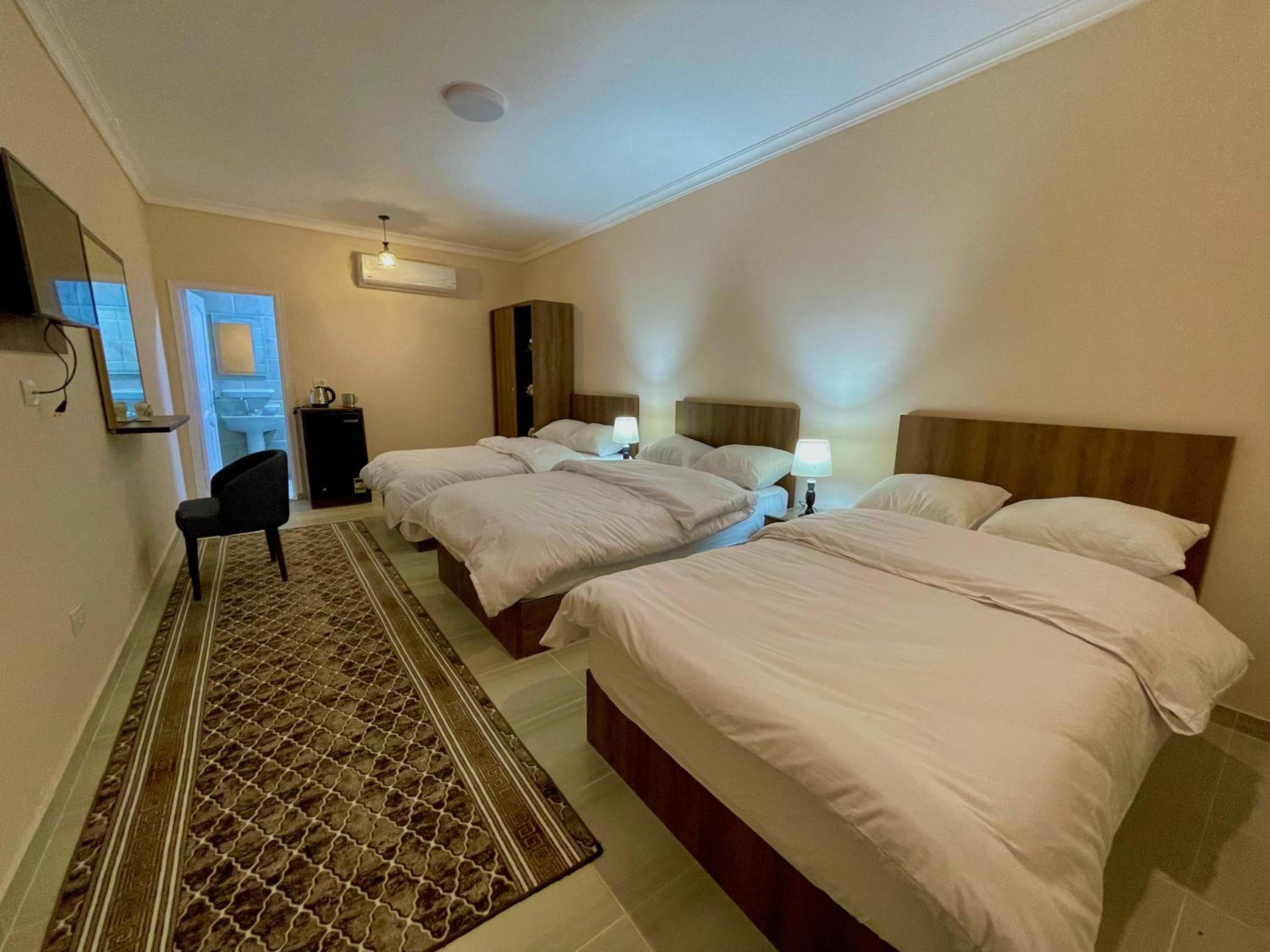 The hotel features modern rooms with essential amenities such as a fridge, minibar, and flat-screen TV. Some rooms also offer balconies for a touch of luxury.