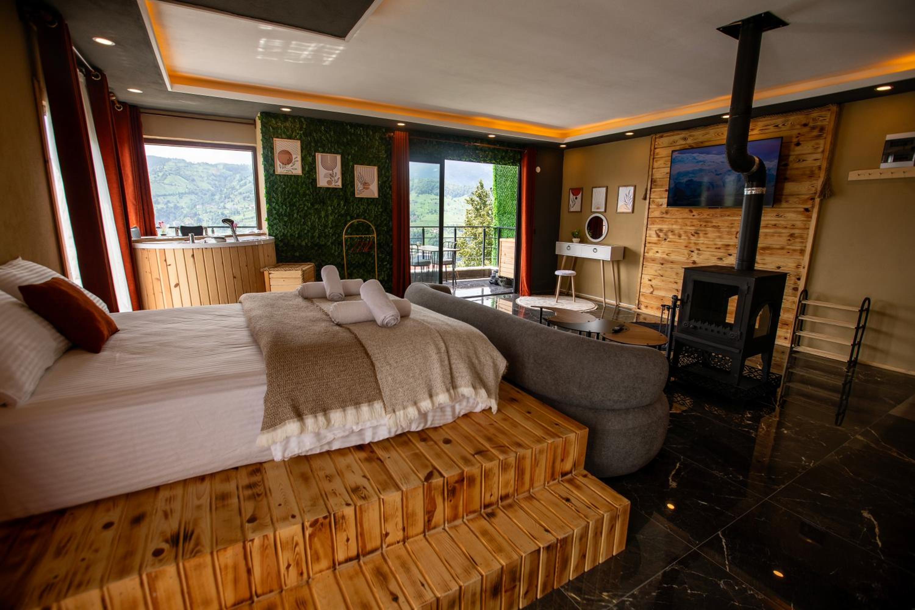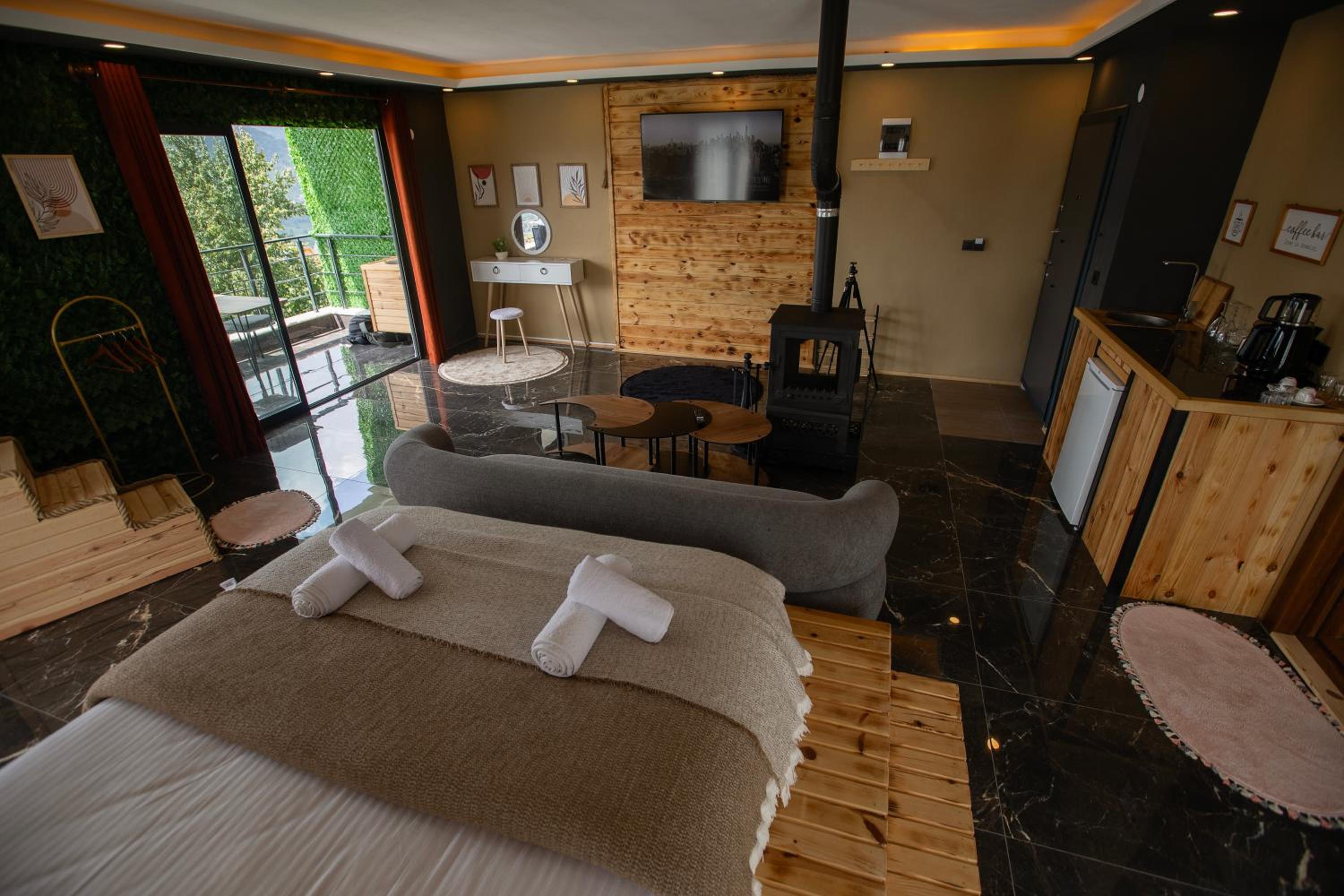 Yaylamisun Suite Otel boasts a sauna and free WiFi throughout the property. Each unit features a fully equipped kitchenette, fireplace, and spectacular mountain views.