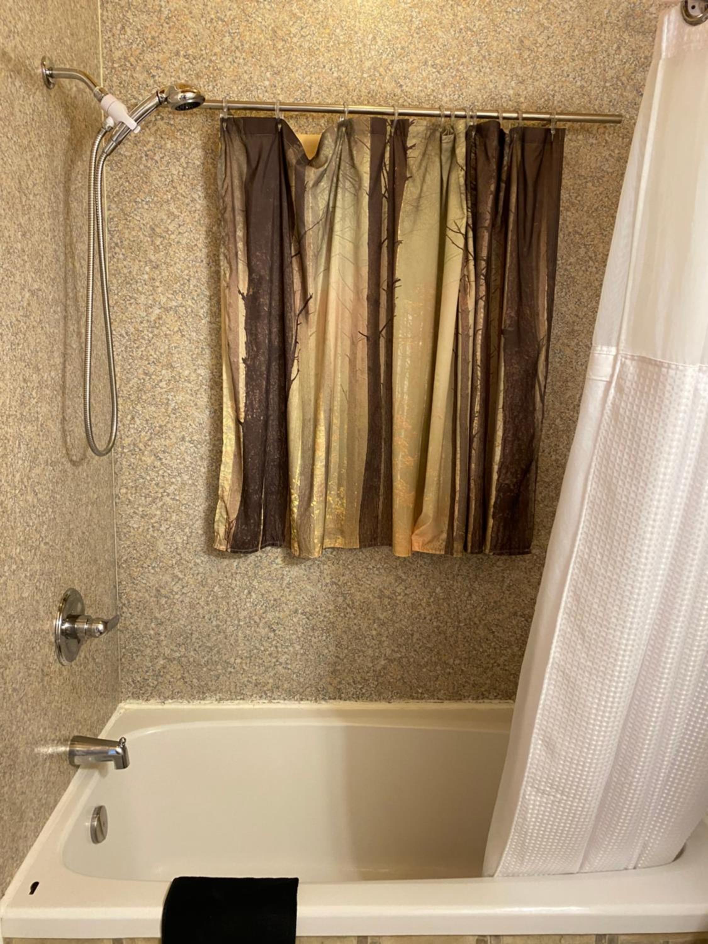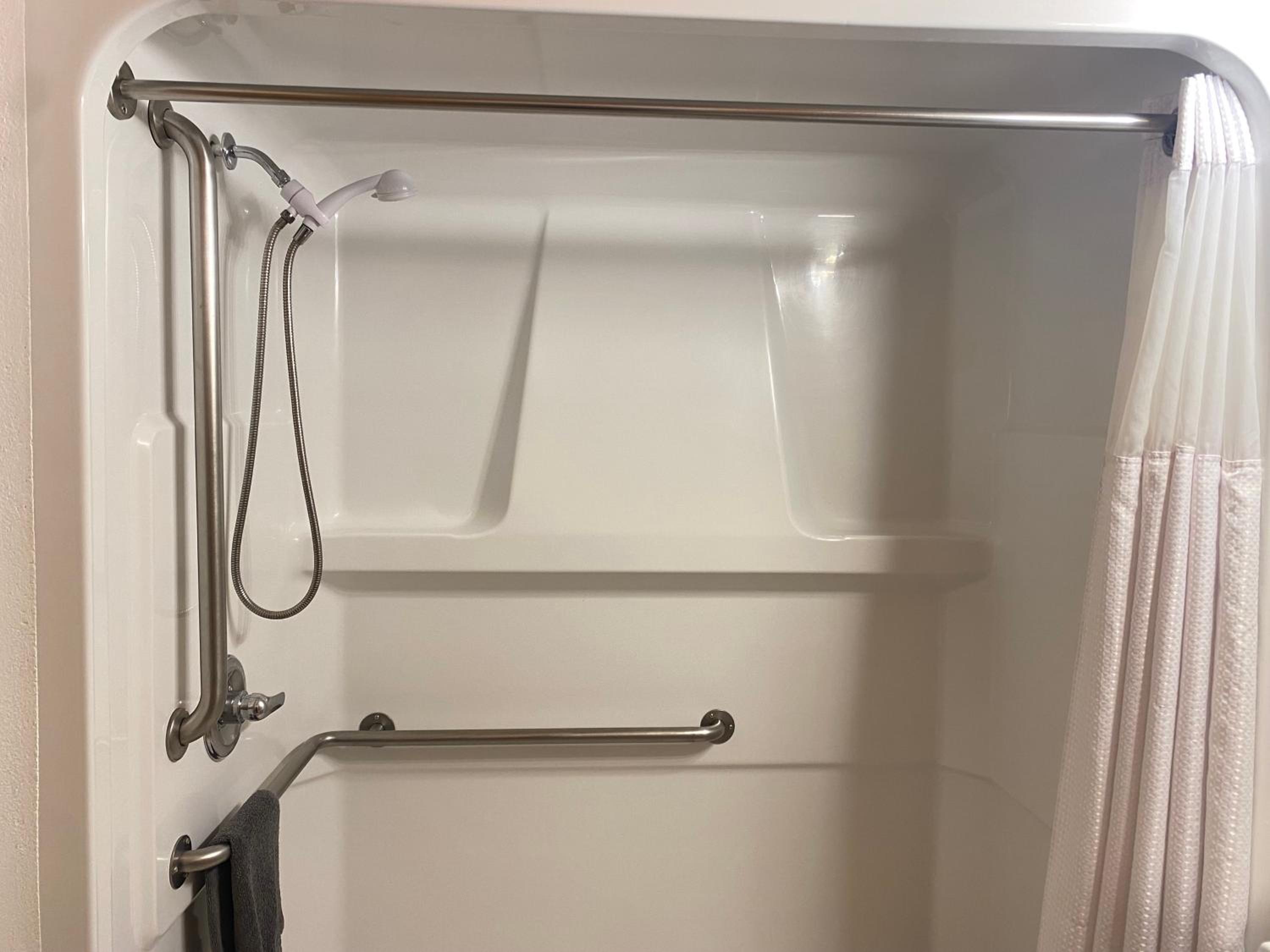 The shower curtain would benefit with weights or magnets at the lower corners.
