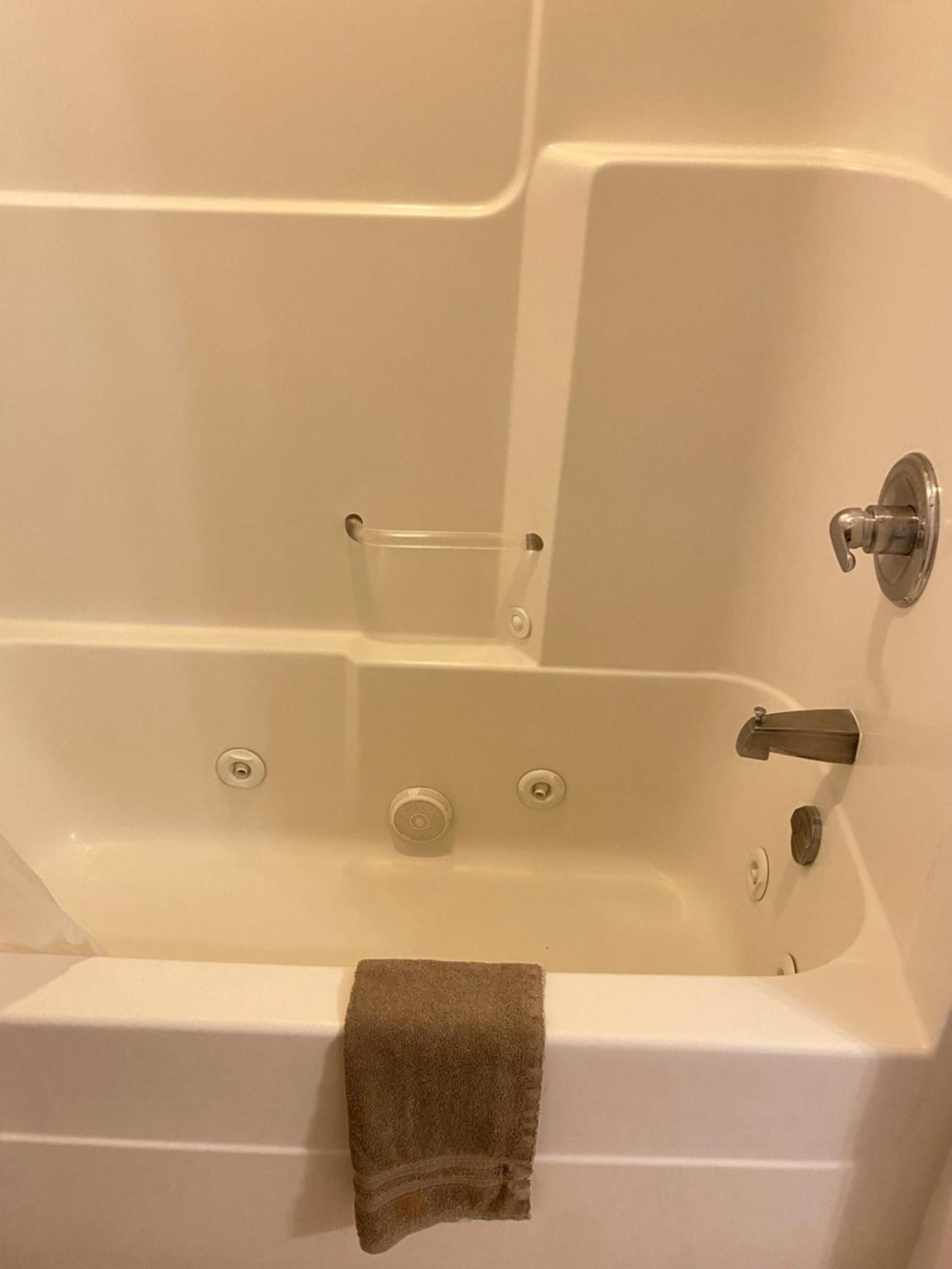 The bathroom was a bit dated, but it was clean, and the towels were soft.