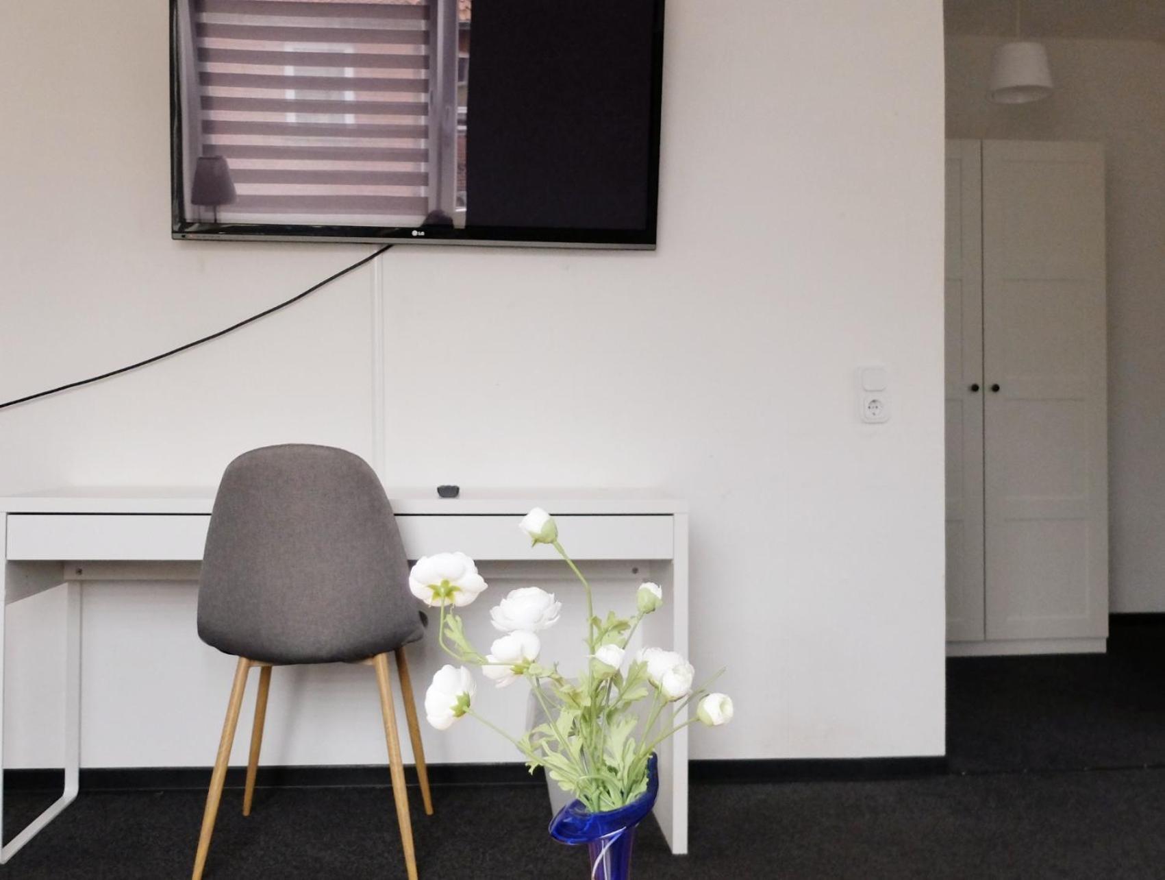 Moderne Zimmer, super sauber, toll eingerichtete Gästeküche, nette Chefin