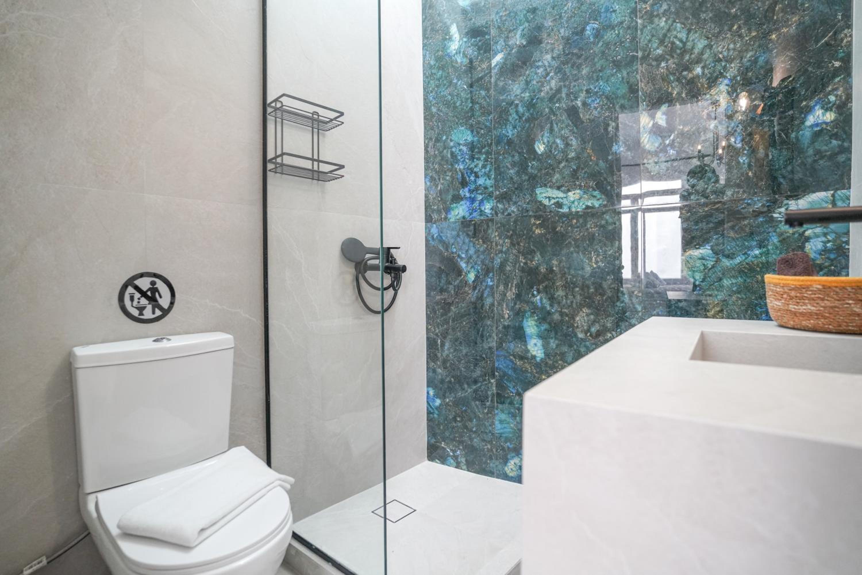 L’unica pecca forse la doccia un po’ piccola con il rischio di far uscire l’acqua, anche se molto bella esteticamente.
