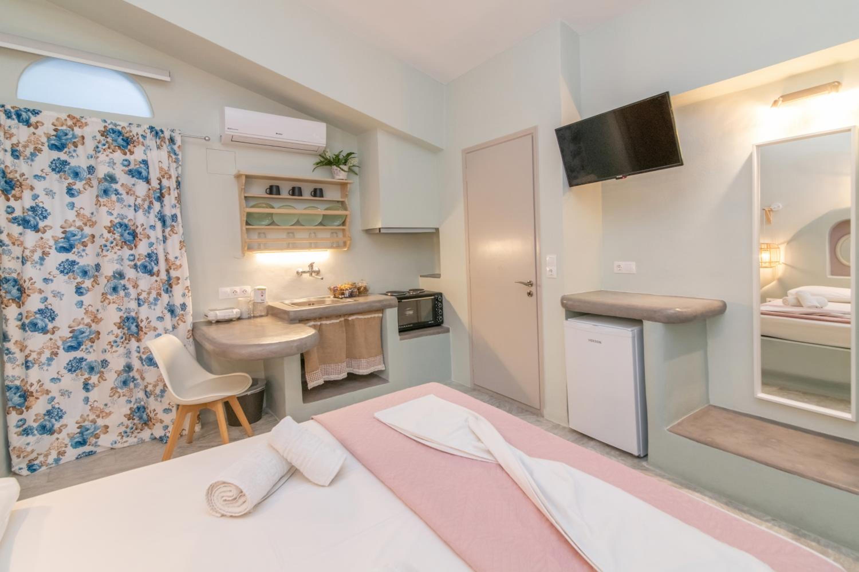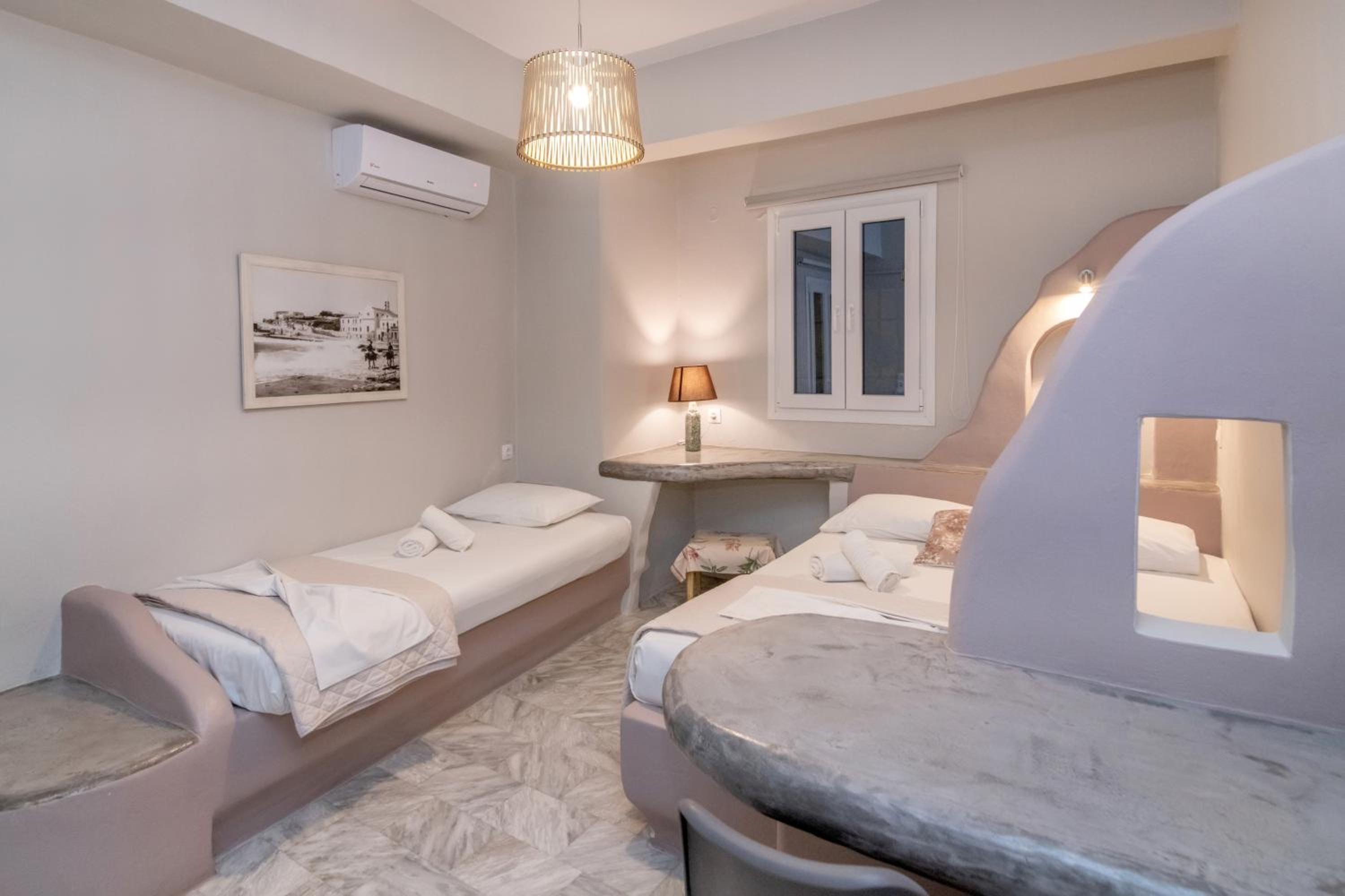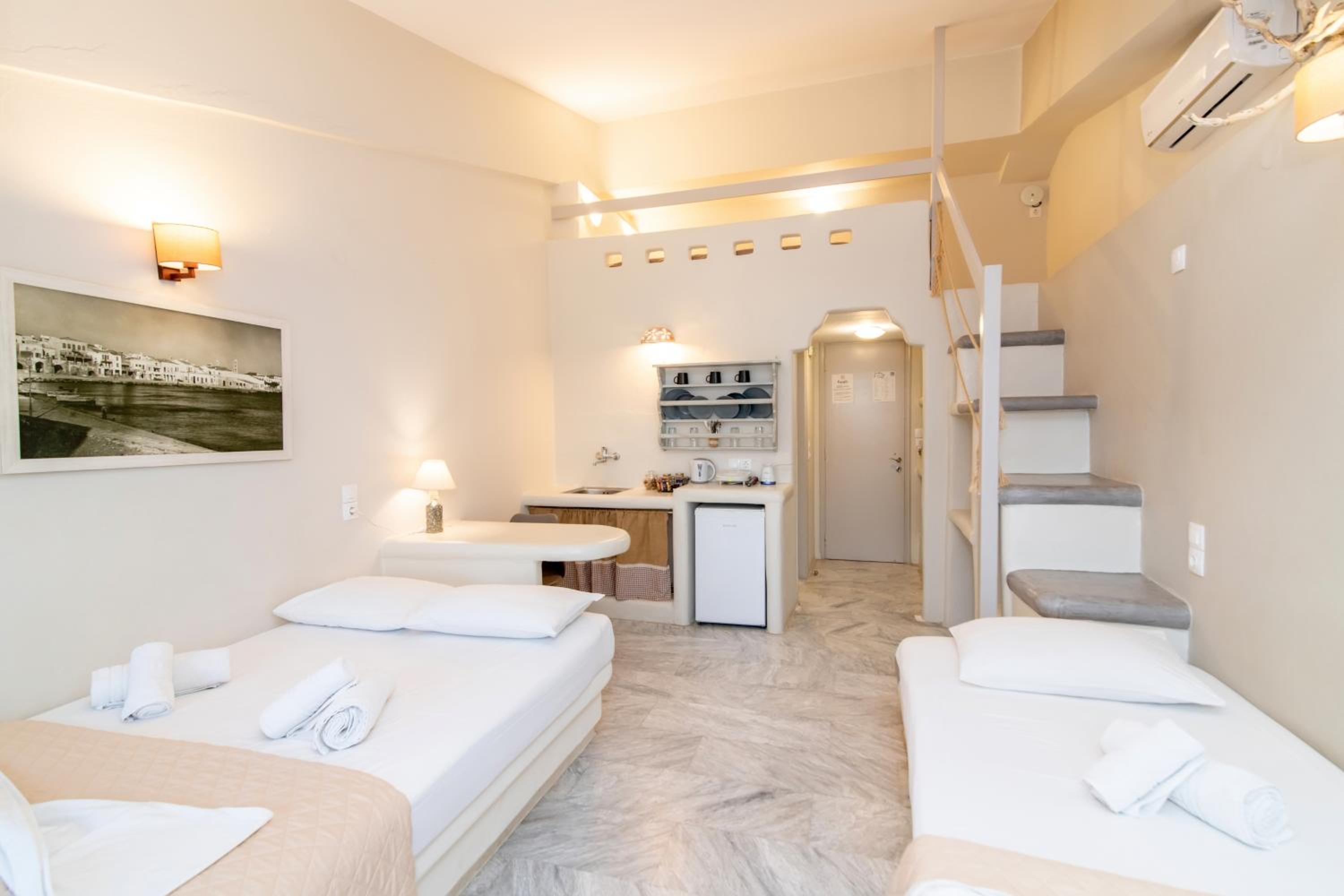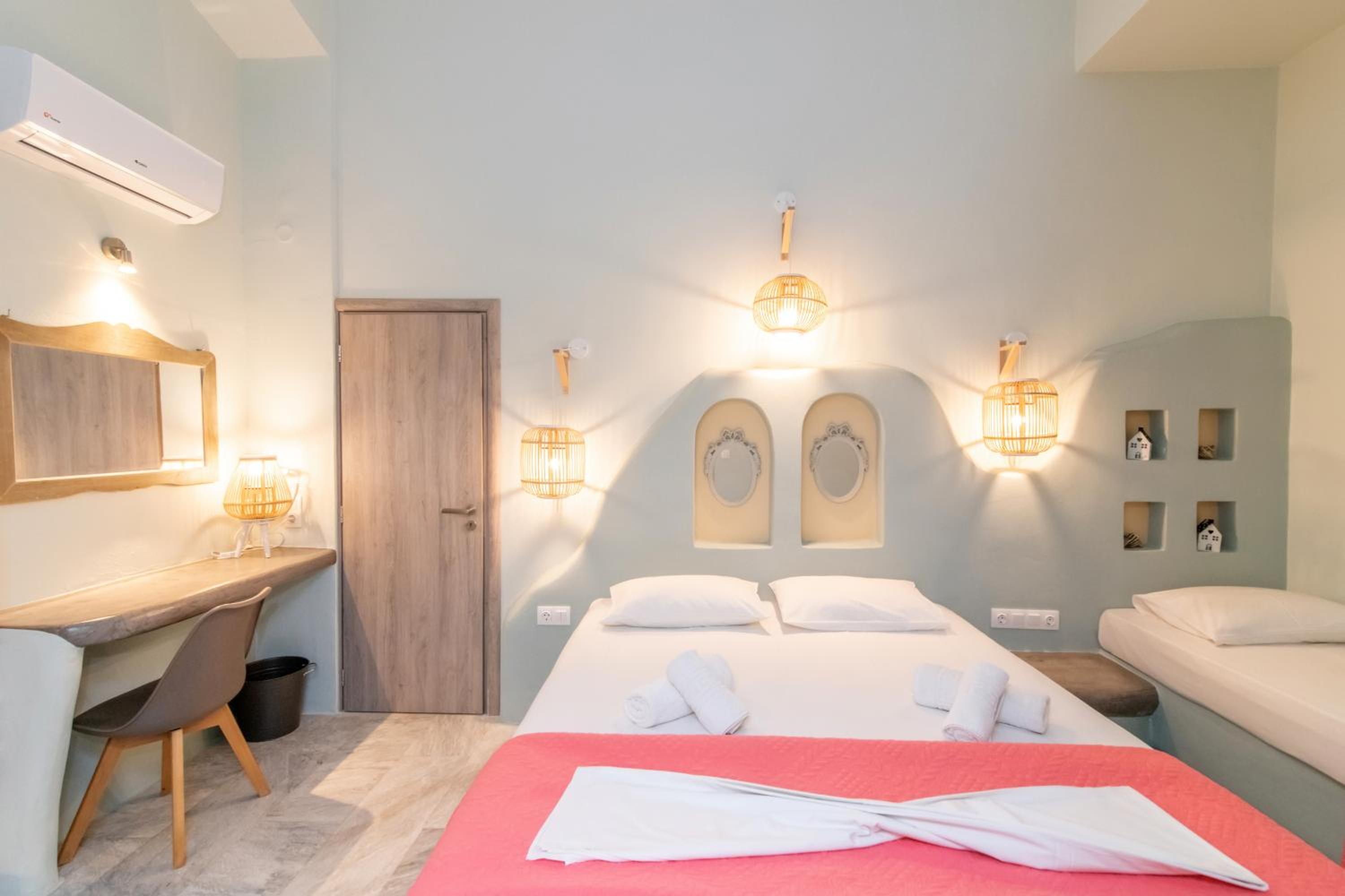 Βρίσκεται σε πολύ καλή τοποθεσία, δίπλα στο λιμάνι και μέσα σε ένα πανέμορφο, γραφικό σοκάκι. Πολύ όμορφα διακοσμημένο και προσεγμένο δωμάτιο, όπως και όλοι οι κοινόχρηστοι χώροι του καταλύματος. Παρέχει όλες τις ανέσεις που χρειάζεται ένας ταξιδιώτης. Η καθαριότητα του δωματίου ειναι καθημερινή και άριστη. Πολύ ευγενικός και φιλόξενος ο οικοδεσπότης.
