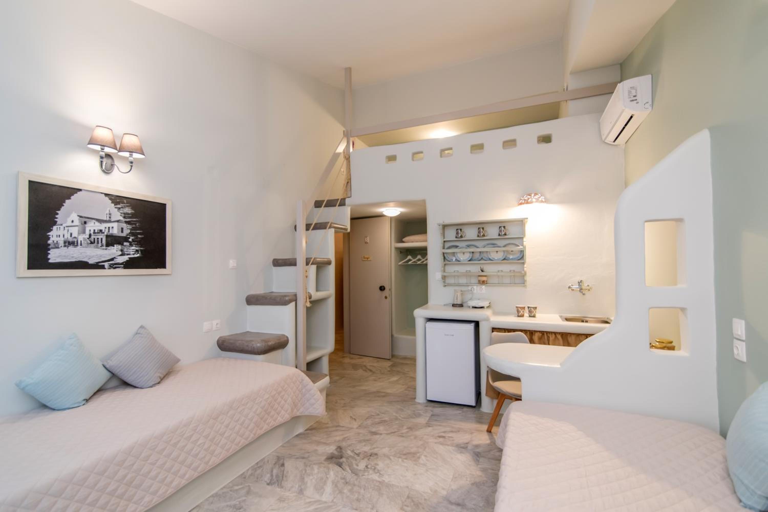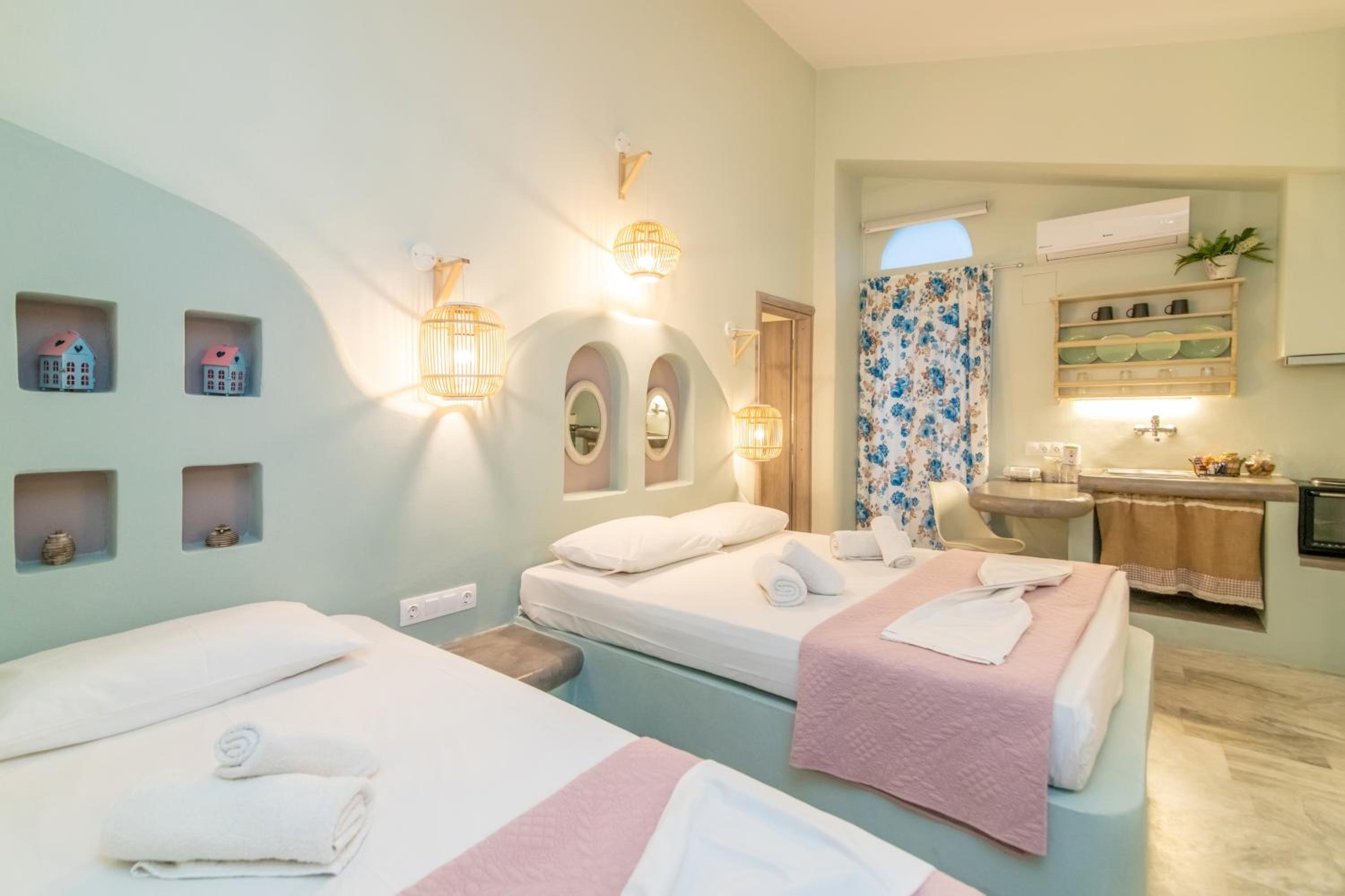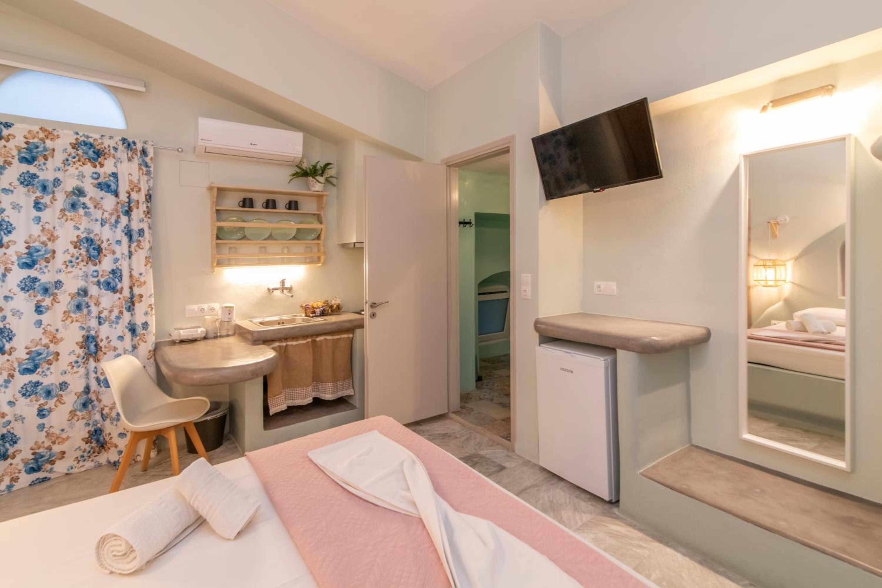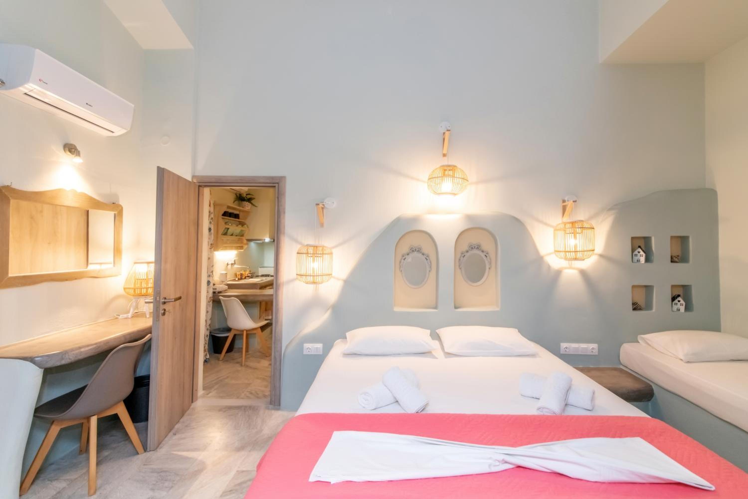 Βρίσκεται σε πολύ καλή τοποθεσία, δίπλα στο λιμάνι και μέσα σε ένα πανέμορφο, γραφικό σοκάκι. Πολύ όμορφα διακοσμημένο και προσεγμένο δωμάτιο, όπως και όλοι οι κοινόχρηστοι χώροι του καταλύματος. Παρέχει όλες τις ανέσεις που χρειάζεται ένας ταξιδιώτης. Η καθαριότητα του δωματίου ειναι καθημερινή και άριστη. Πολύ ευγενικός και φιλόξενος ο οικοδεσπότης.
