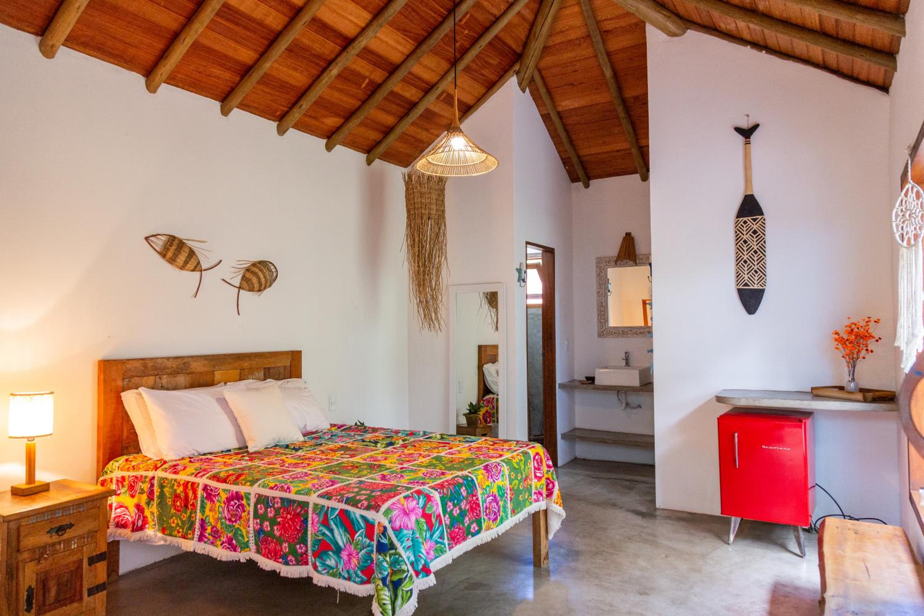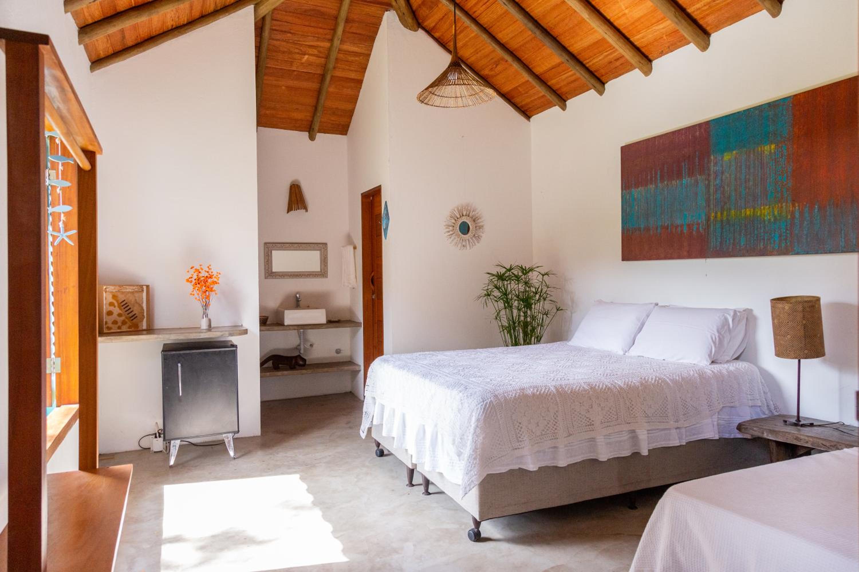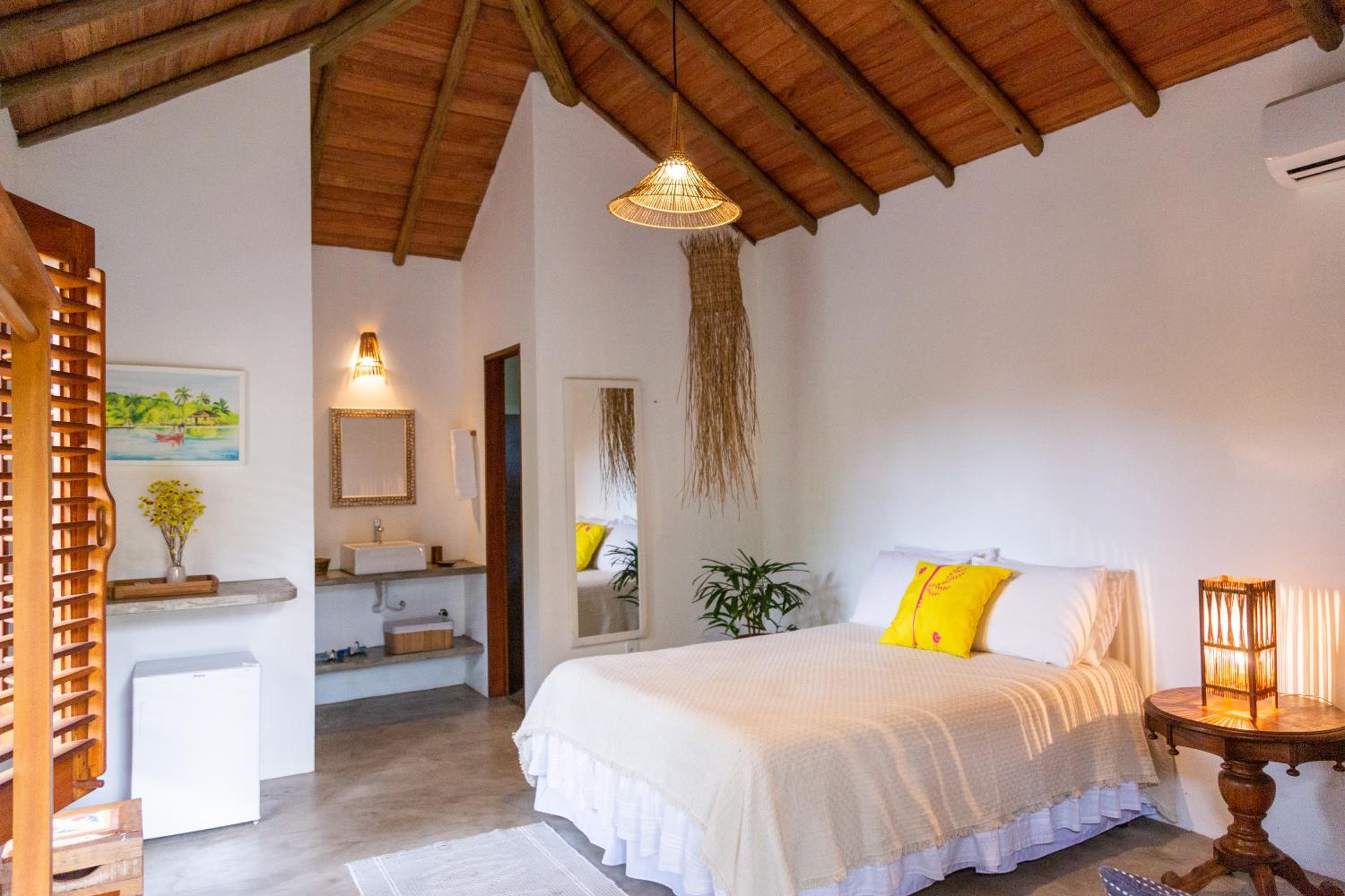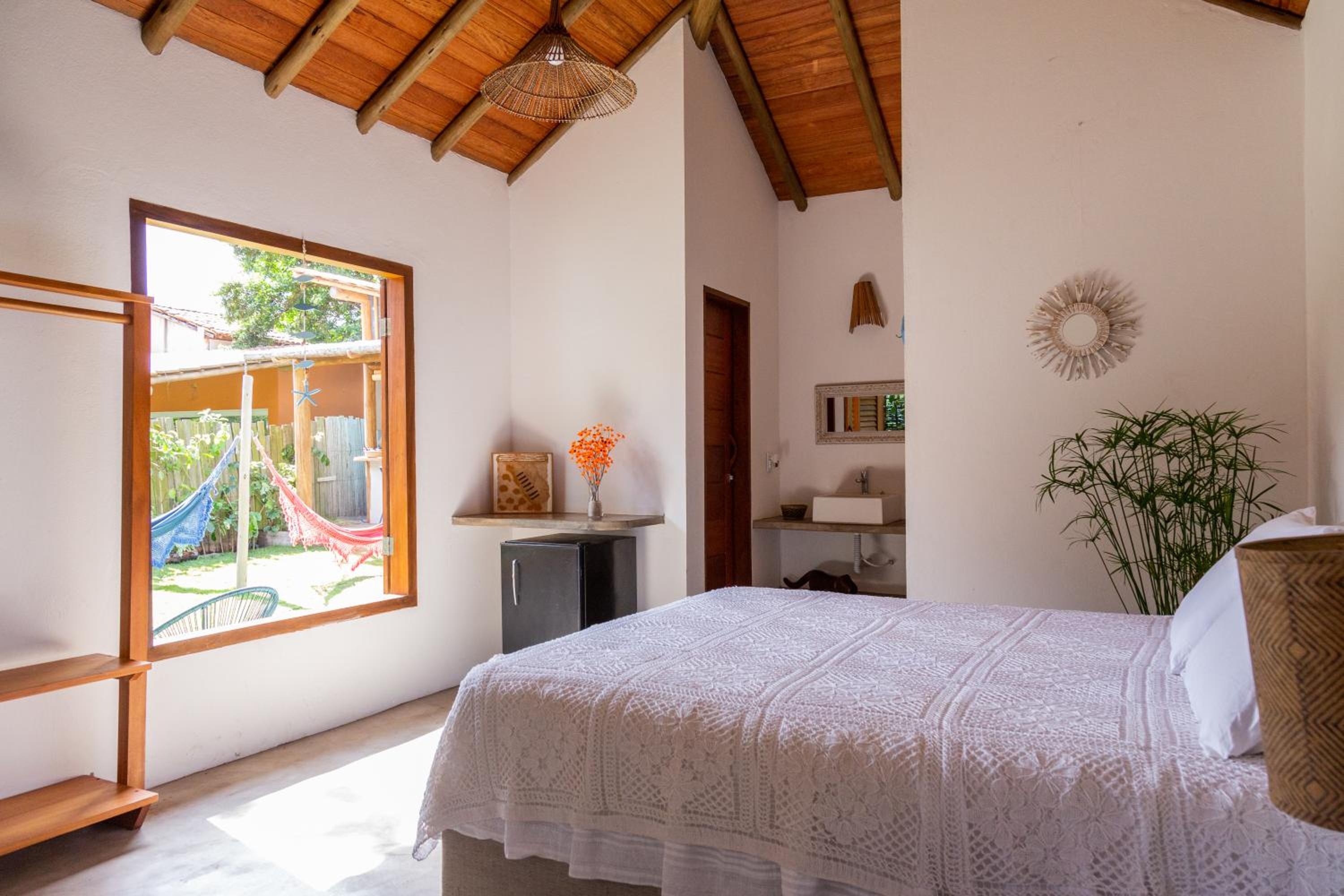 Experience the beauty of Caraiva Beach at Chalés Casulo Caraíva. Relax in our comfortable rooms and enjoy the convenience of air conditioning. Perfect for families, our hotel offers a peaceful garden and free WiFi. Book now for an unforgettable stay in Caraíva.