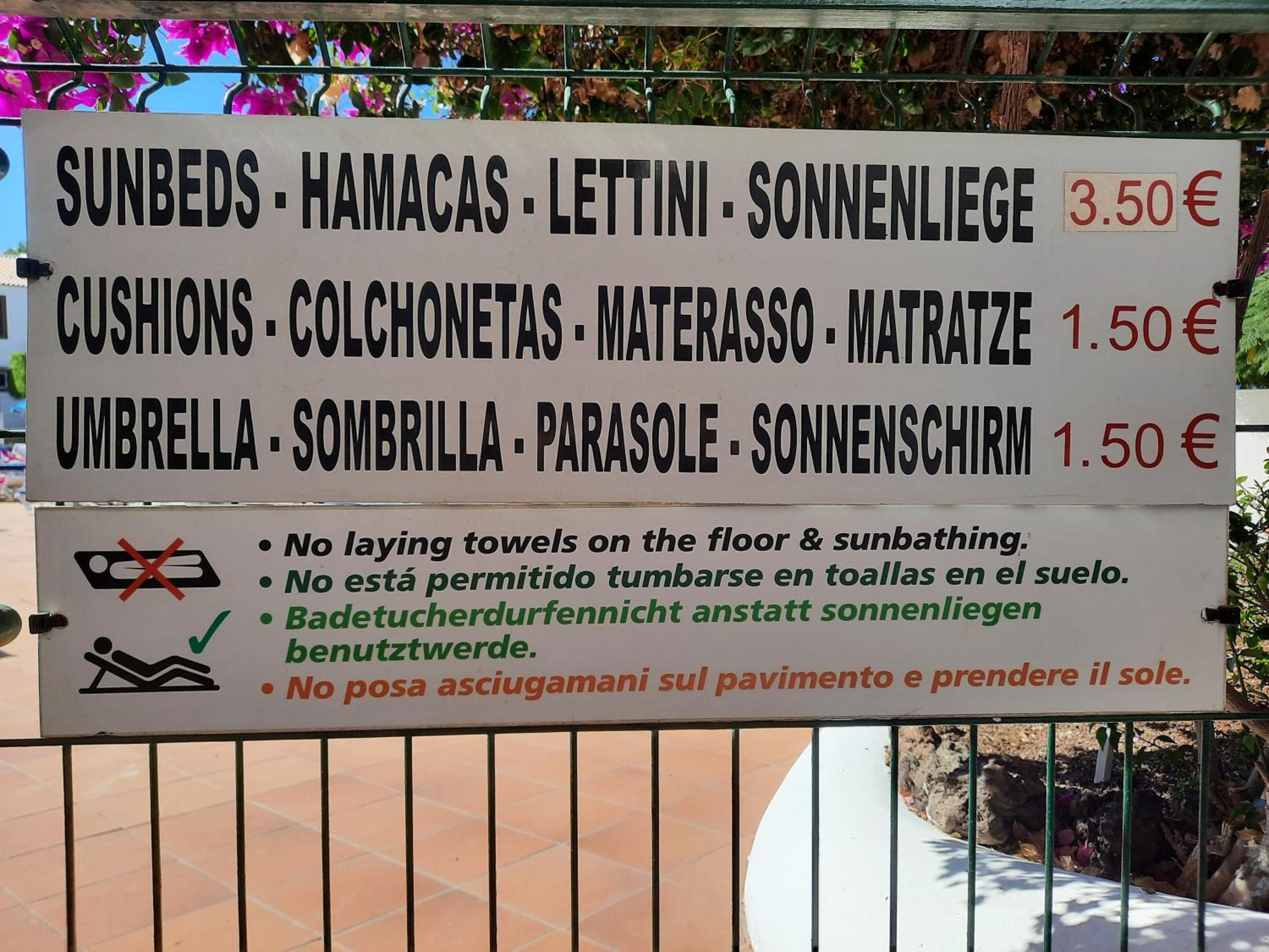 No sun on balcony, very dated furniture, tv not working, not enough sunbeds