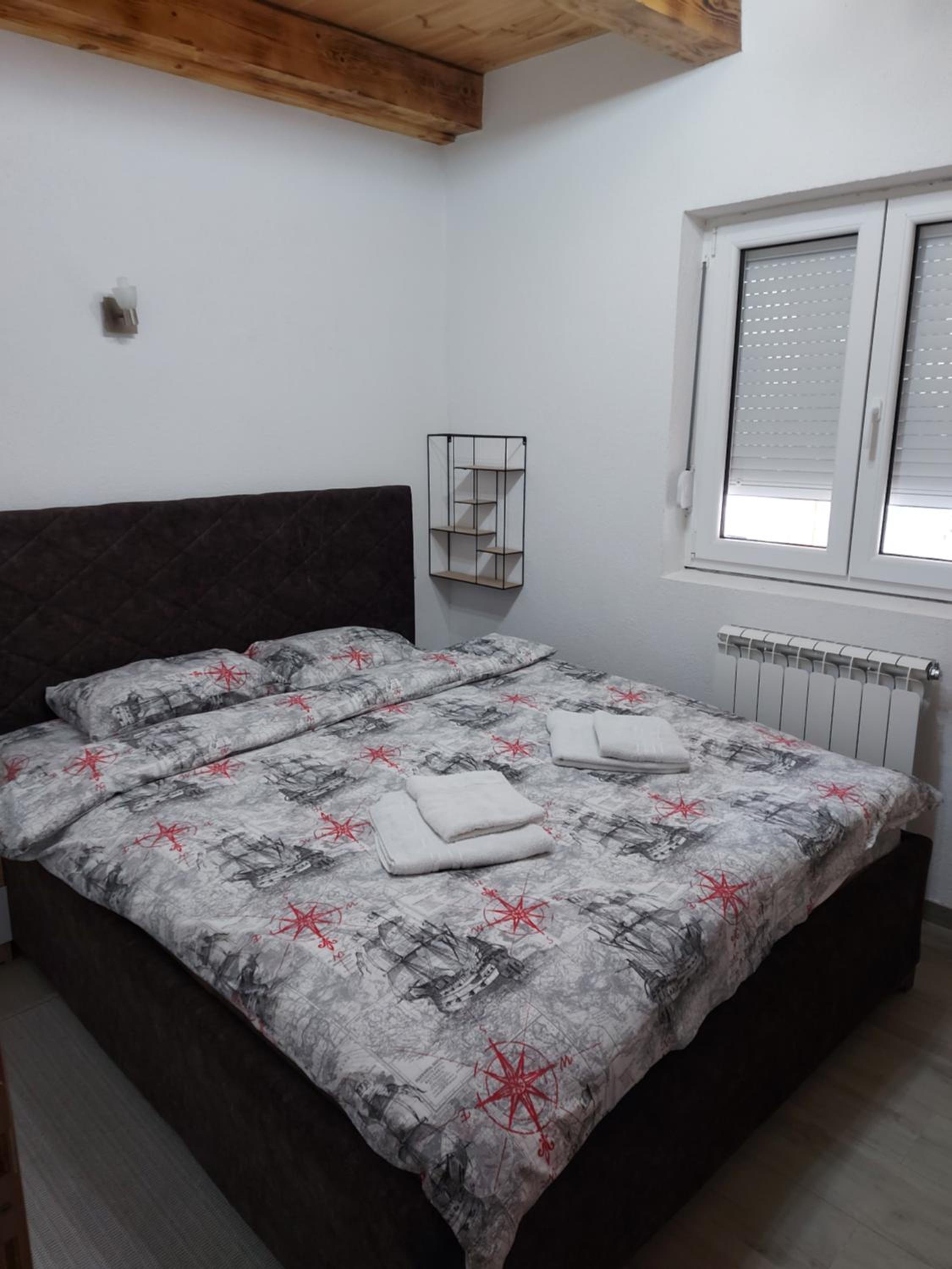Ubytování v původní zástavbě Žabljaku - což je spíše výhoda, neboť Žabljak se mění v komerční centrum plné. nové výstavby. Předání klíčů a ubytování proběhlo osobně. Protože jsme chodili po horách, velice se hodila pračka v koupelně.