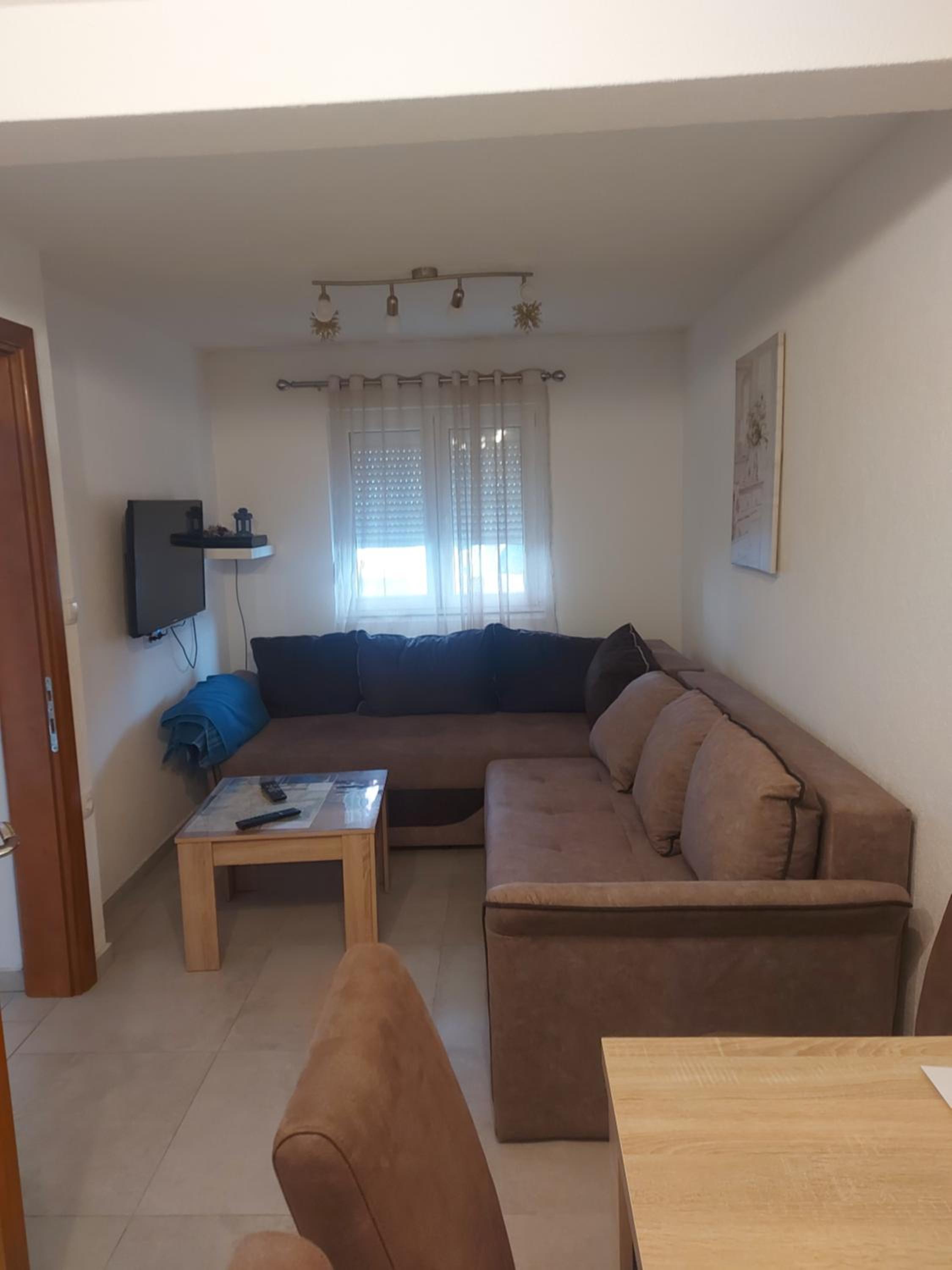 Contratamos un apartamento para 4 personas, con una habitación, comedor-cocina con sofá-cama, baño y una pequeña cocina bastante mal ubicada por ser muy estrecha. La ubicación es correcta, cerca del parque nacional de Durmitor.