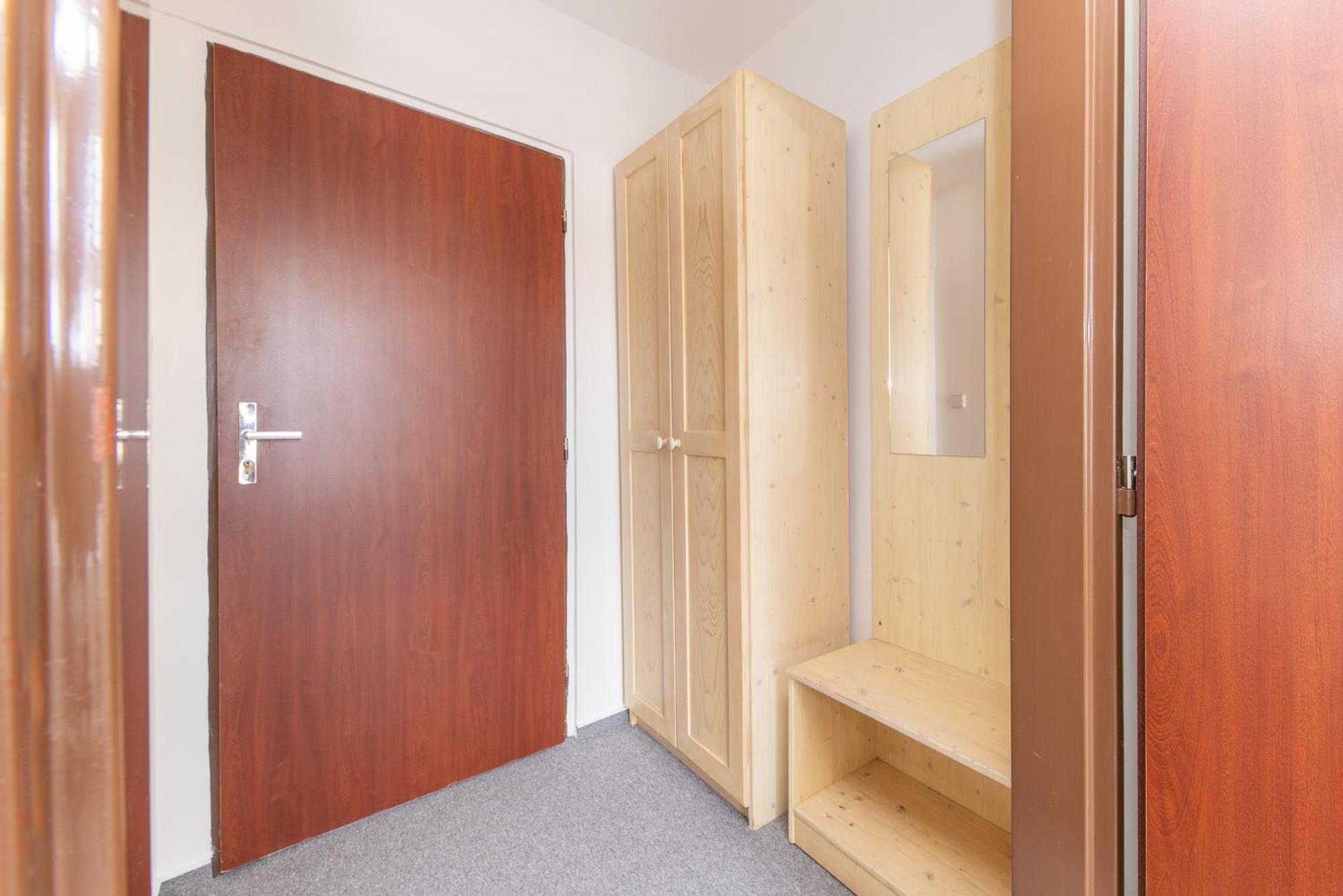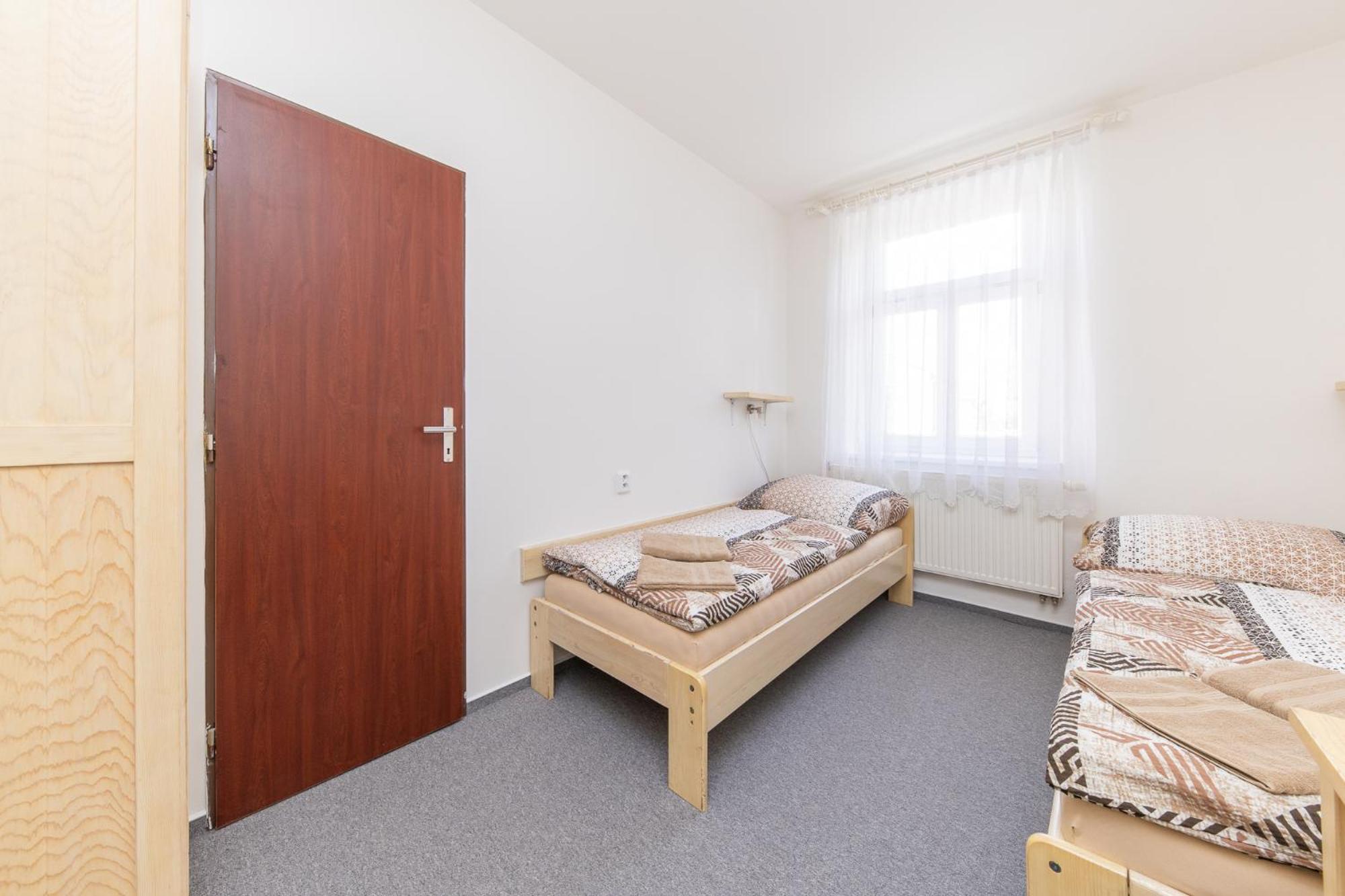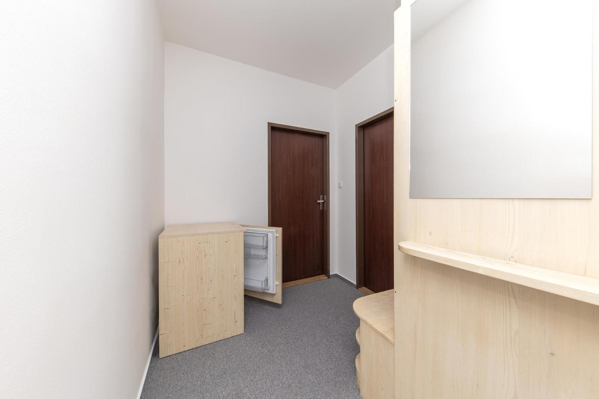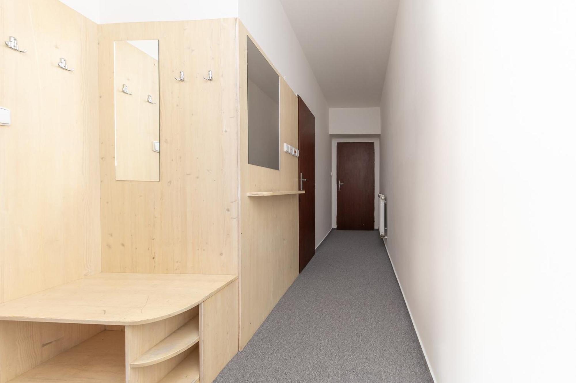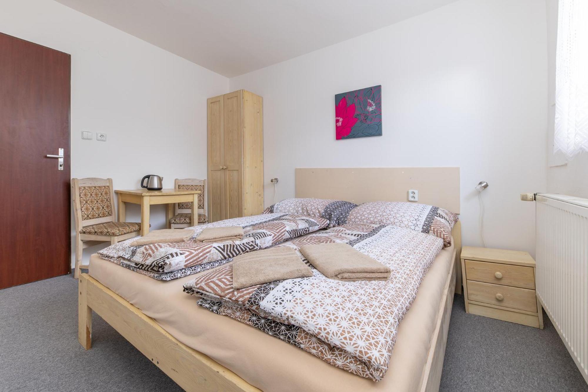 Skříň a postele pěkné, světlé dřevo, jako nové. Televize už mírně historická, se set-top-boxem připojeným SCARTem - ale funkční. WIFI funkční, bez hesla. V noci v hotelu klid a ticho.