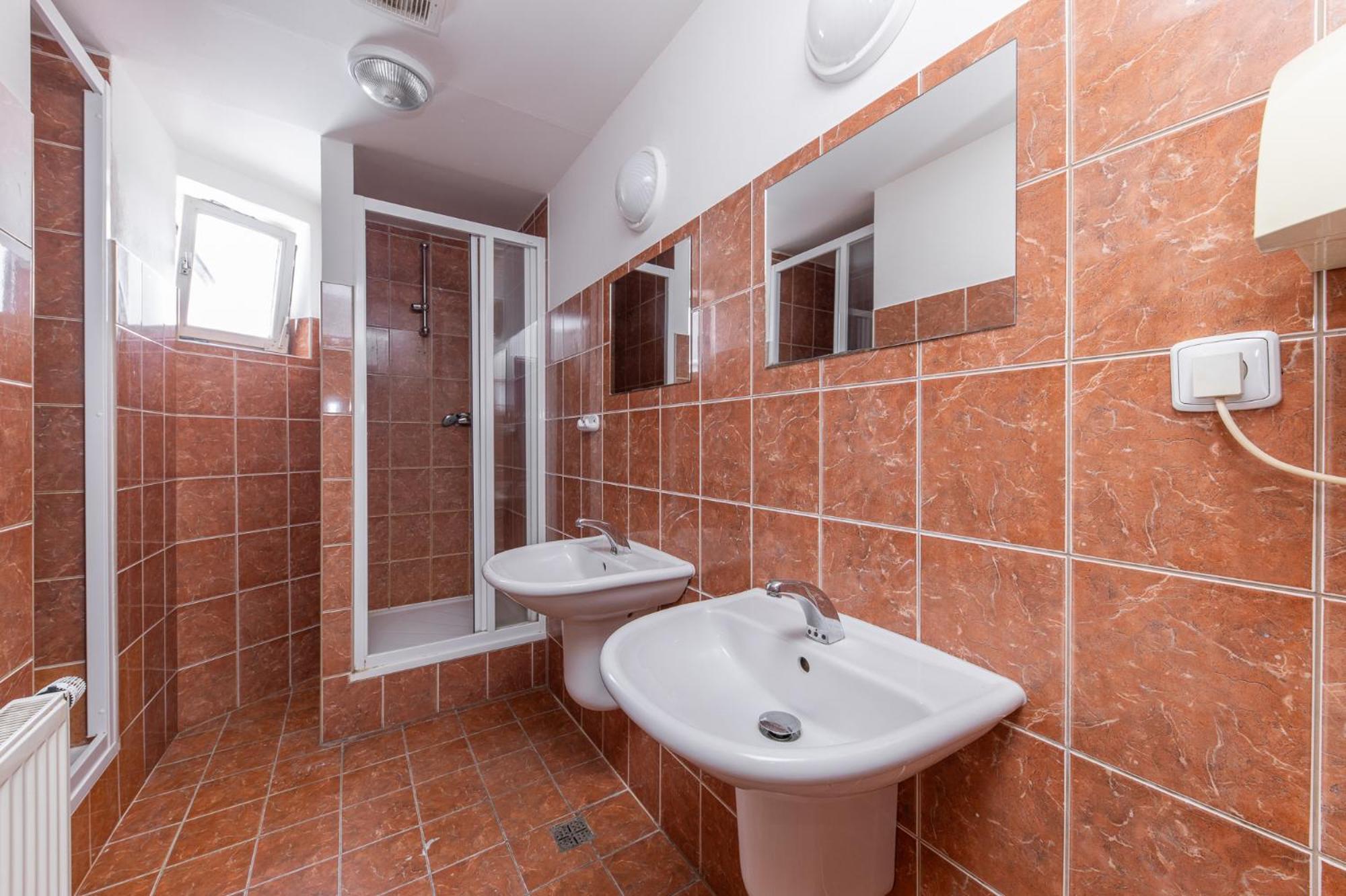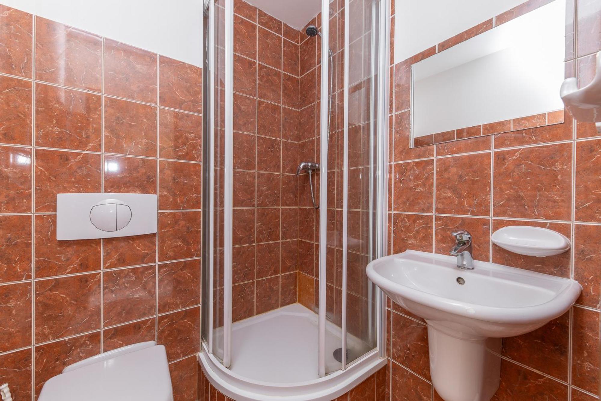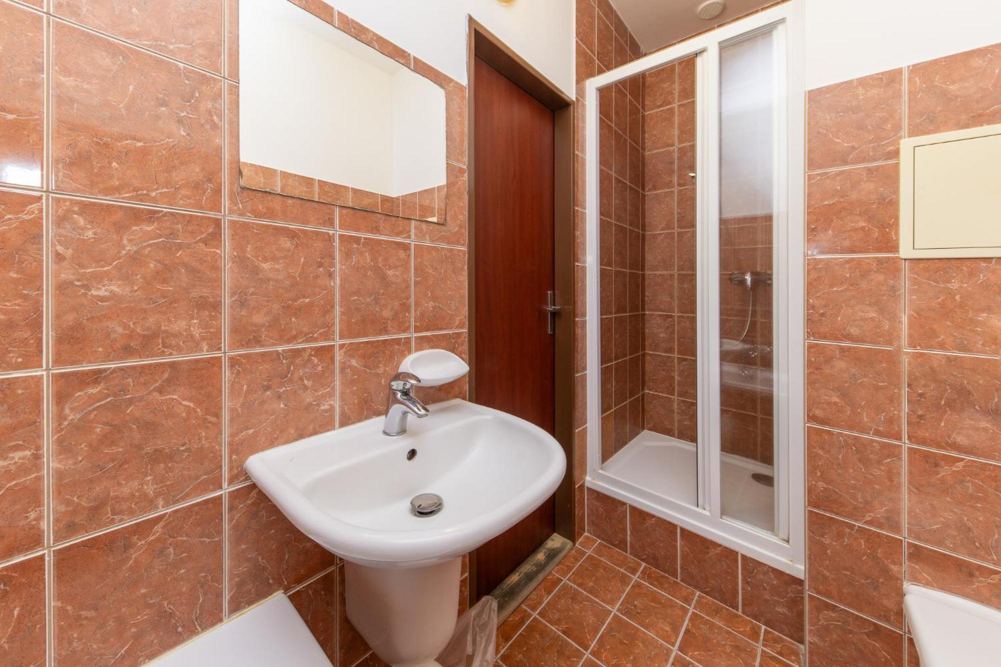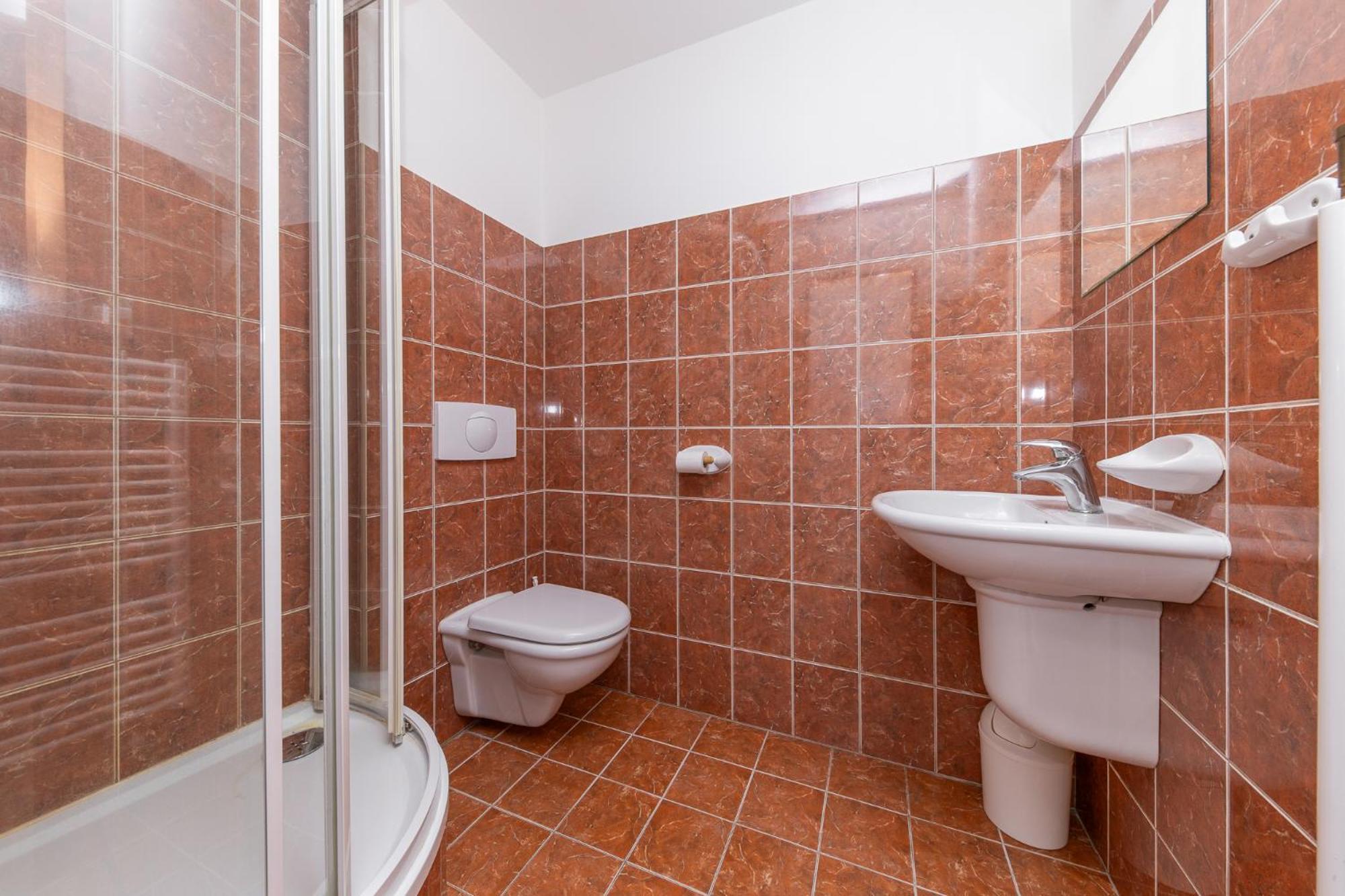 Hotel, nebo spíš lepší ubytovna, bohužel jsem si při rezervaci přes booking nevšiml, že rezervuji levný pokoj se sdíleným wc a sprchou na chodně, na pokoji je jen umyvadlo.