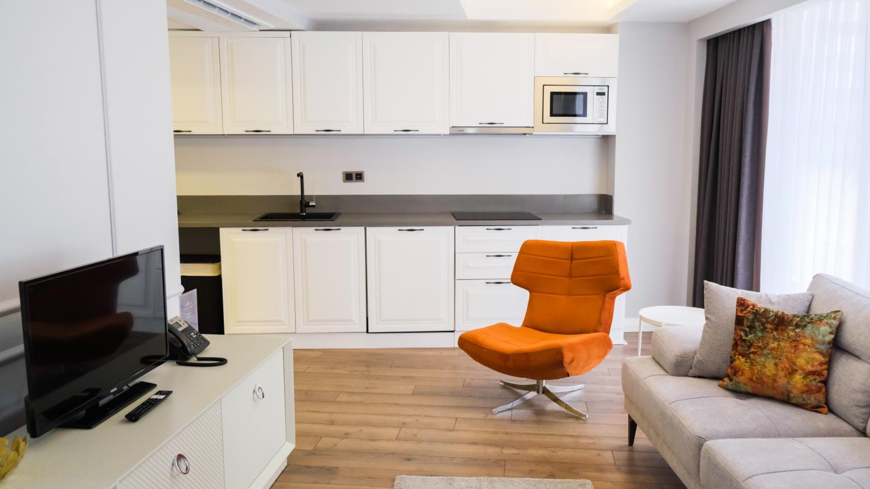 Удивило наличие в номере кухни, холодильника, плиты и свч но при этом нет ни вилки ни тарелки, вообще никакой посуды. Зачем тогда кухня???