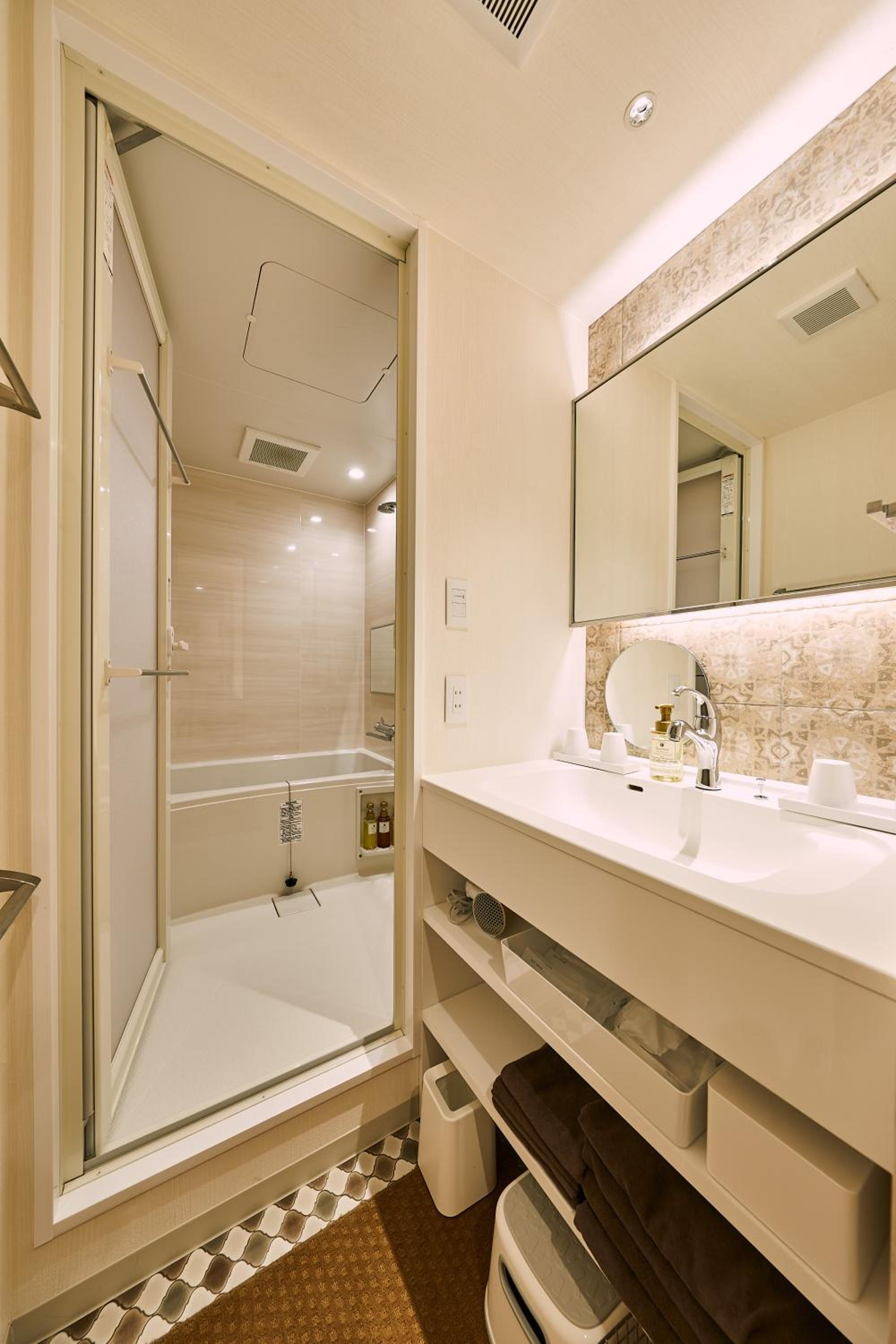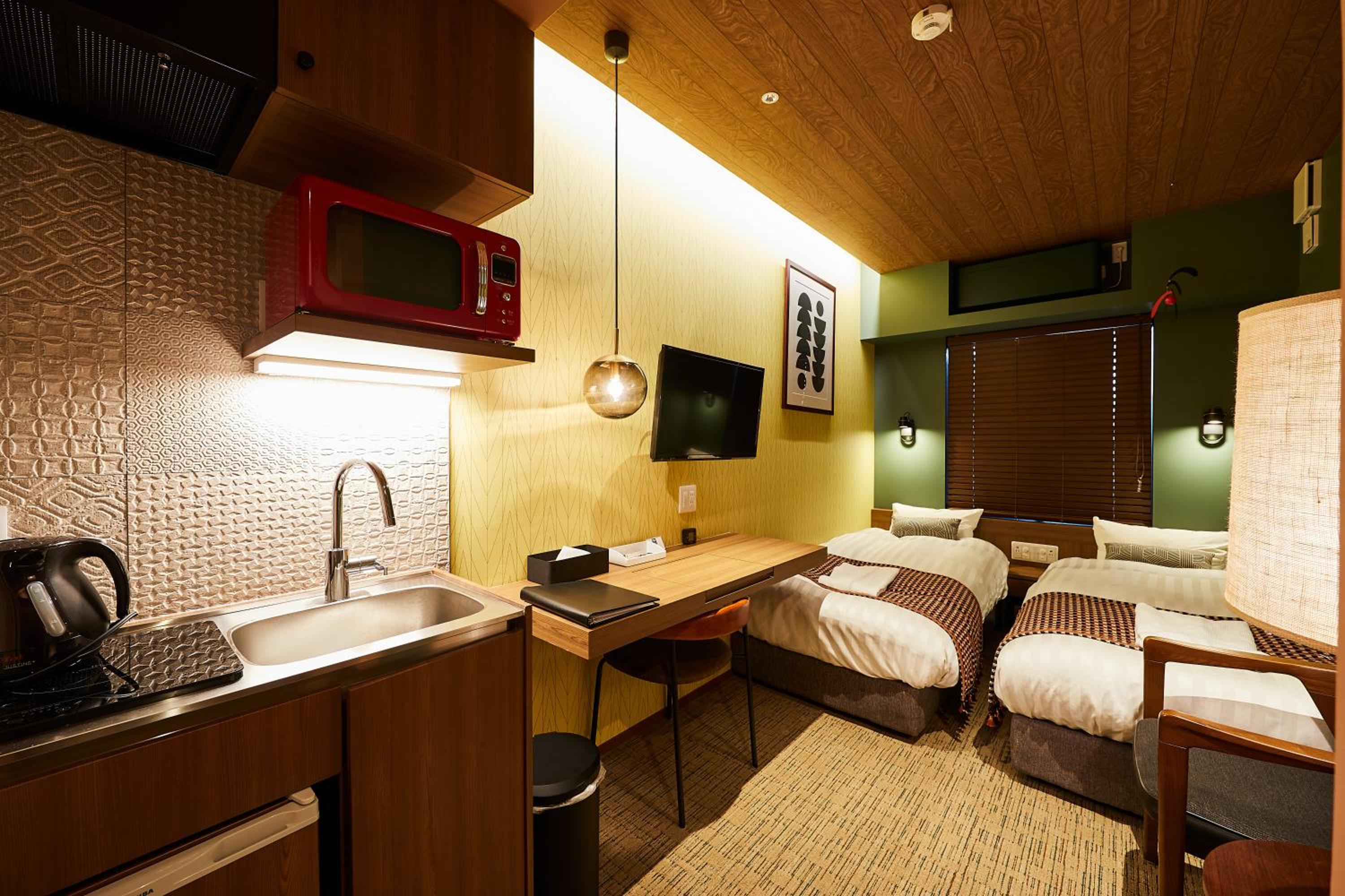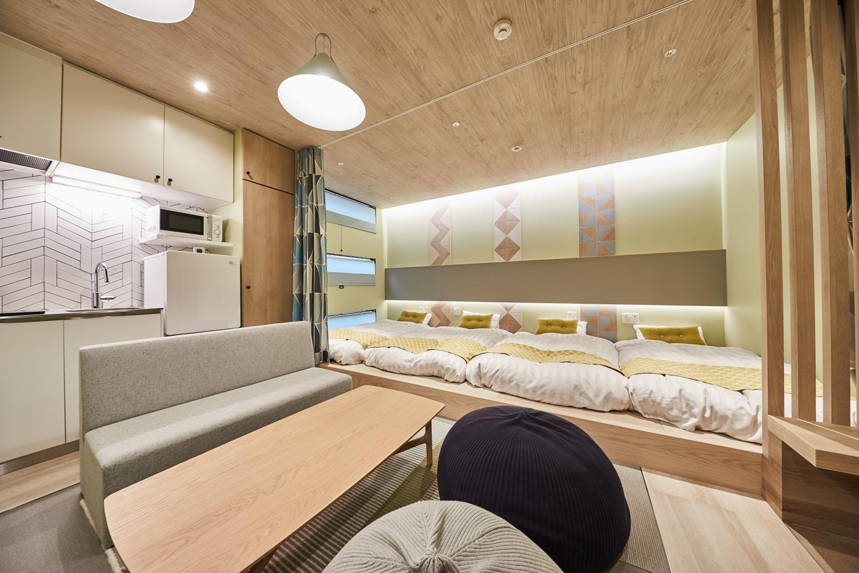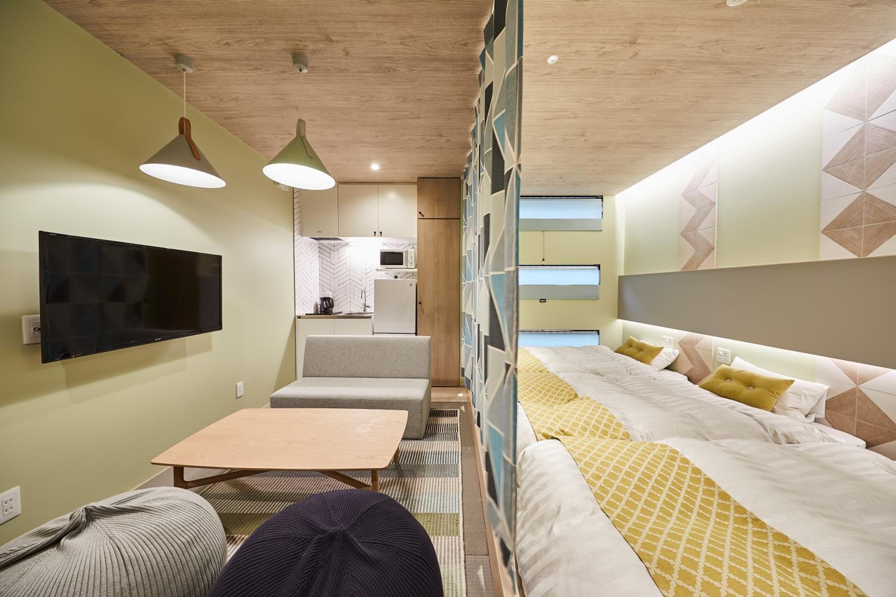 靴を脱いで上がれる、自宅みたいなくつろぎ感♪ちょっとしたシンクや食器、箸などもあり助かりました。それとお風呂も湯船にお湯をはれて、観光で疲れた足をゆっくりマッサージできました。