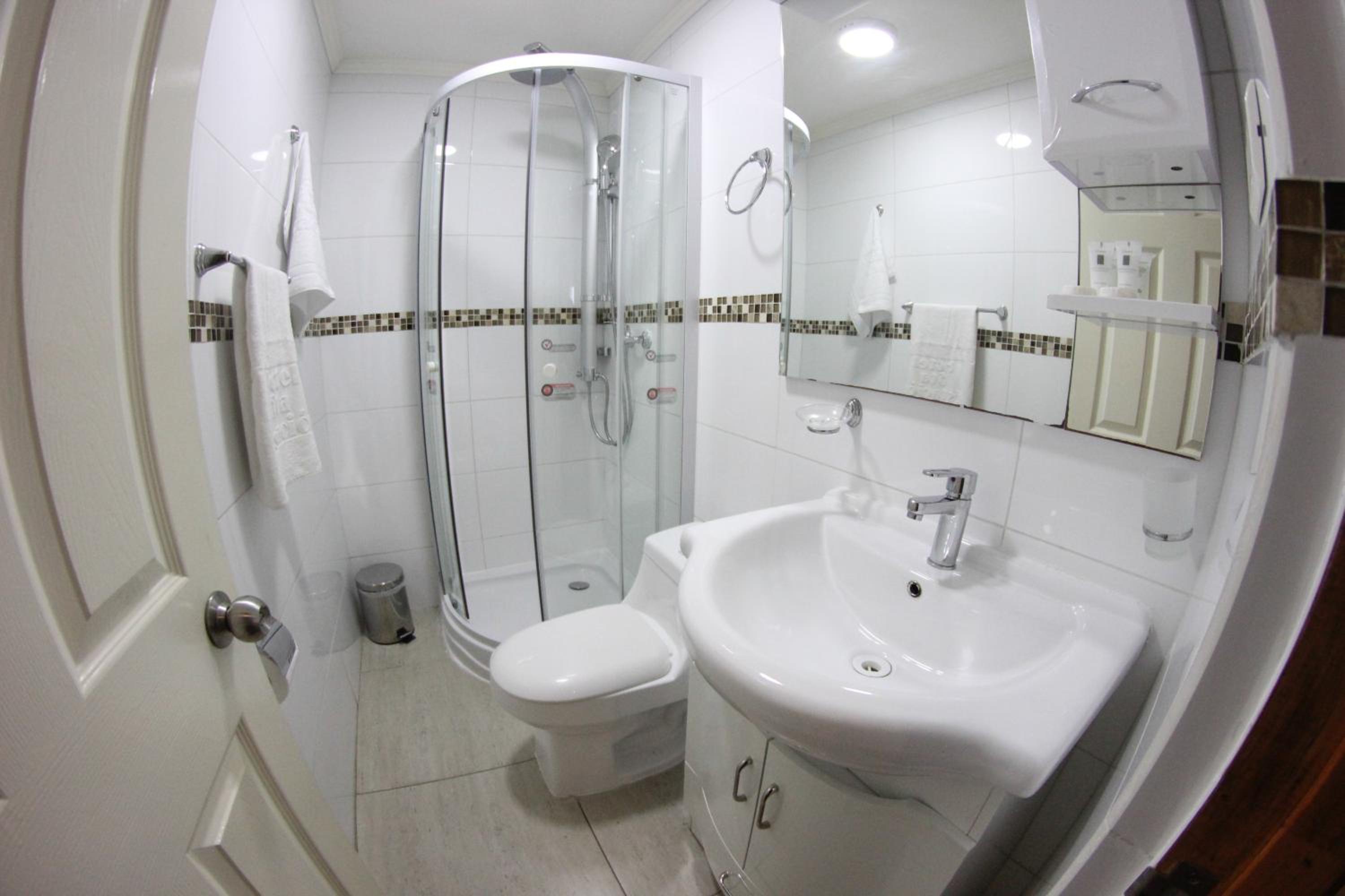 Nuestro baño no tenía ventilación natural así que olía un poco a humedad, además el agua de la ducha se salía del shower door.