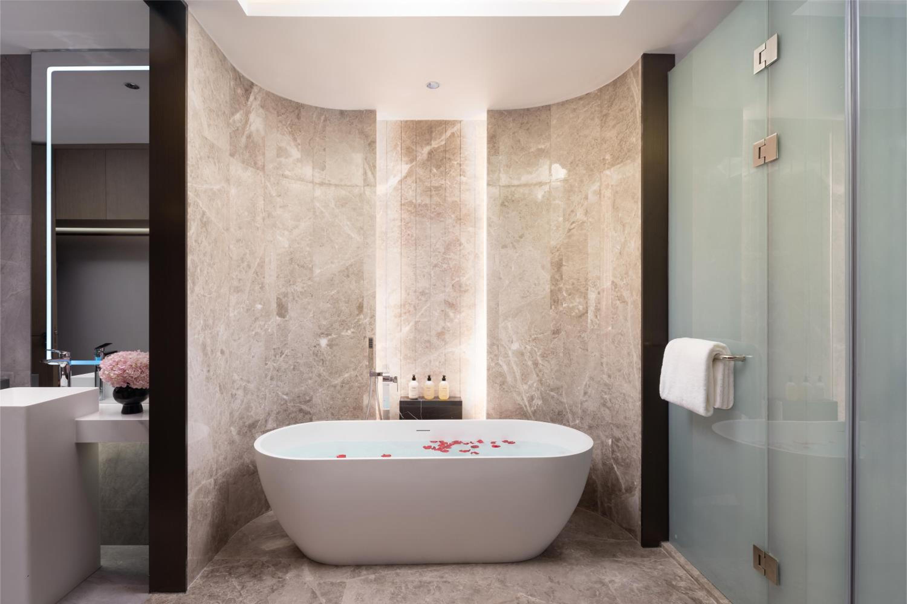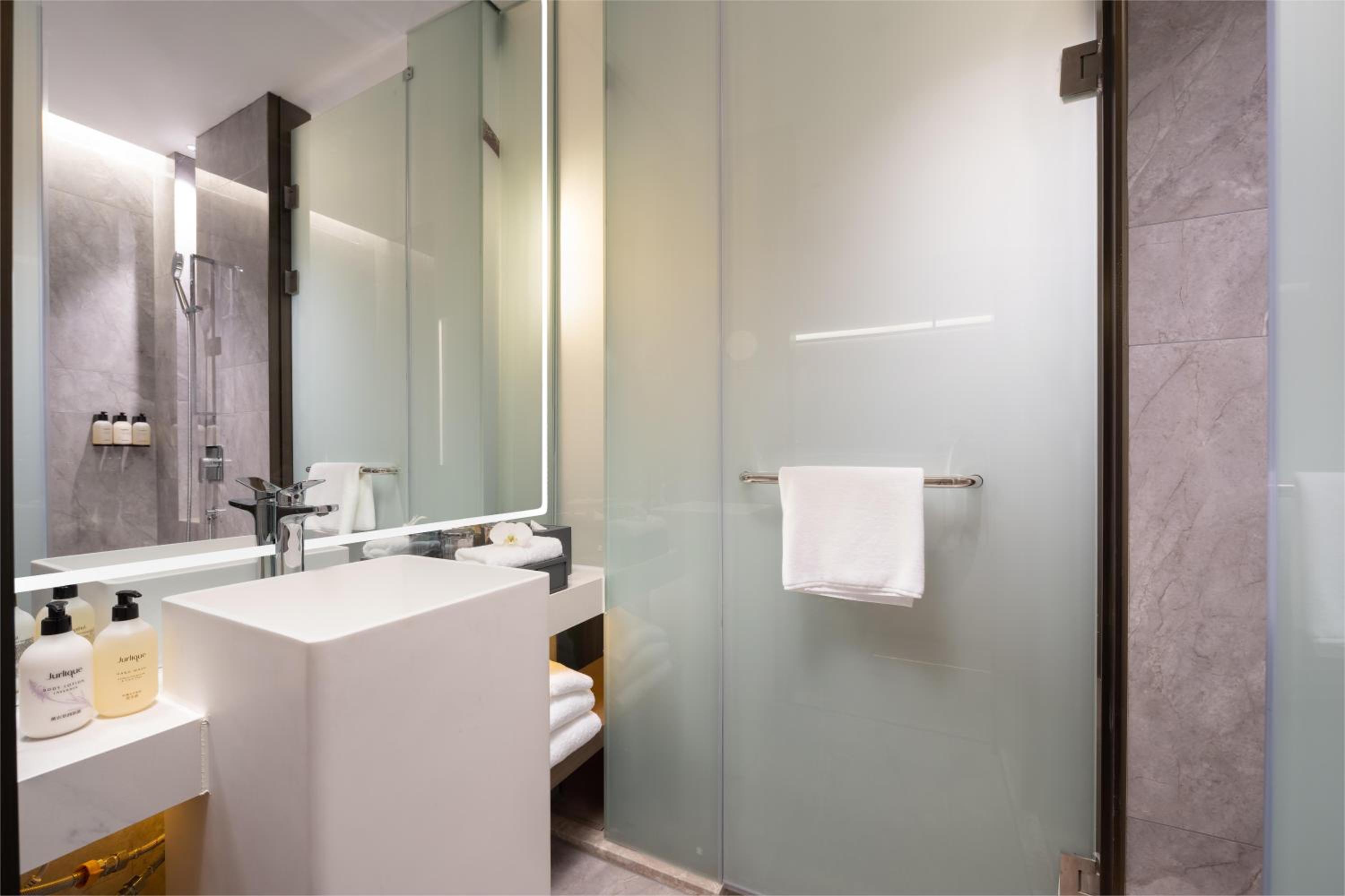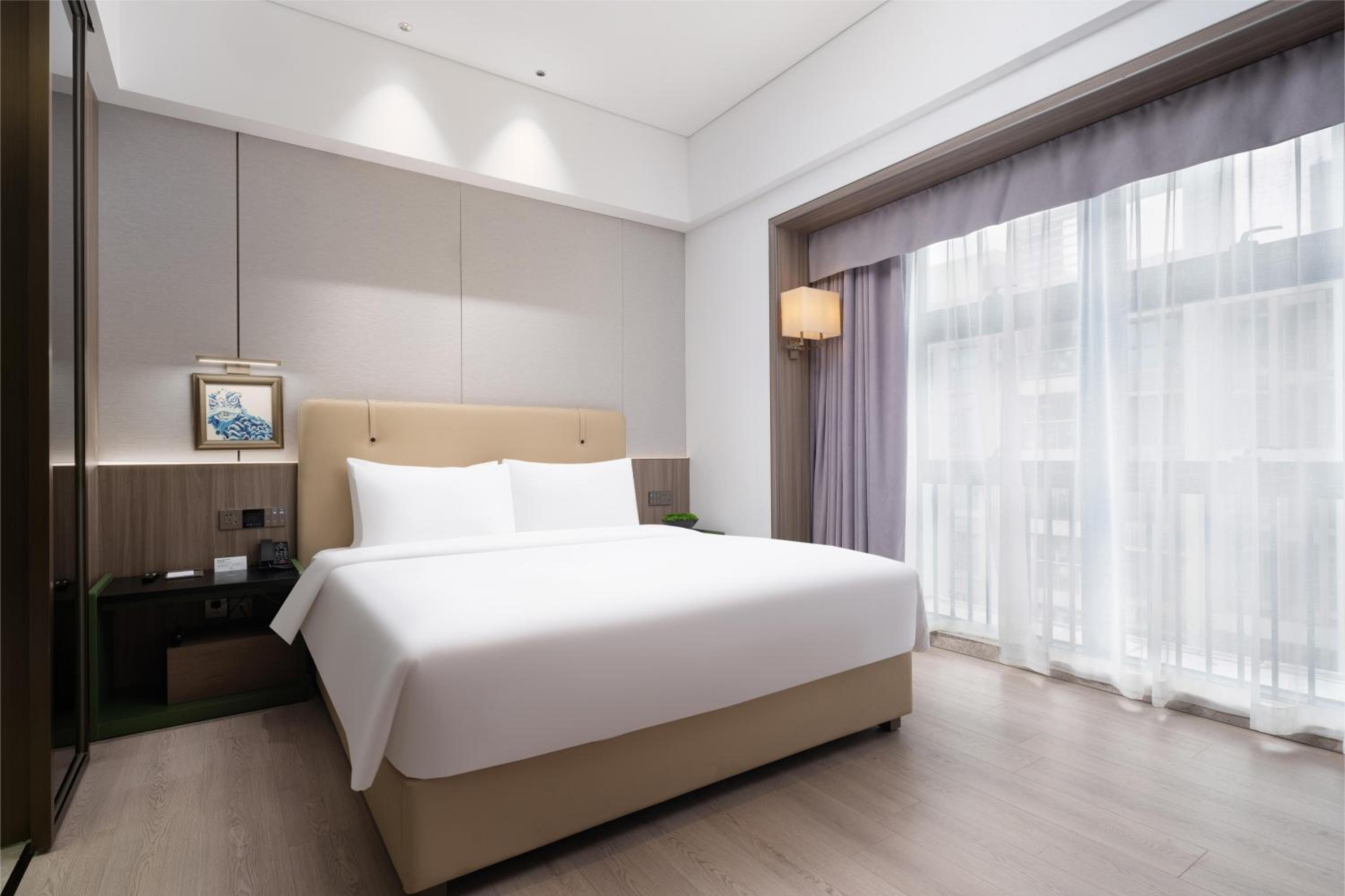 地点优越、靠近商业区和大型购物商场。周边餐饮交通便利。酒店内部干净整洁十分舒服。房间智能操控十分便利好用。