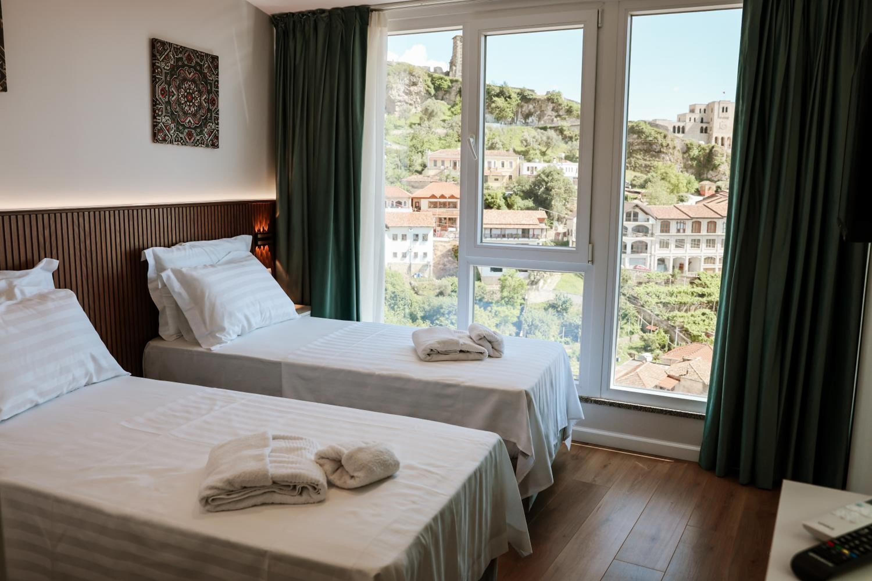 Superbe séjour d’une nuit dans cet établissement très bien placé ! La vue est imprenable sur la ville de Krujë tant de la chambre que de la terrasse. Les commerces et les lieux de visite sont à proximité tout comme les restaurants. C’est sans hésité que je conseille cet hôtel.