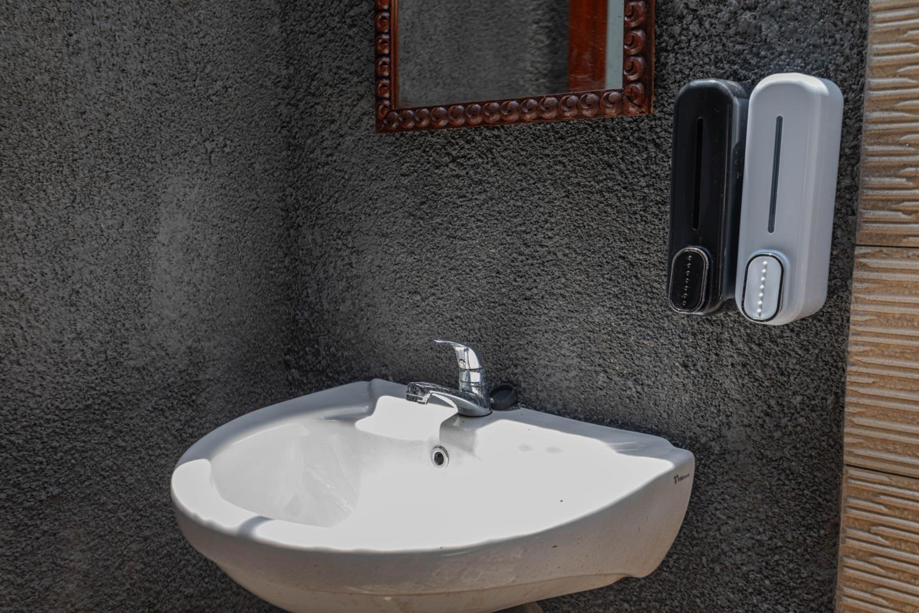 La salle de bain est sommaire.