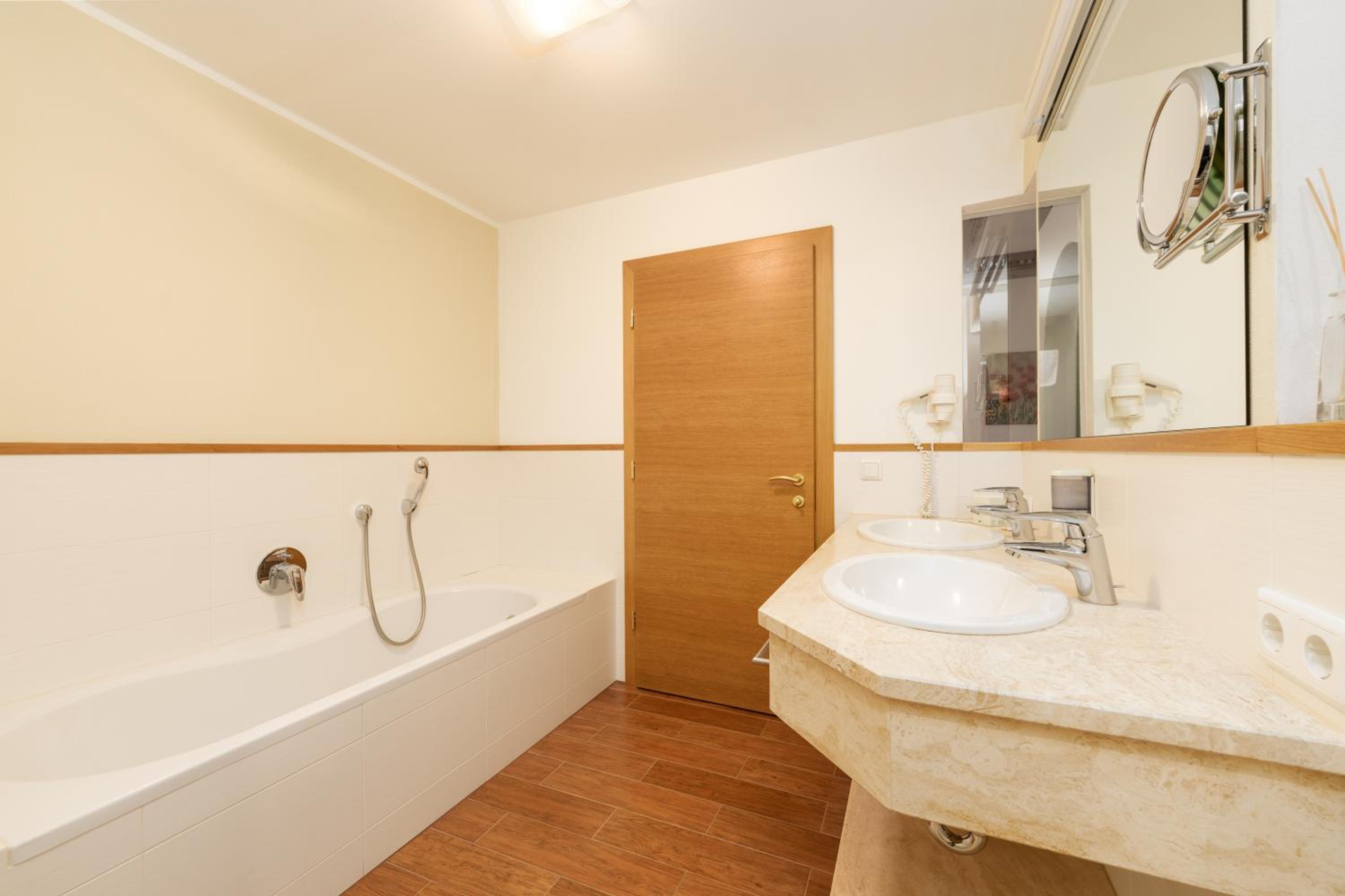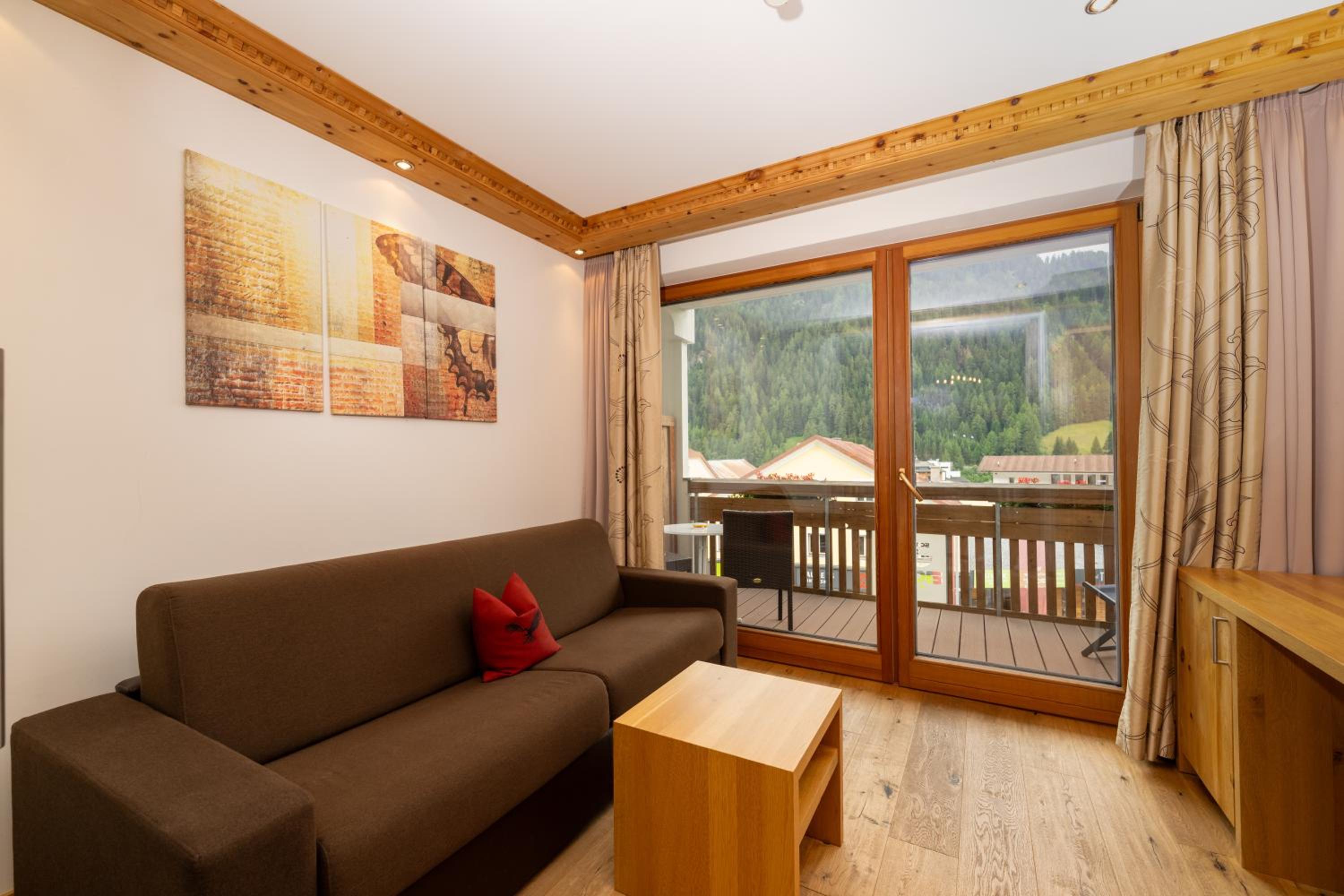 Kein funktionierendes Wlan, durchgelegene Matratzen. Zimmermöblierung in die Jahre gekommen. Hellhörig. Holzbalkon kaputt und voll mit Zigarettenkippen. Haben offensichtlich Low-Budget- Zimmer bekommen. Handtücher für Wellnessvereich muss man sich ständig an der Rezeption holen.