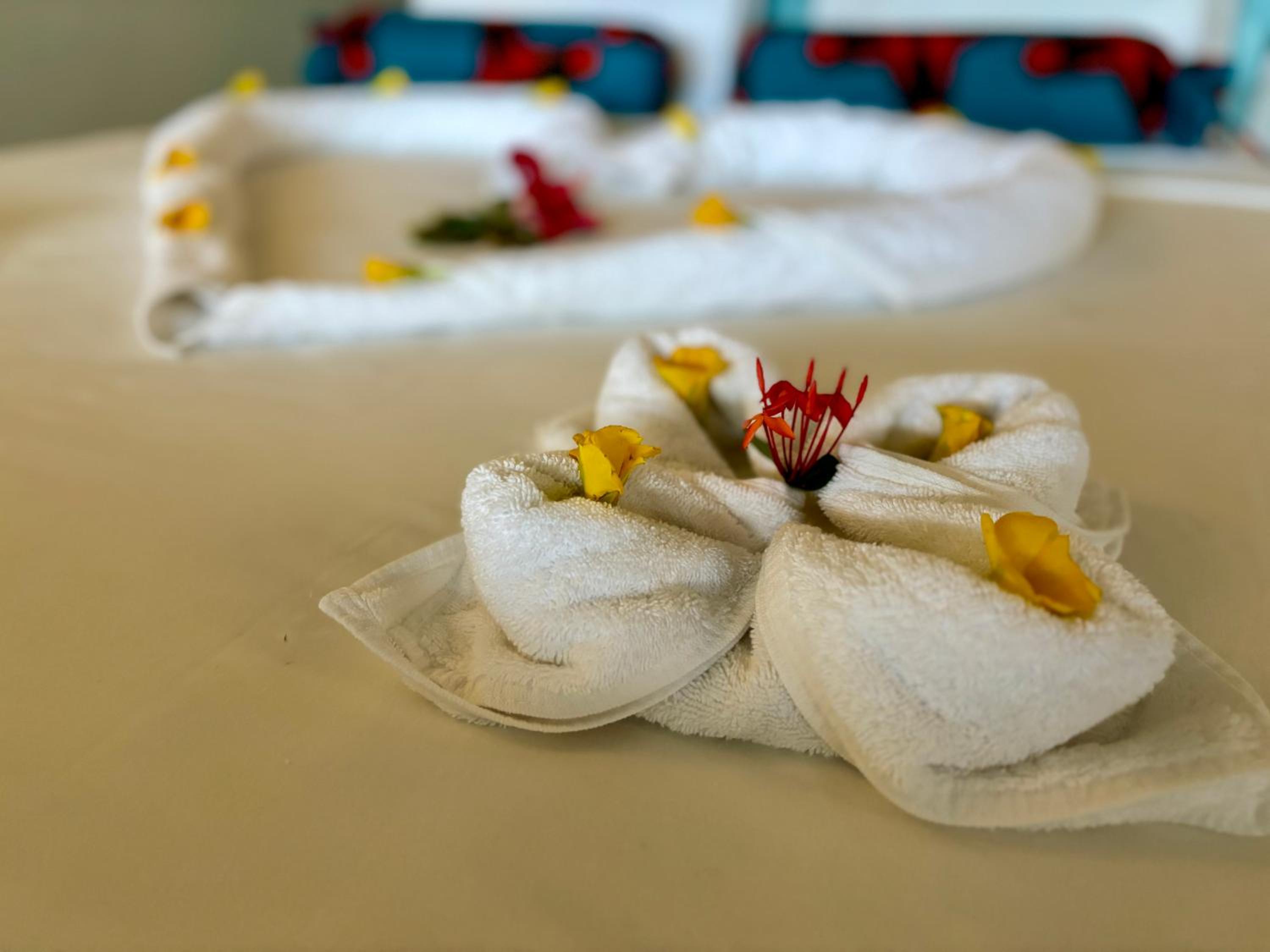 Our stay was absolutely wonderful and the staff was incredibly helpful and friendly from the moment we arrived. The room was very spacious and equipped with all the necessary amenities in a perfect position within the structure. We loved the location of the hotel because it is so close to the beach and makes everything very convenient. The food was delicious and offered vegetarian options while the staff was always available to find vegan solutions for us. One of the best parts was the collaboration with the local diving center because they come directly to the hotel to organize trips and dives for the next day. This means you do not have to go anywhere to plan your activities in the evening. The massages were also excellent and provided a great way to relax during the day. Overall there is a perfect holiday vibe at this place and we enjoyed every single minute of our vacation.