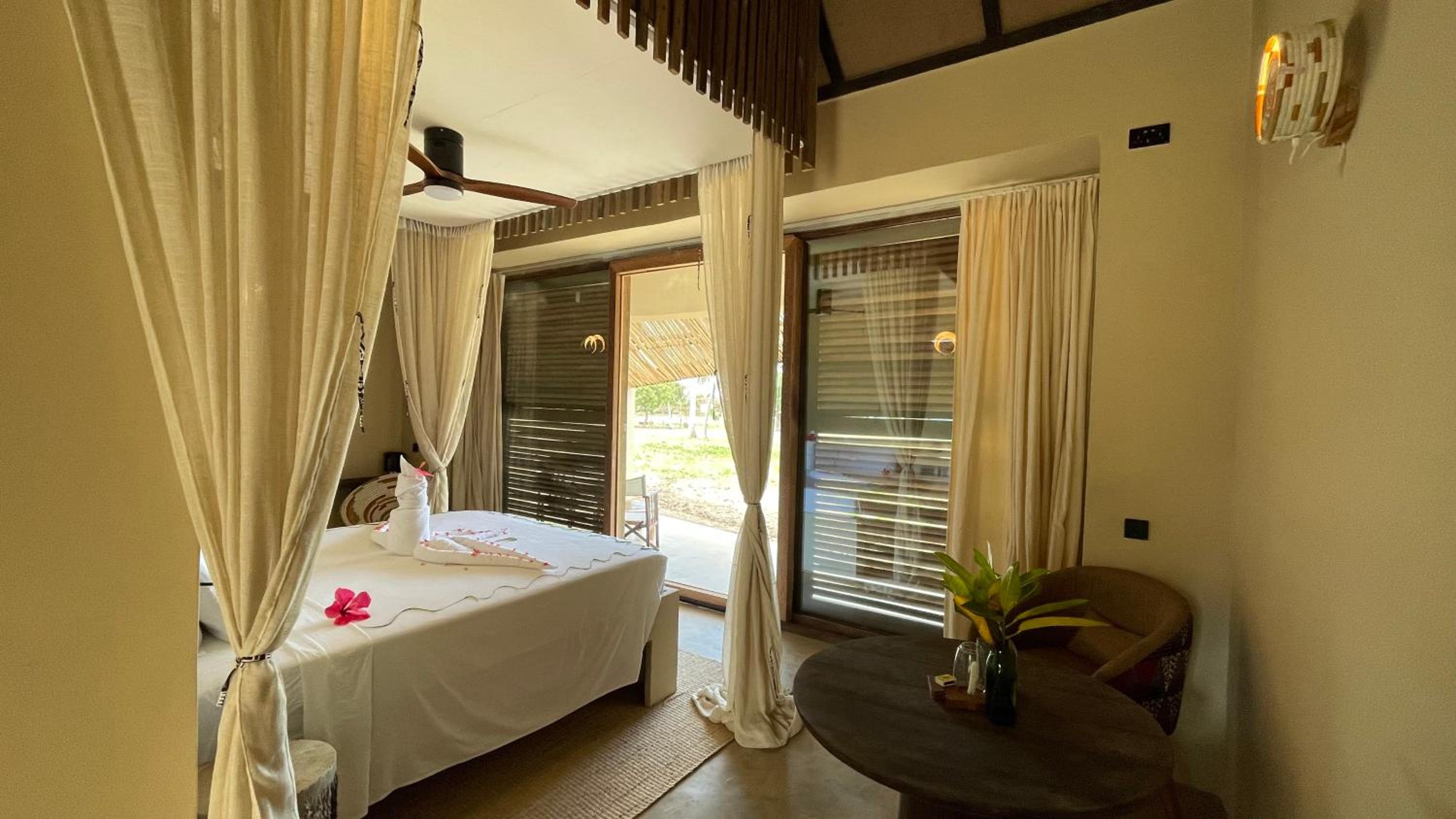 Un detalle que suma mucho es el personal de seguridad masái, que le da un aire simpático y exótico al lugar, aportando un toque cultural auténtico a la experiencia. La ubicación es excelente, justo en la misma playa de Utende y en el punto desde donde salen las excursiones para hacer snorkel y visitar Chole Island. Es muy práctico si quieres explorar el parque marino y moverte fácilmente en barco.