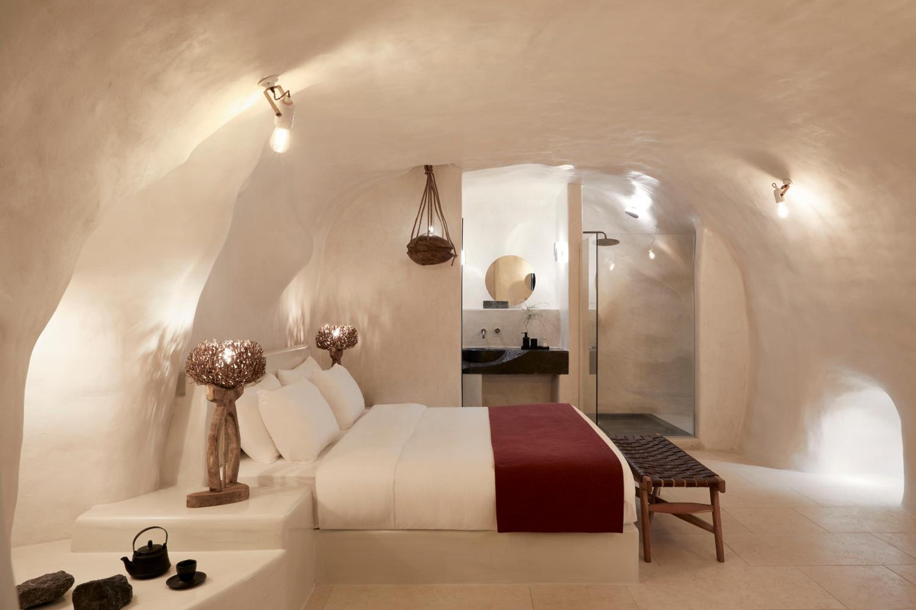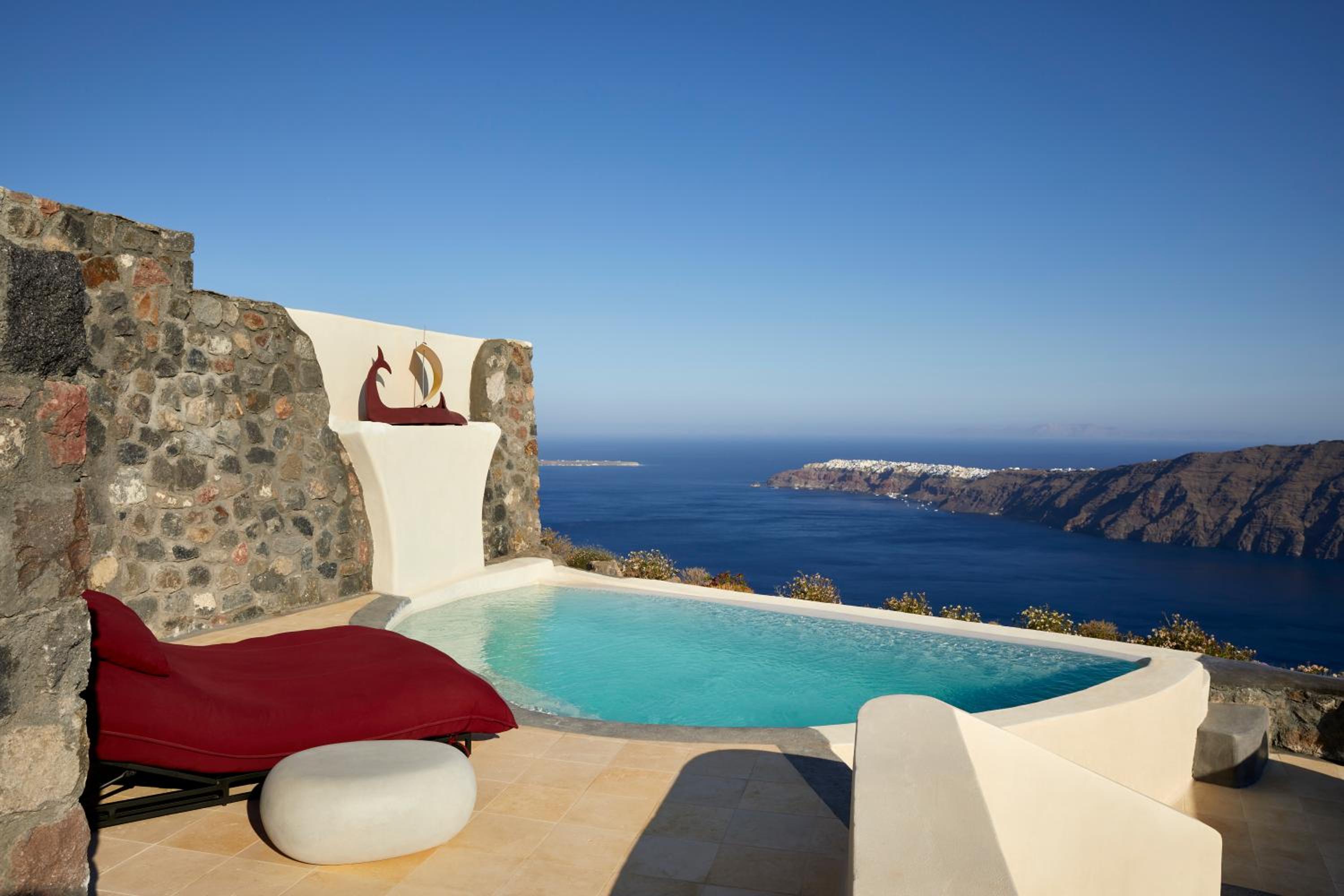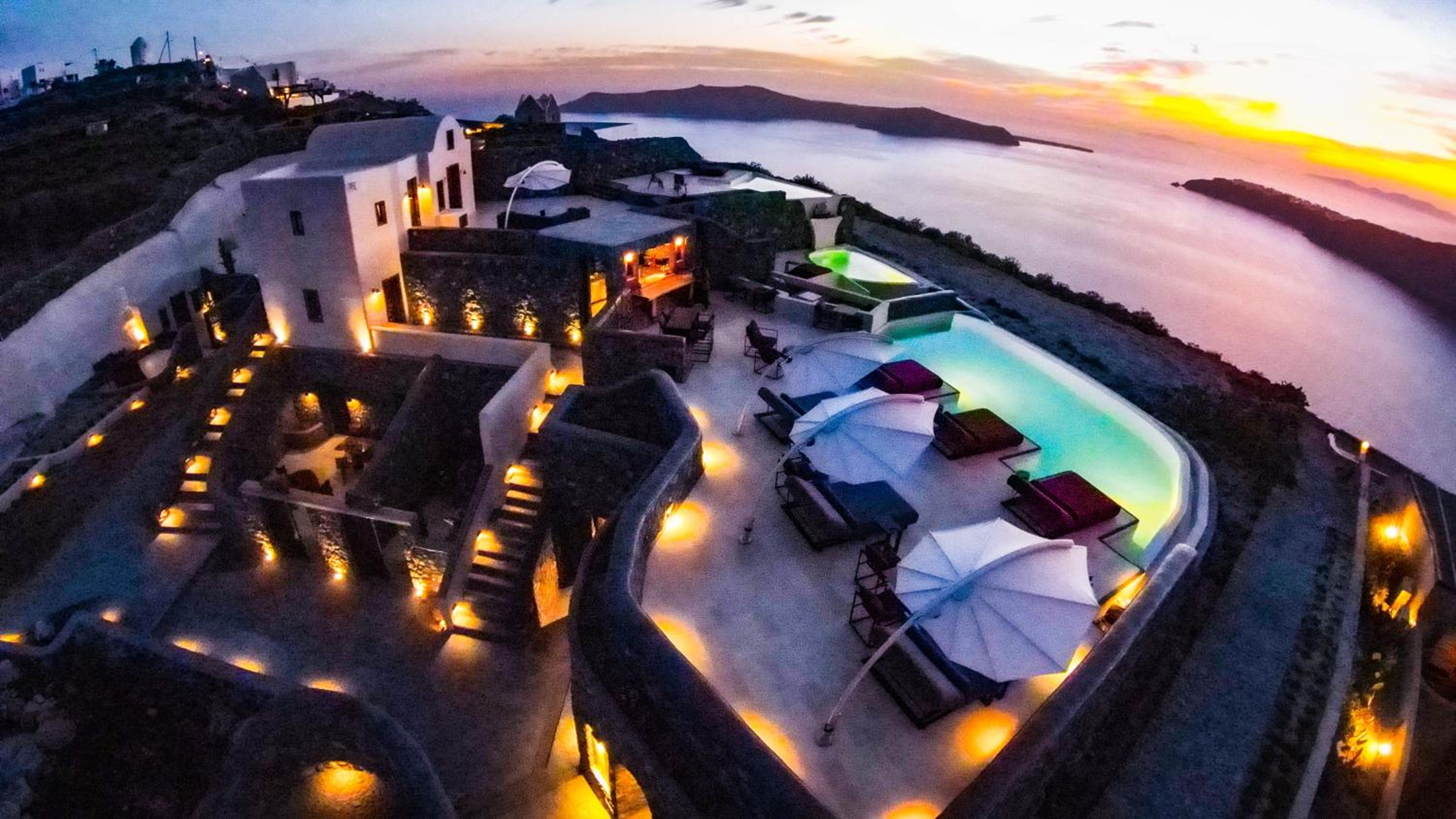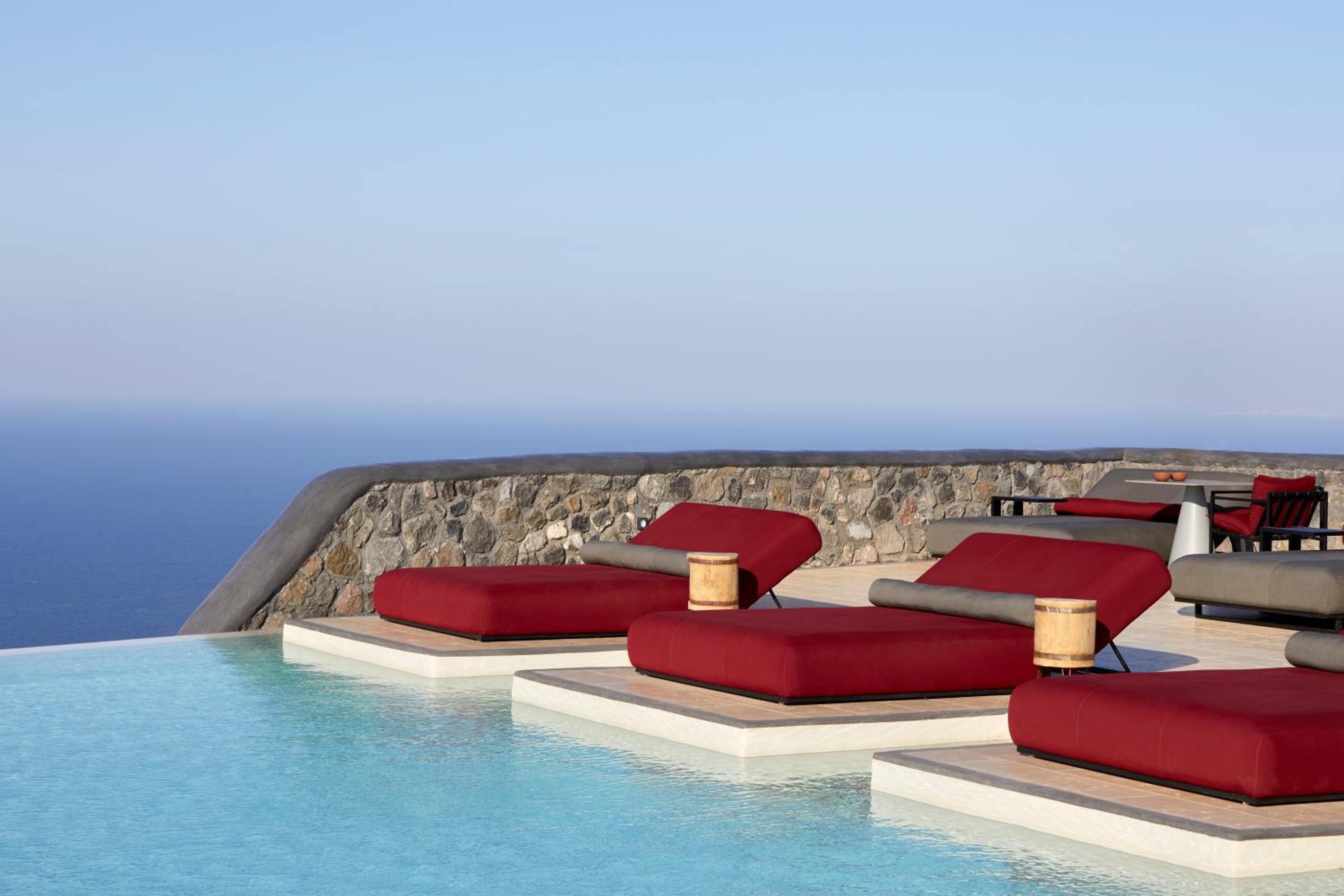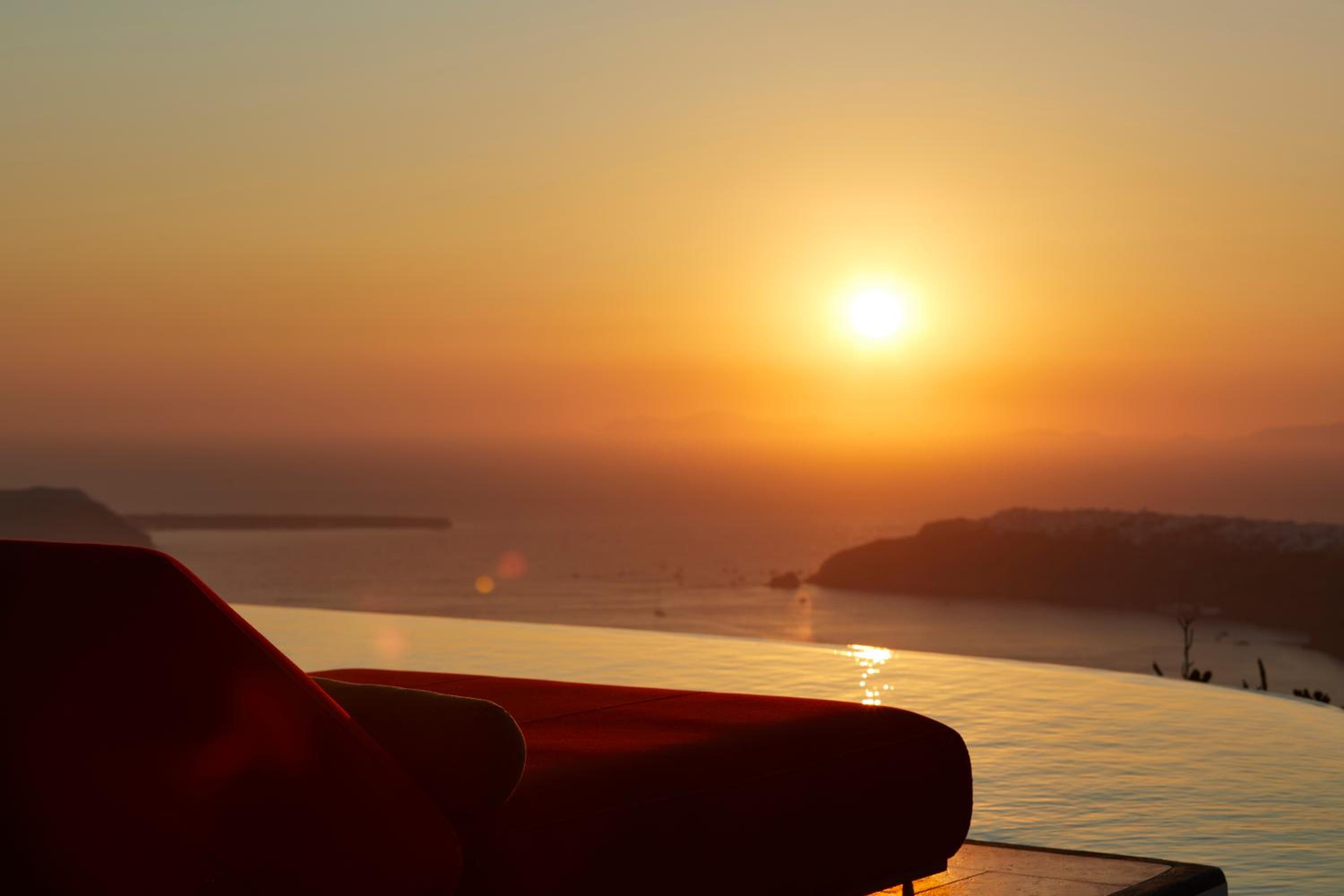 Enjoy the breathtaking sea caldera and sunset views from our infinity swimming pool. Indulge in our premium-style hot tub, air conditioning, and various body treatments for the ultimate relaxation.