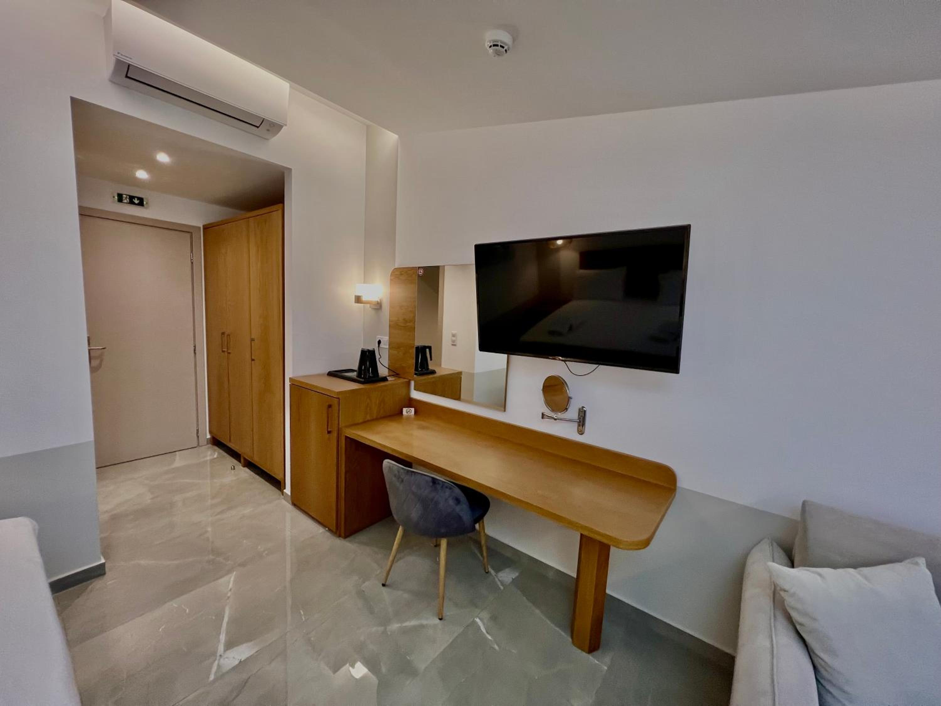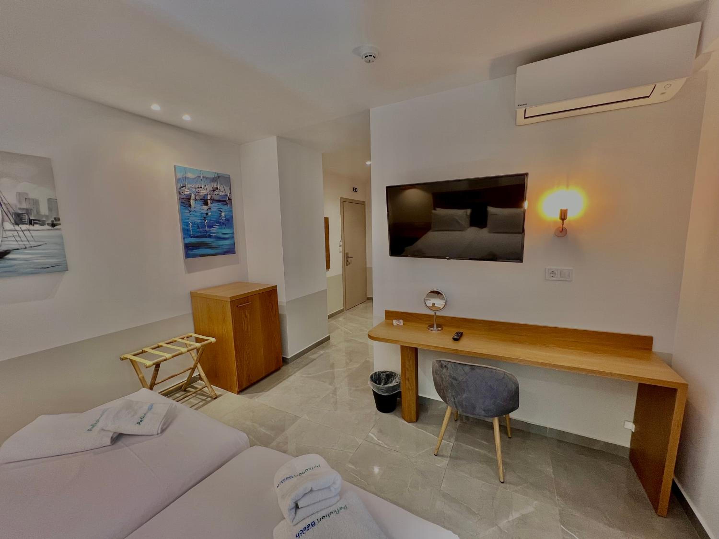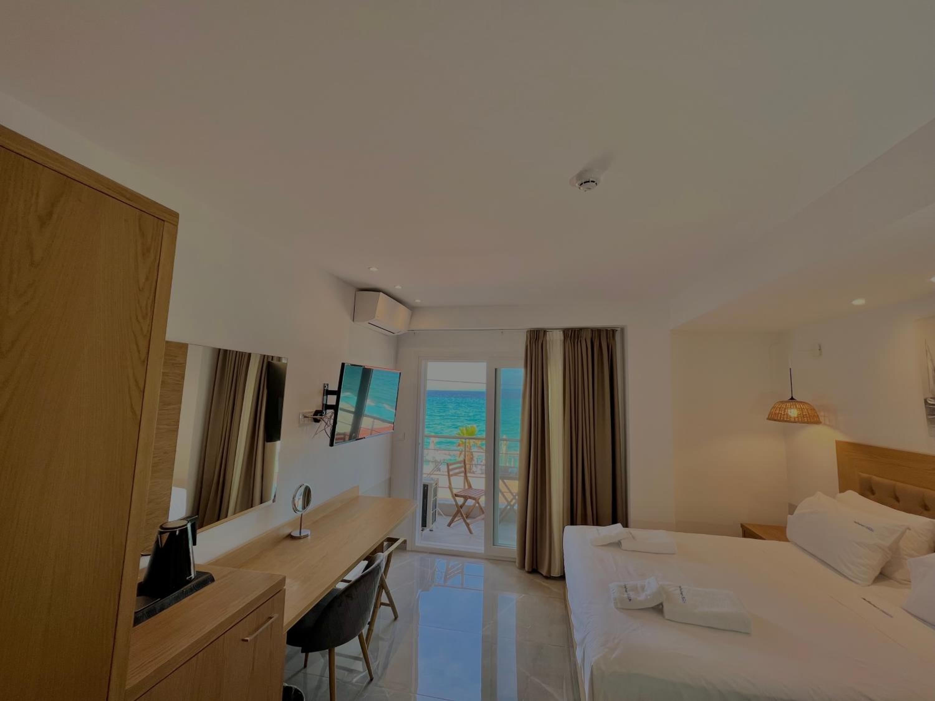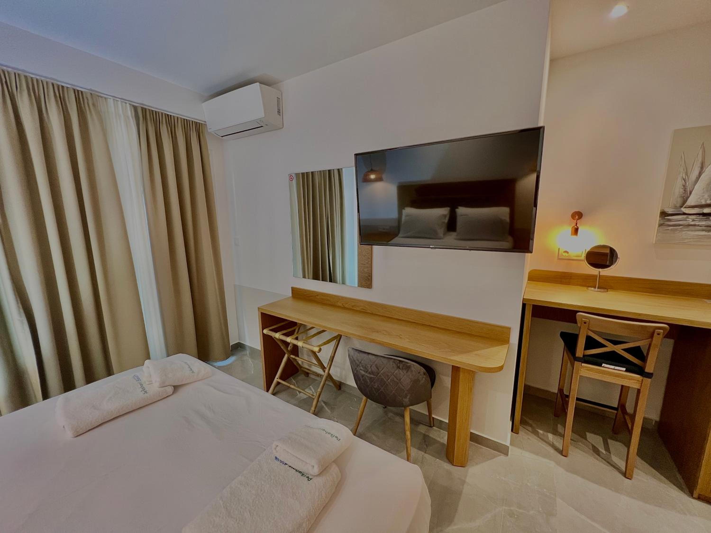 With air conditioning, flat-screen TVs, and free WiFi in every room, guests can stay connected and comfortable throughout their stay at Hotel Pefkohori Beach.