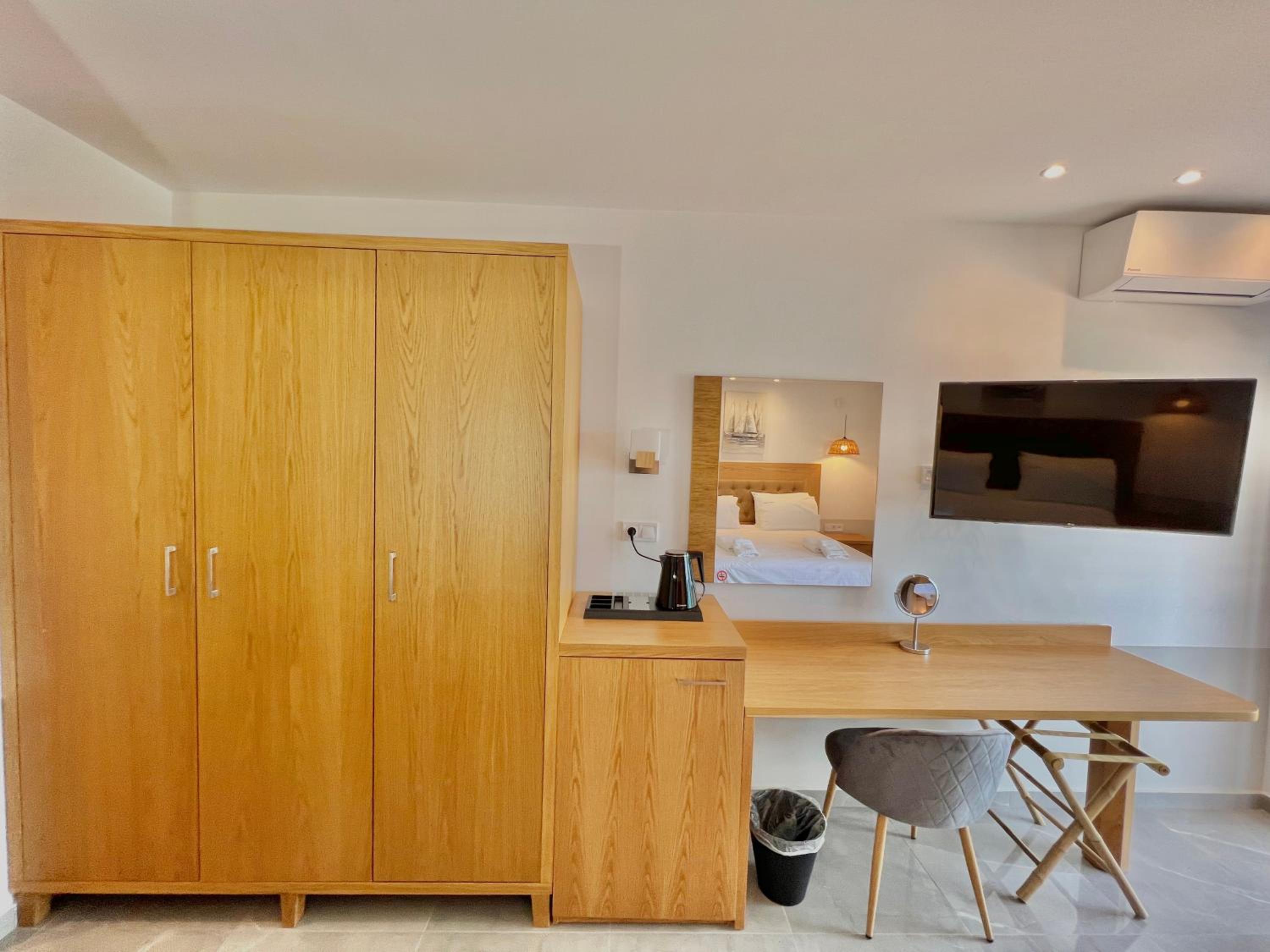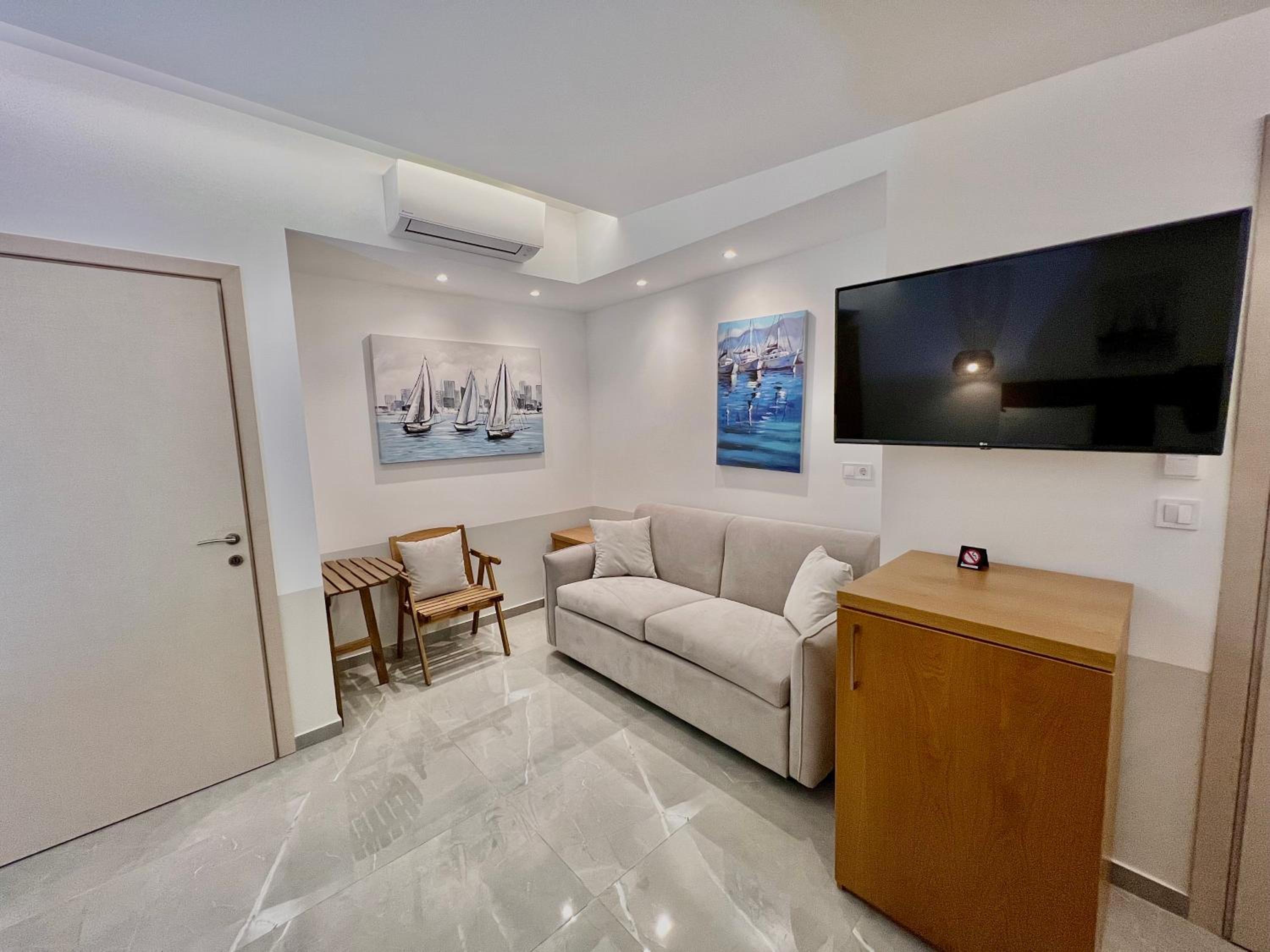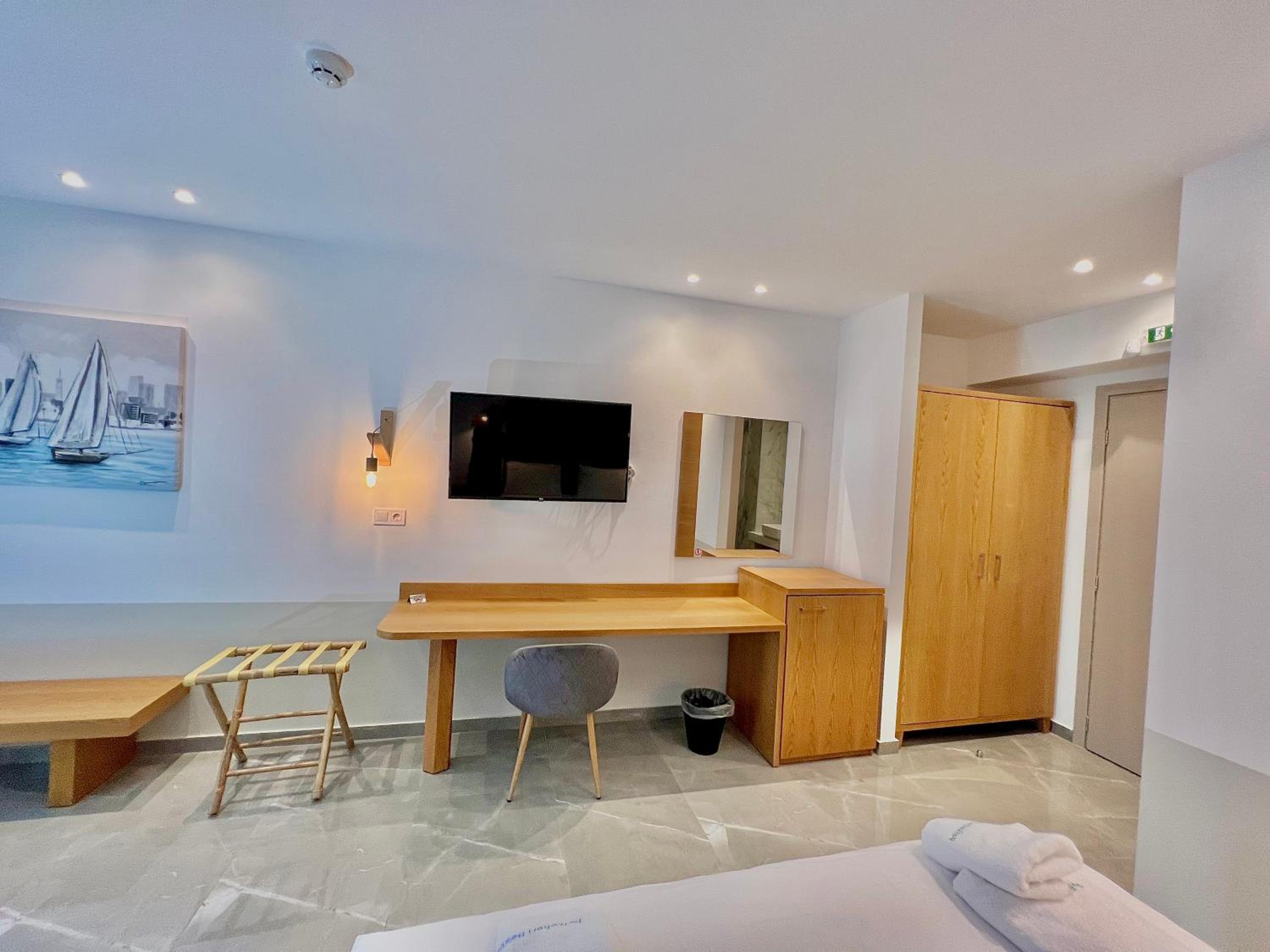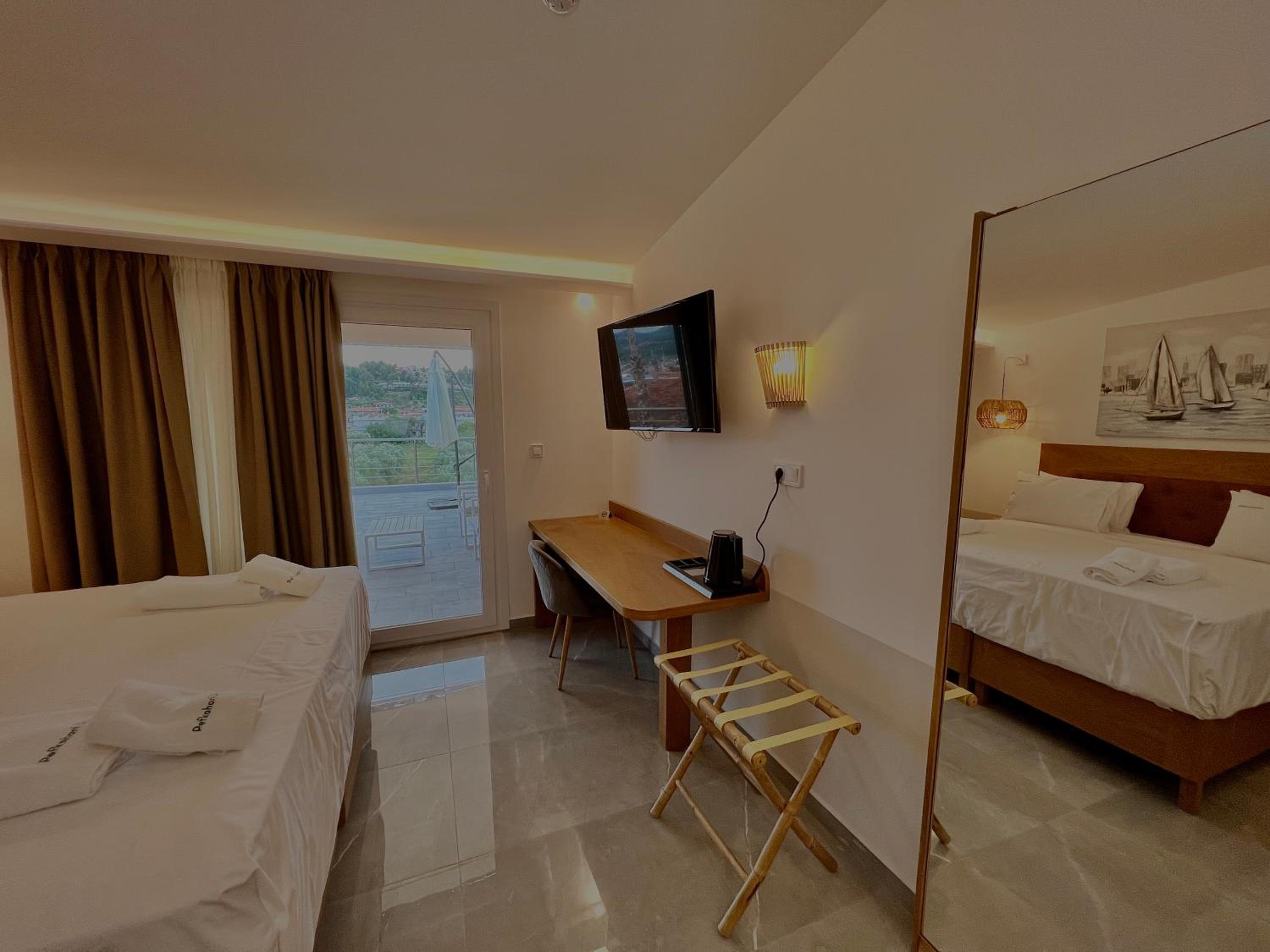 With air conditioning, flat-screen TVs, and free WiFi in every room, guests can stay connected and comfortable throughout their stay at Hotel Pefkohori Beach.
