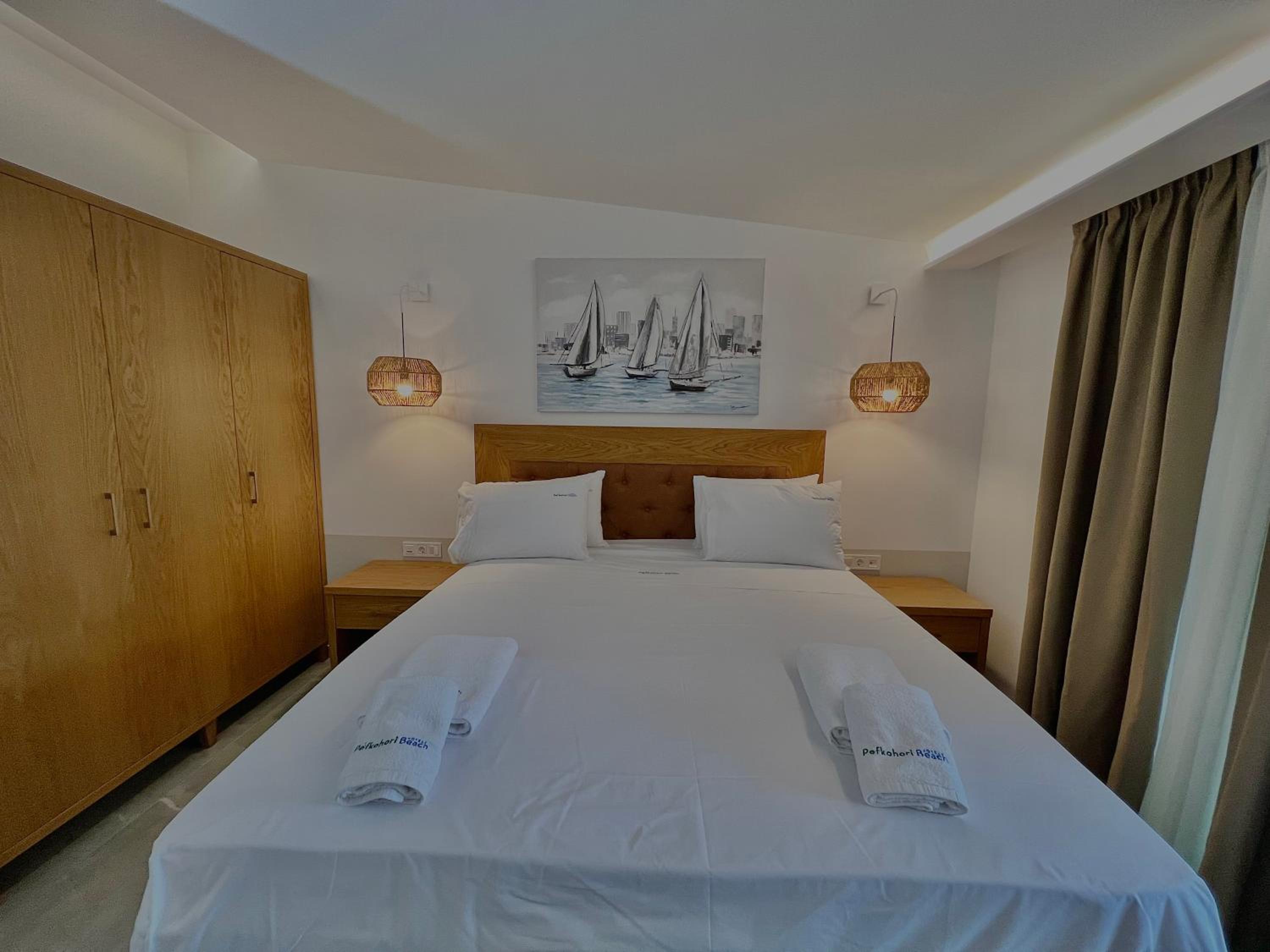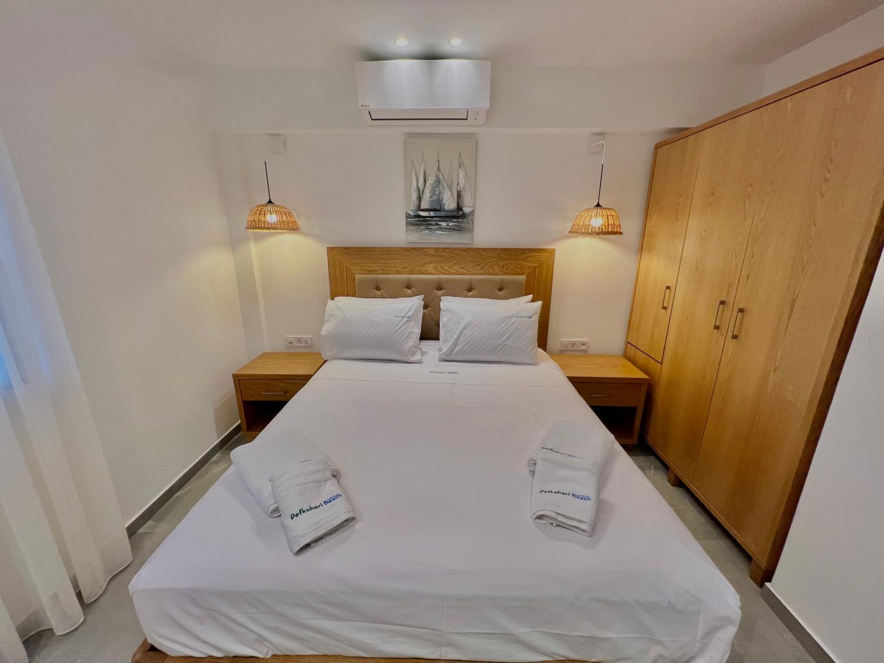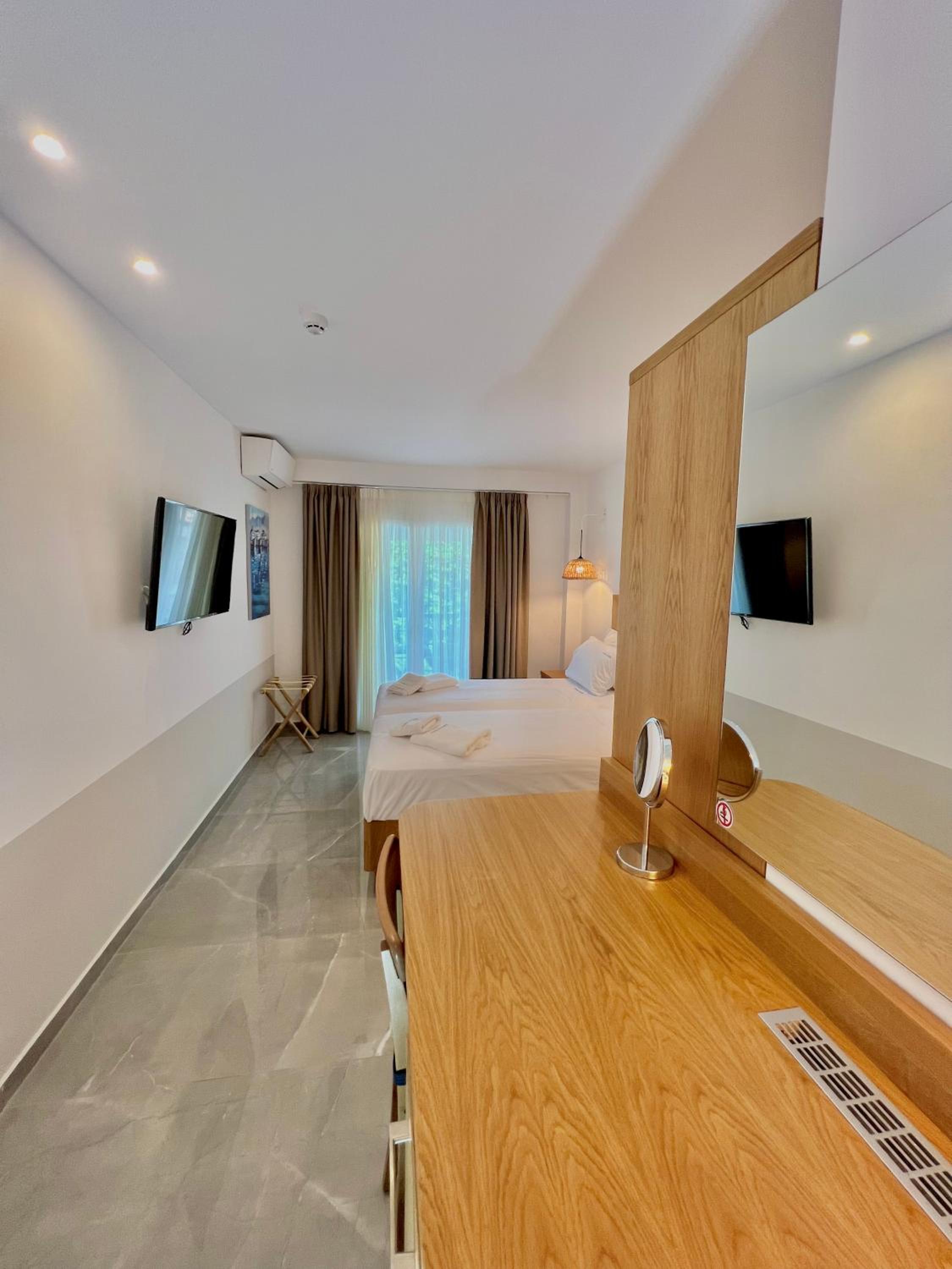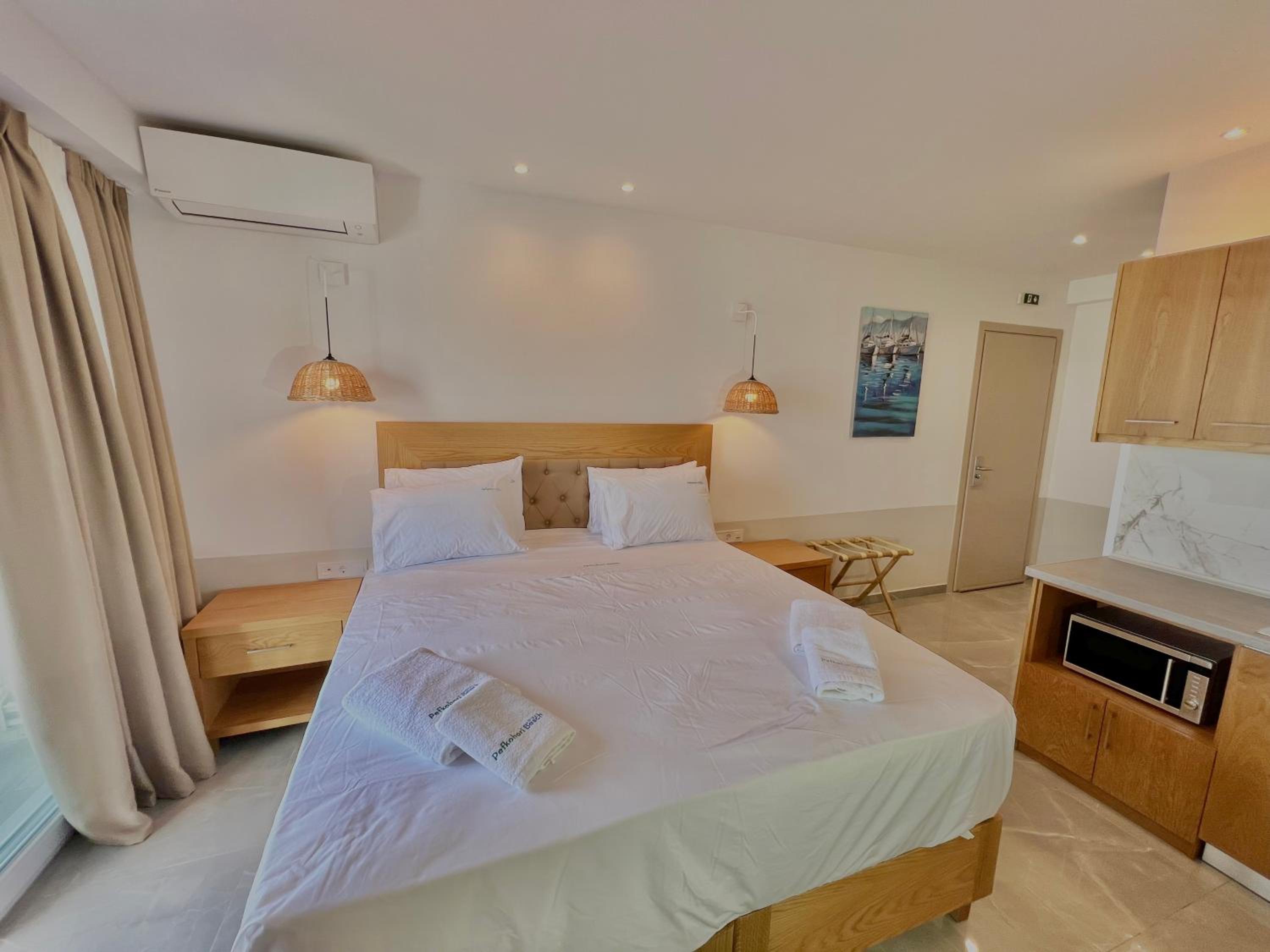 With air conditioning, flat-screen TVs, and free WiFi in every room, guests can stay connected and comfortable throughout their stay at Hotel Pefkohori Beach.