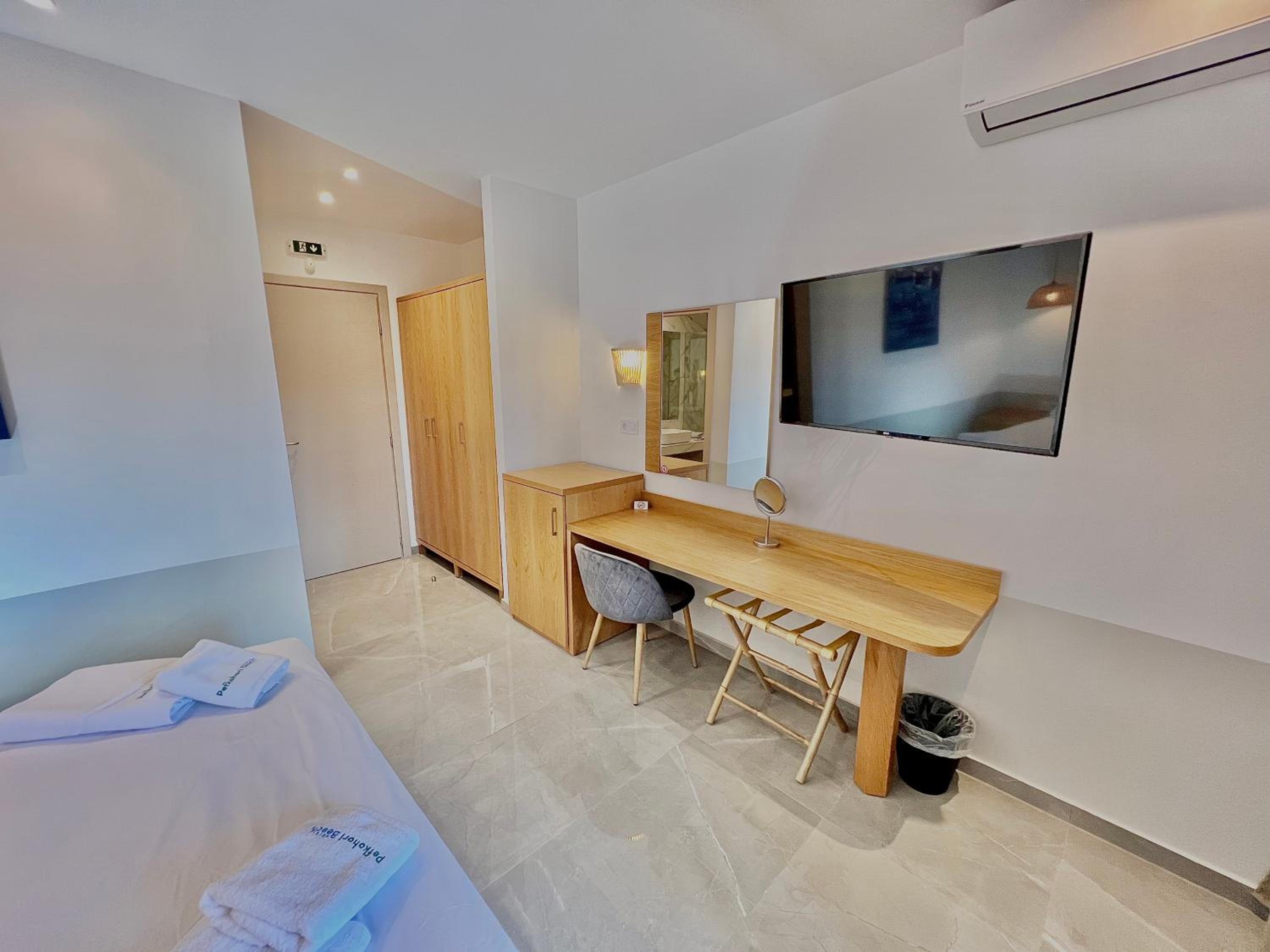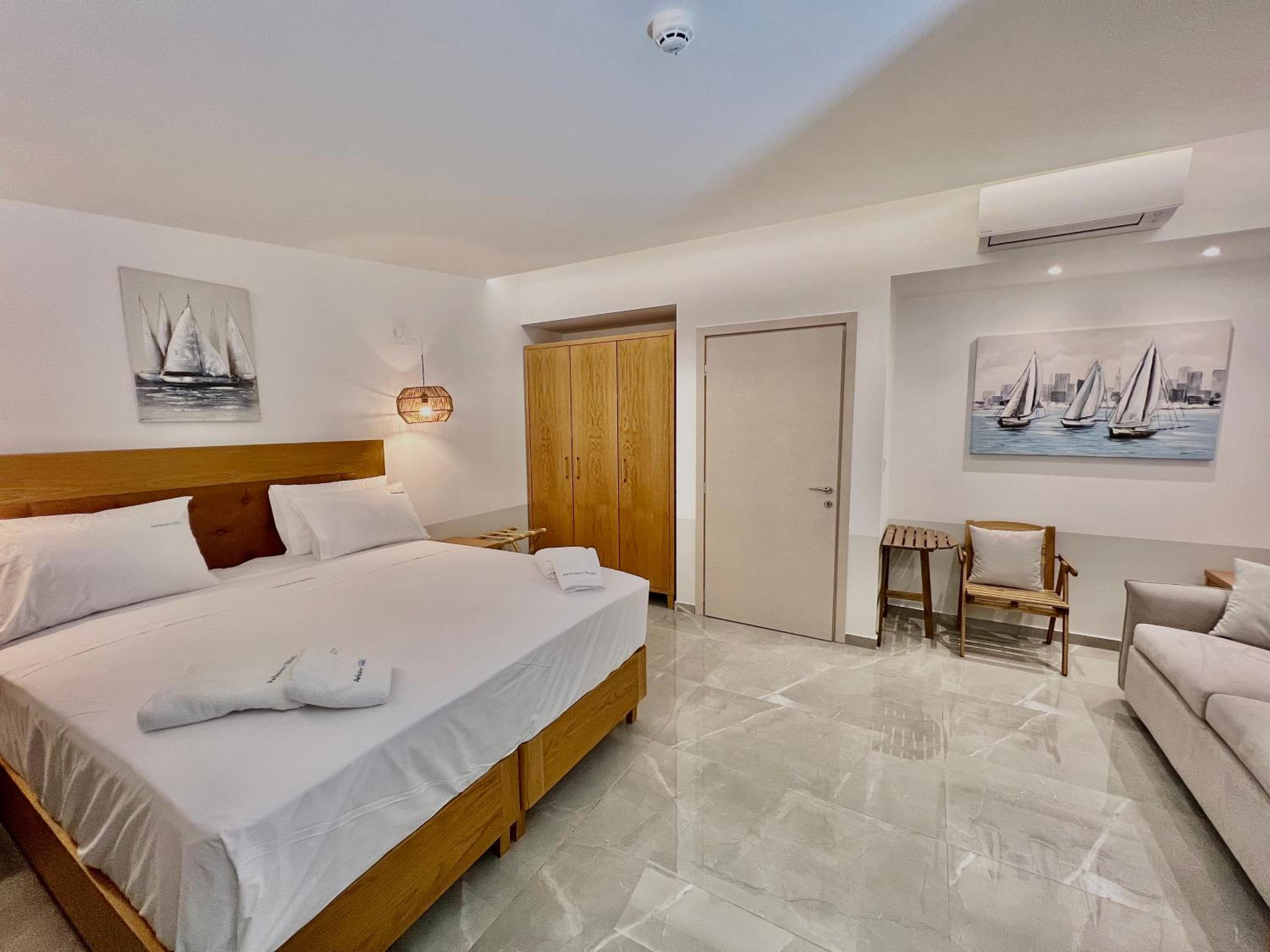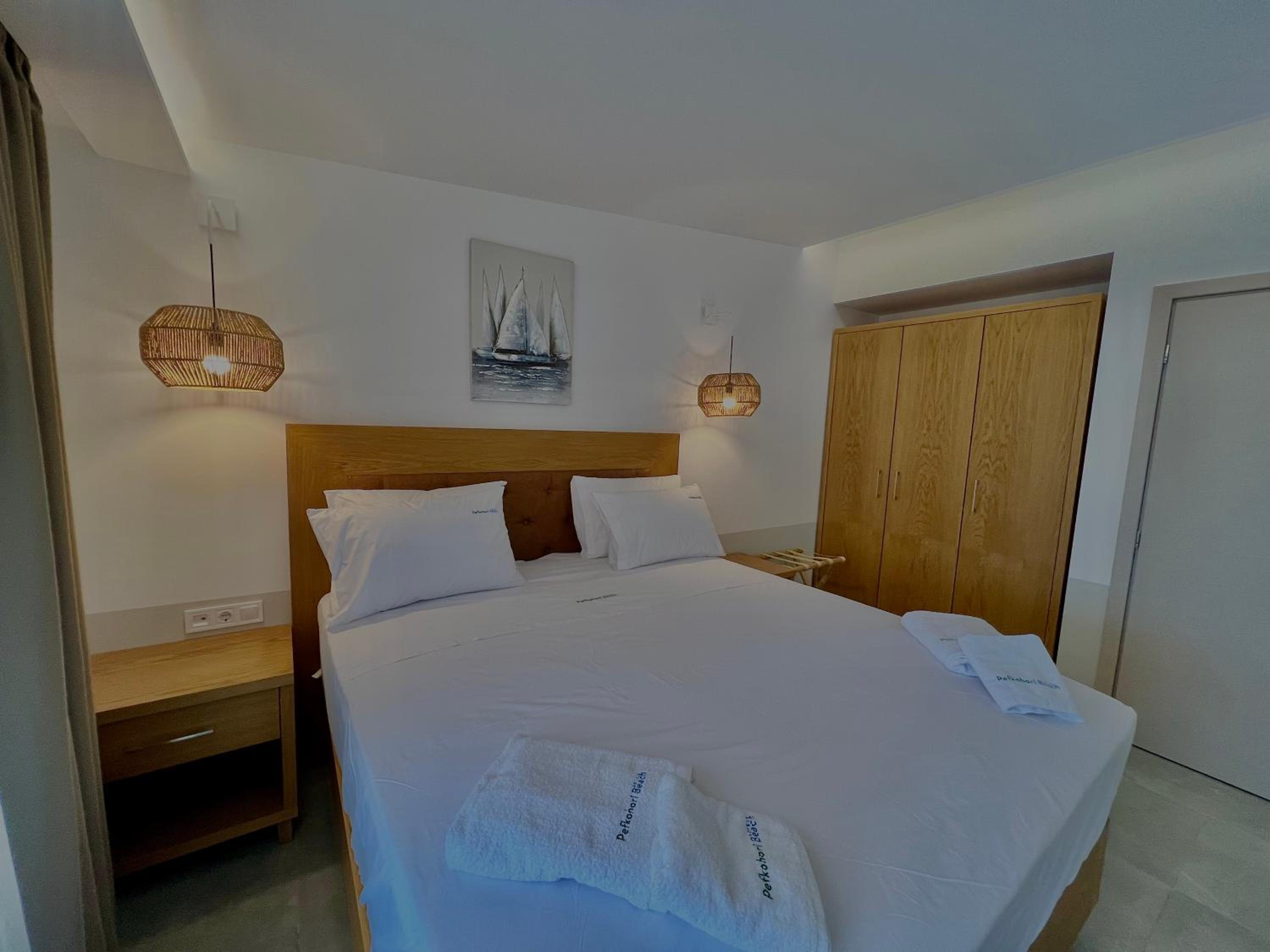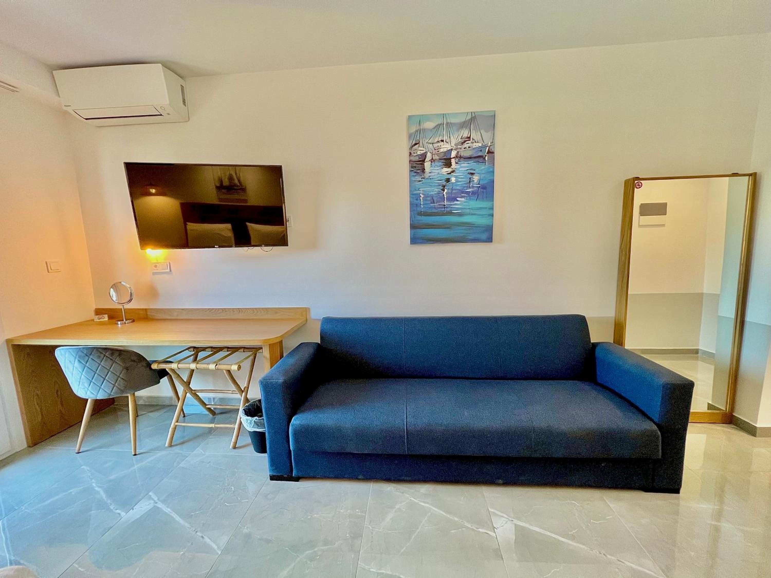 With air conditioning, flat-screen TVs, and free WiFi in every room, guests can stay connected and comfortable throughout their stay at Hotel Pefkohori Beach.
