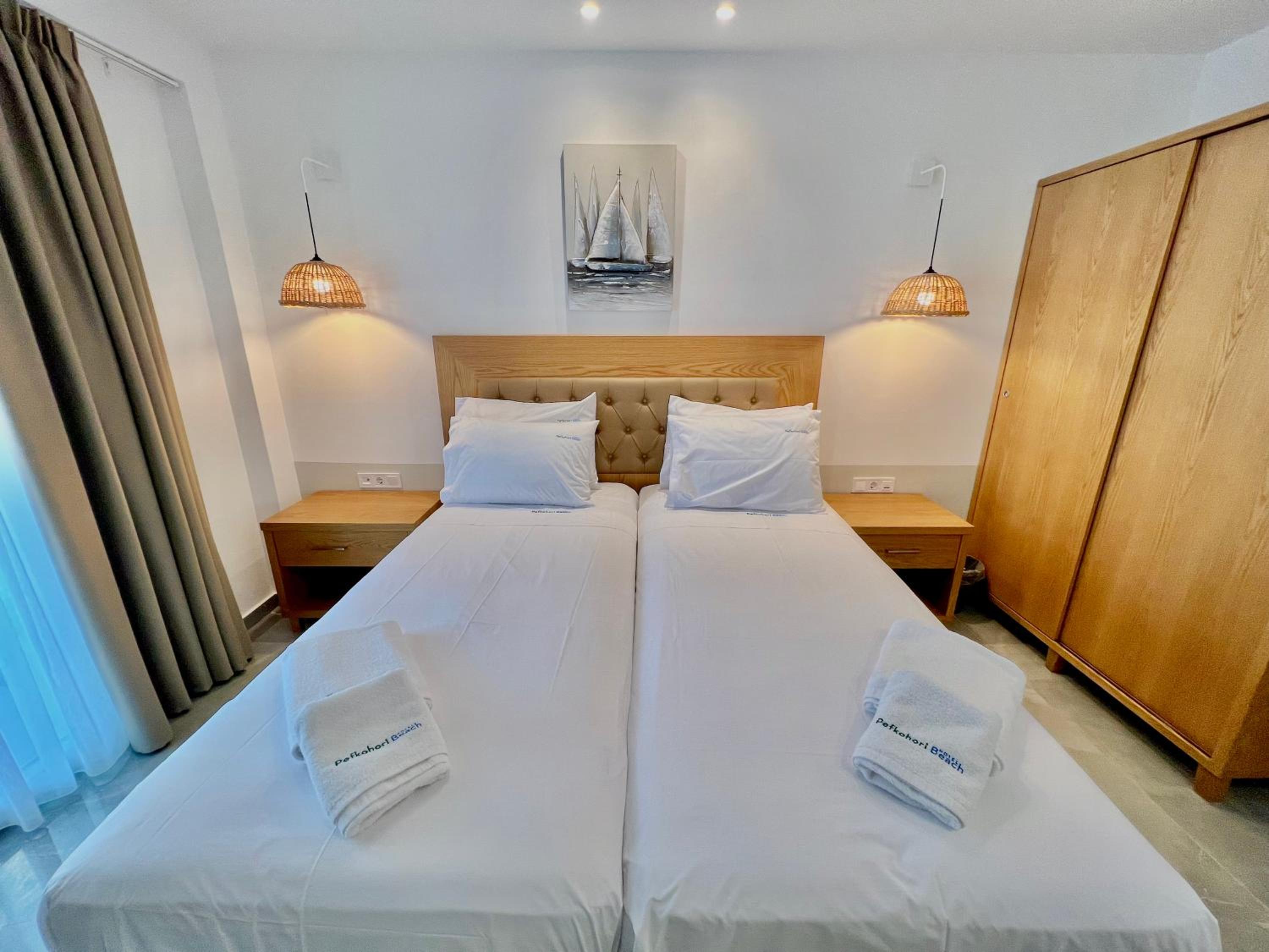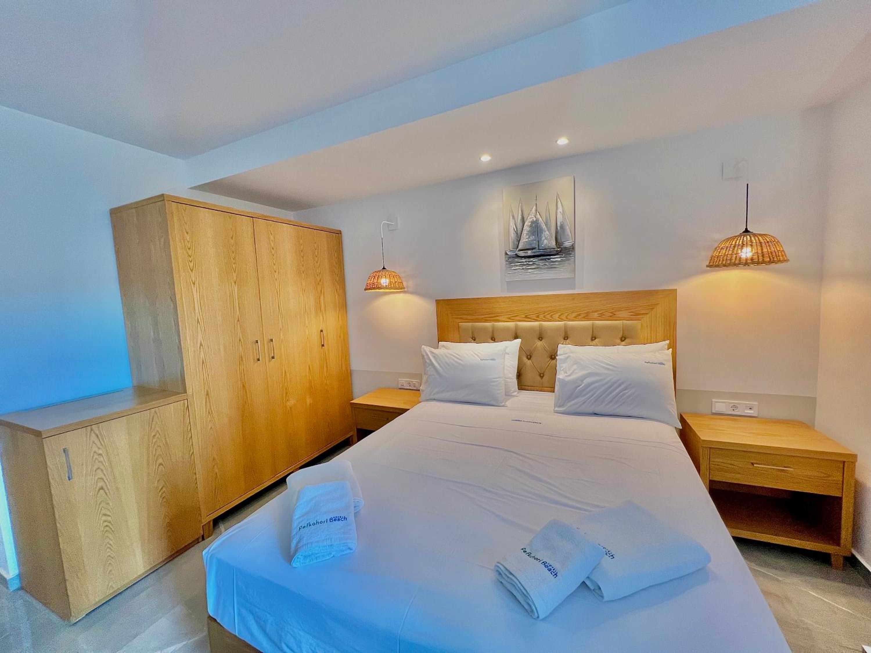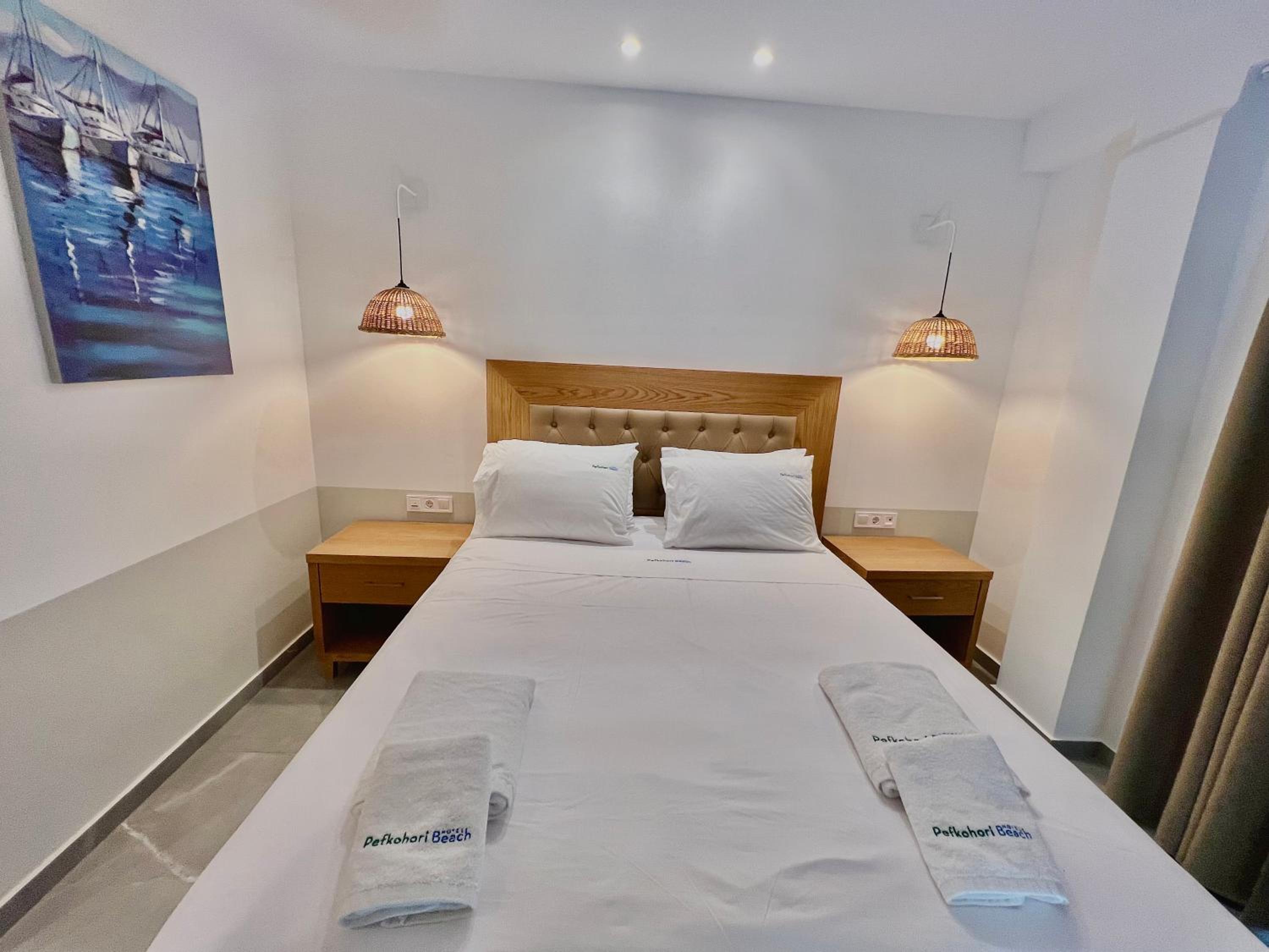 Some rooms at Hotel Pefkohori Beach offer stunning sea views, providing guests with a tranquil and picturesque setting for their vacation.