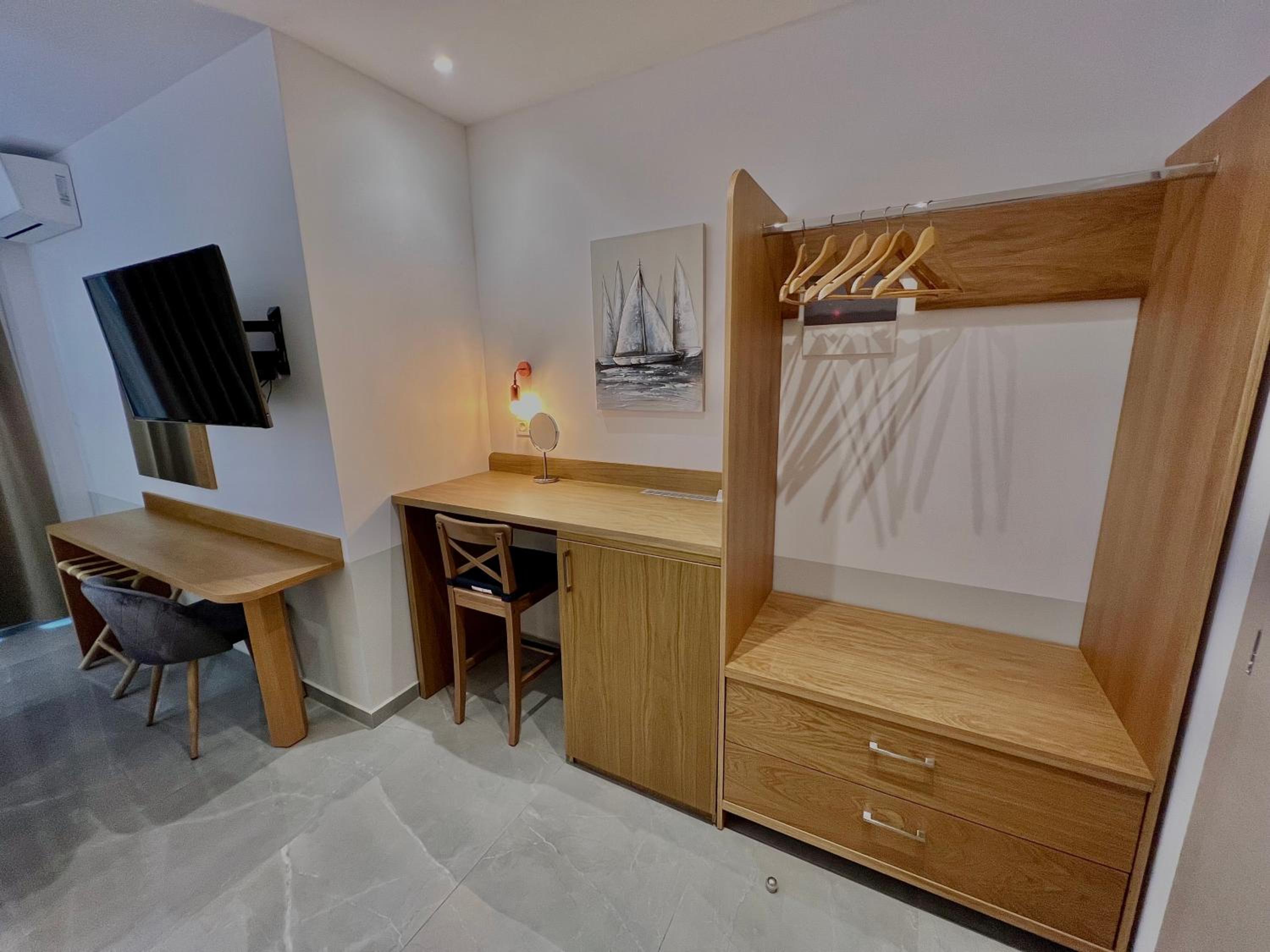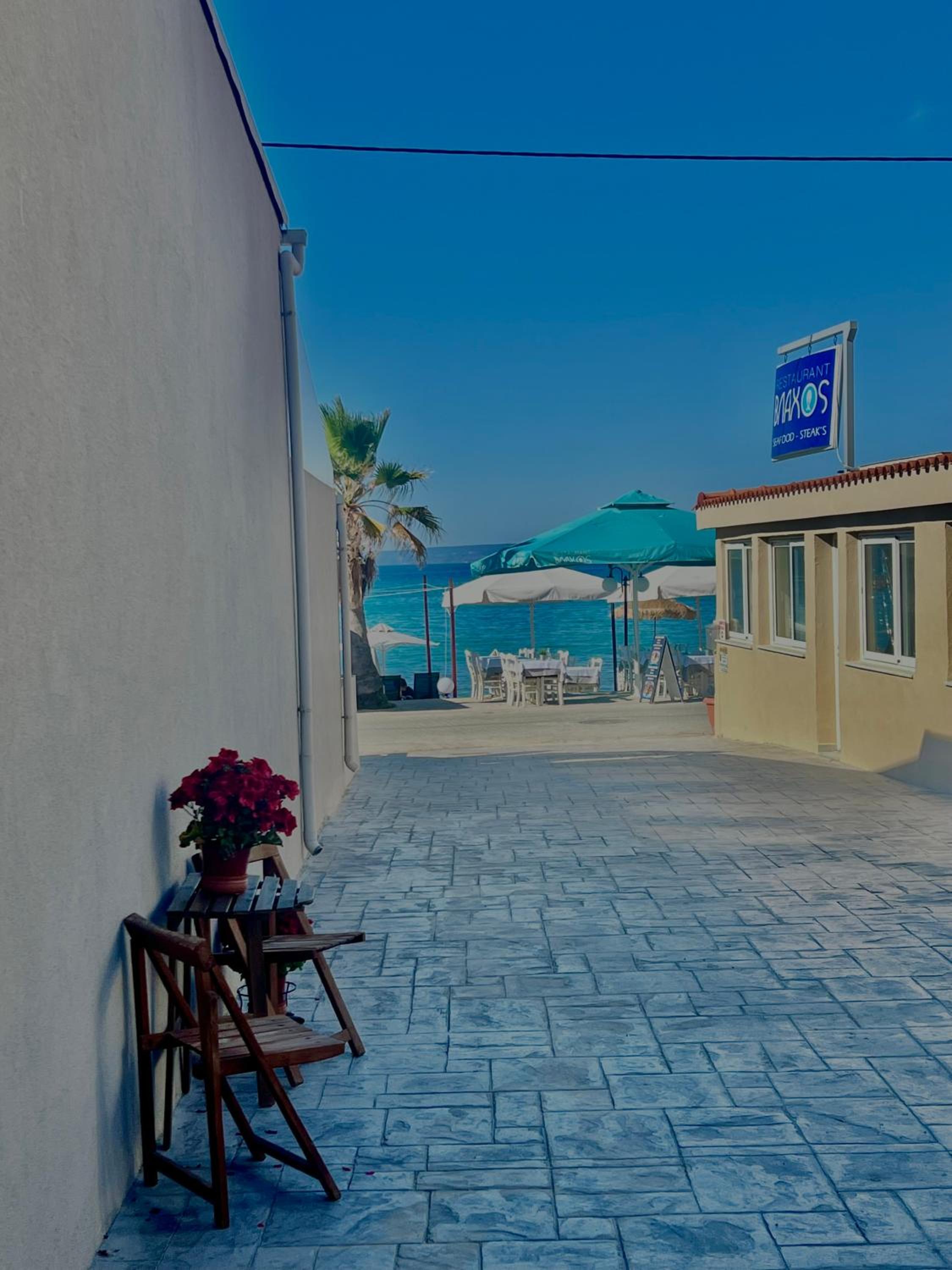 Odamız ve sağladığı imkanlar kusursuzdu. Otelin konumu, denize sıfır olması çok güzeldi. Otel sahibi Makris son derece ilgili ve kibar birisiydi. Tüm çalışanlar güler yüzlüydü