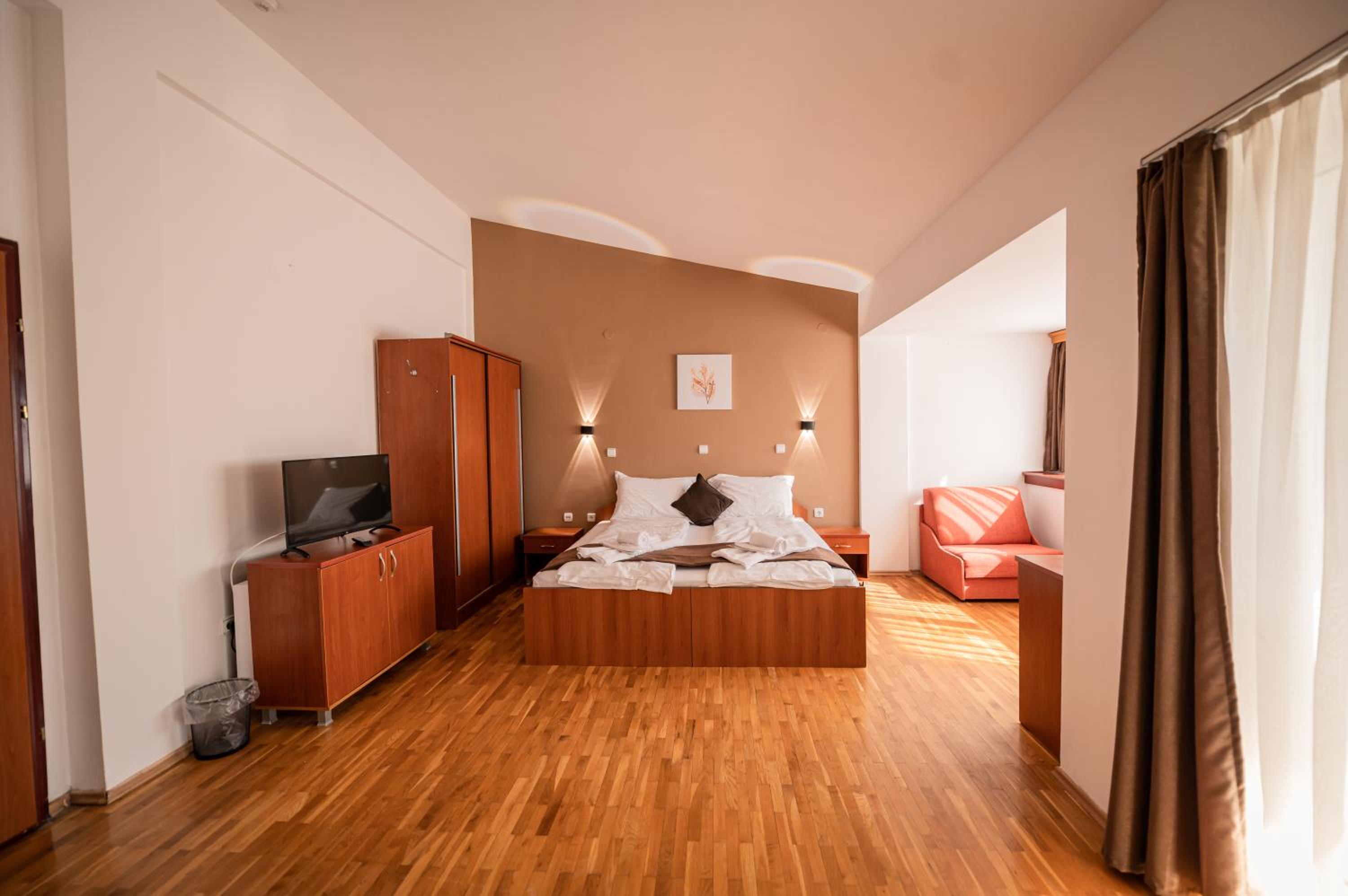 The air-conditioned rooms at Hotel Ohridati Palace are equipped with modern amenities including free WiFi, flat-screen TVs, and private bathrooms. Guests can also enjoy stunning mountain views from selected rooms and relax on their own private balcony.