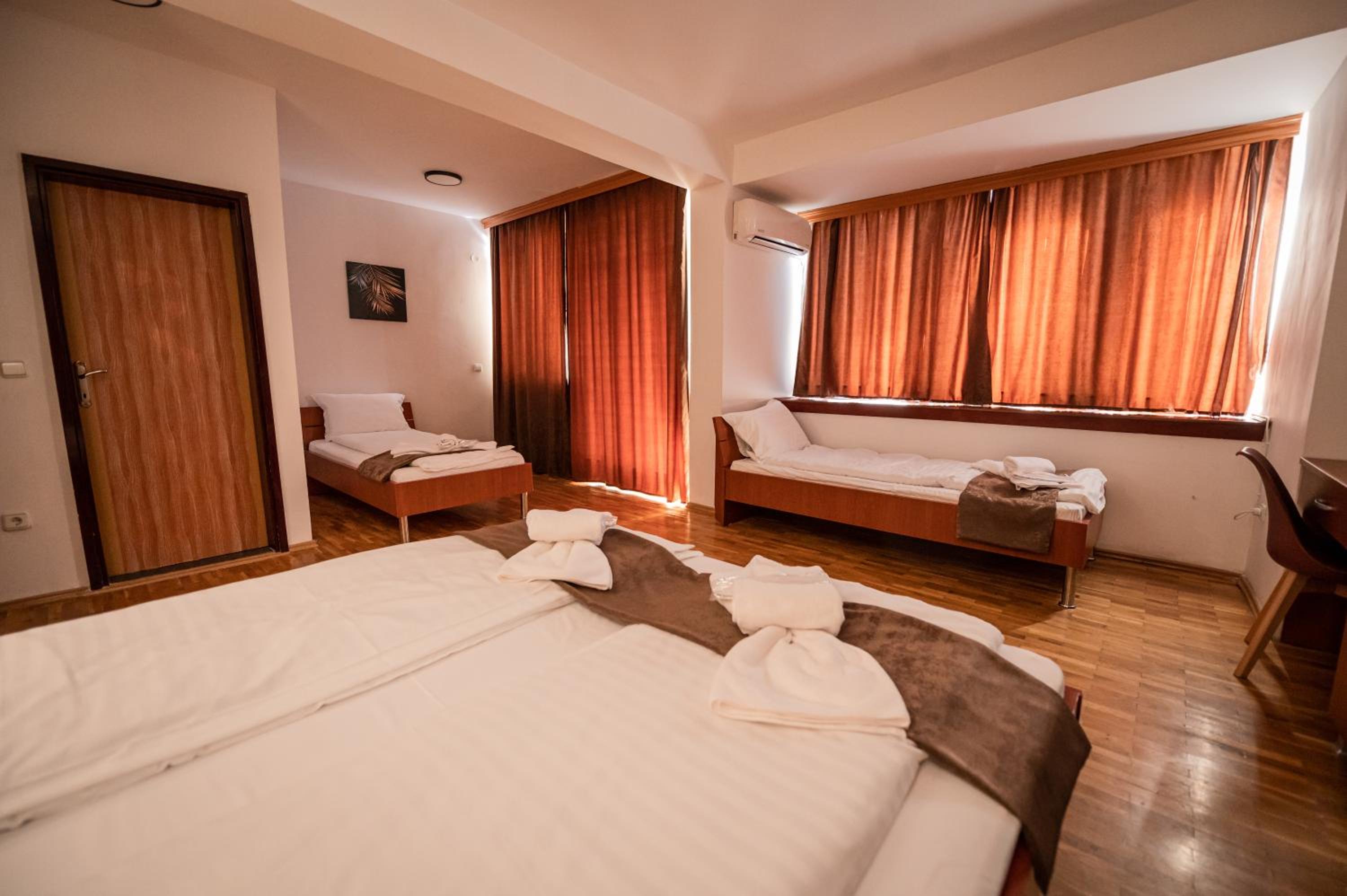 Nice location 10 min walk by the lake from center, clean rooms, nice basic breakfast, calm area with exception if there is concert on the near stadium, comfortable beds, working AC, you can find a parking spot on the main street where the hotel is located, nice restaurant named Orfej right next to the hotel.