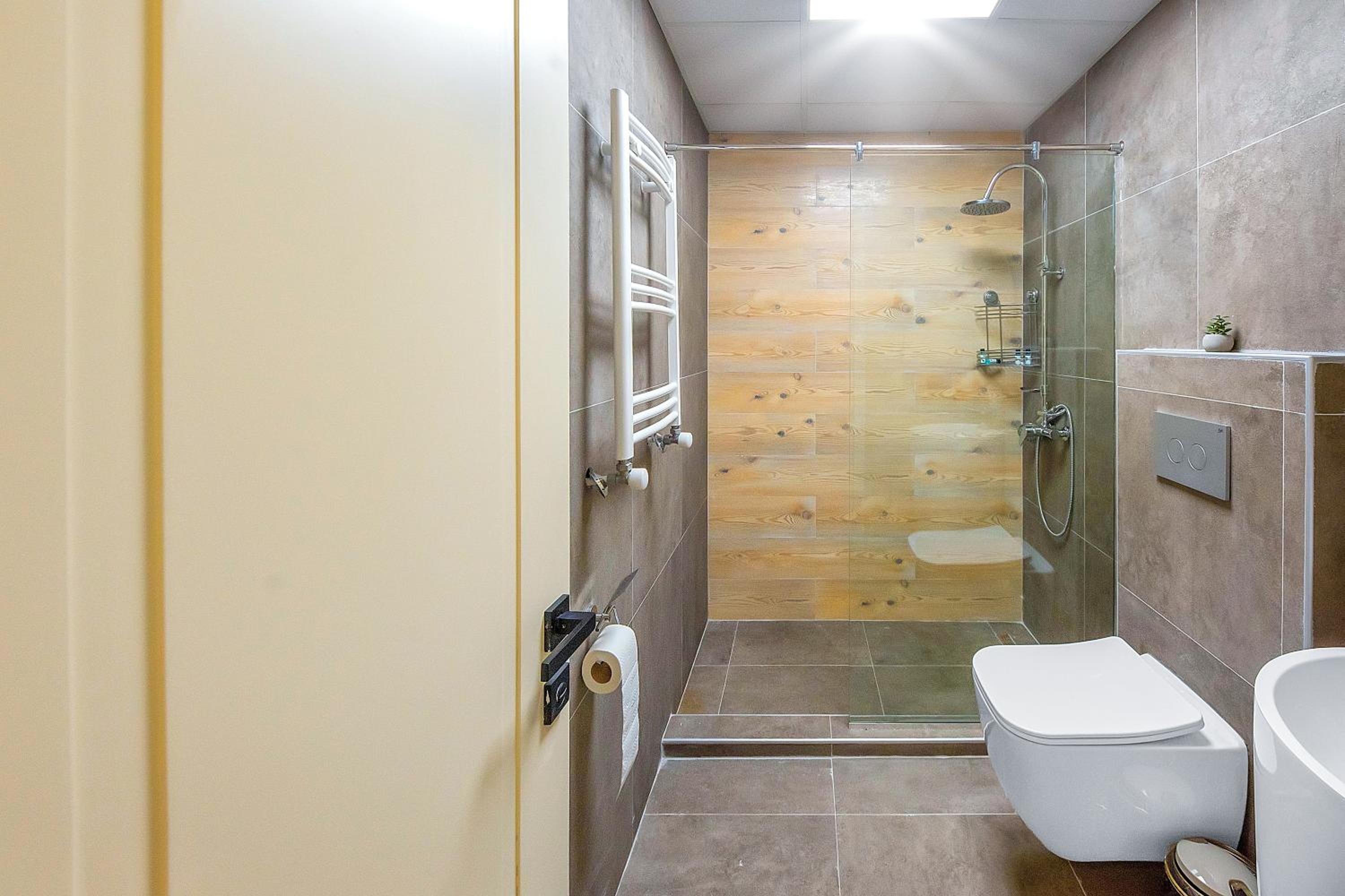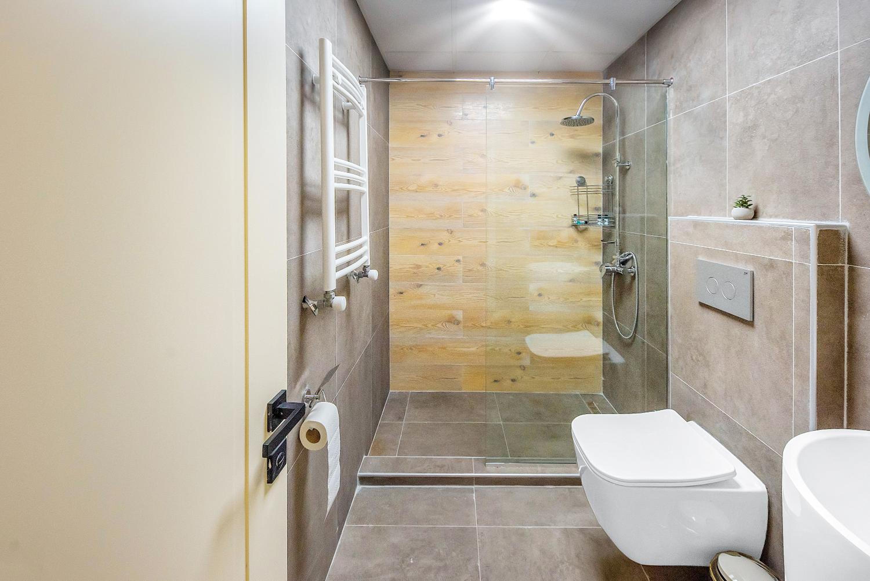 Nice space with a small kitchen, perfect shower, very central location next to a supermarket and bakery (although currently the whole town is under construction)
