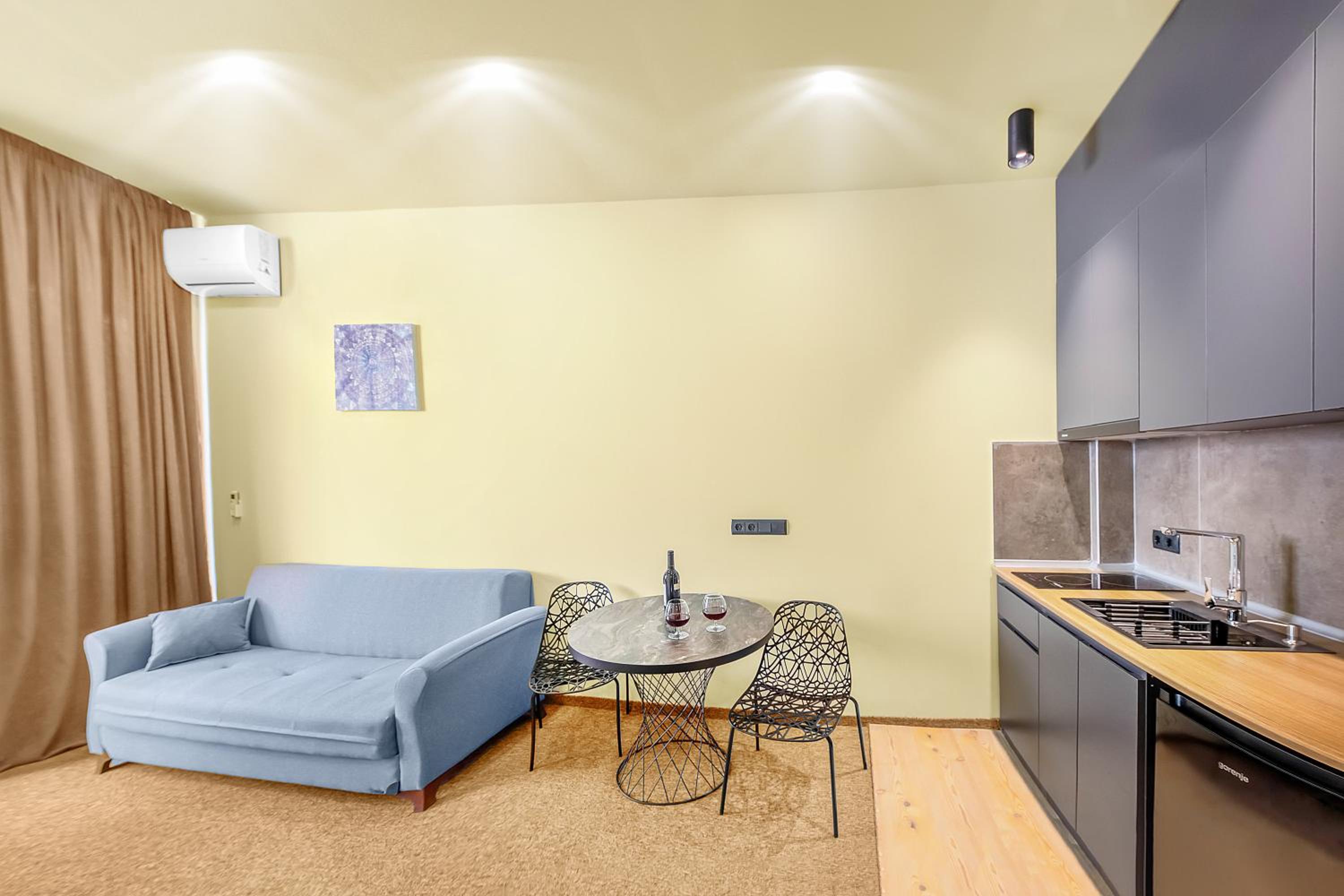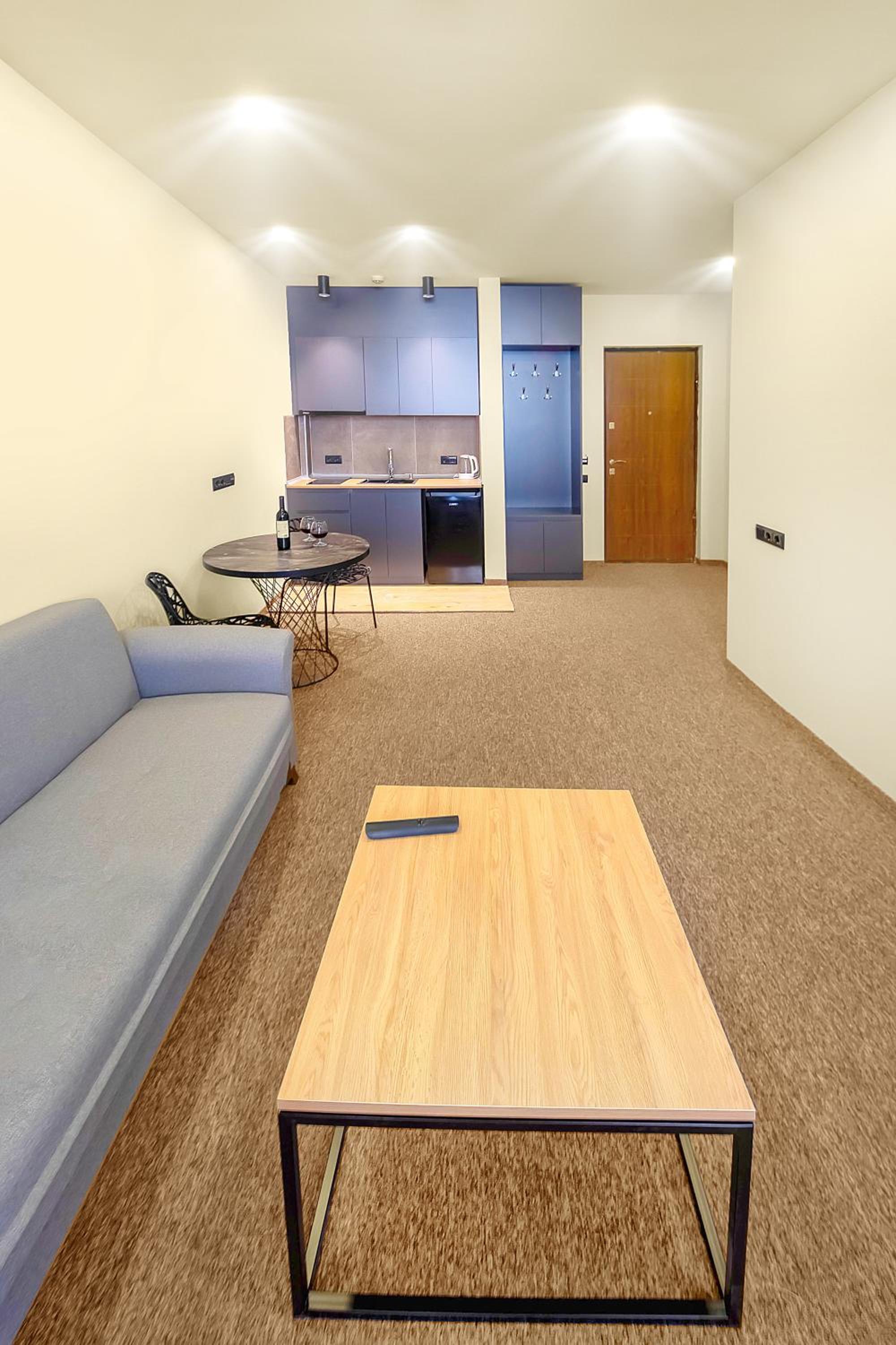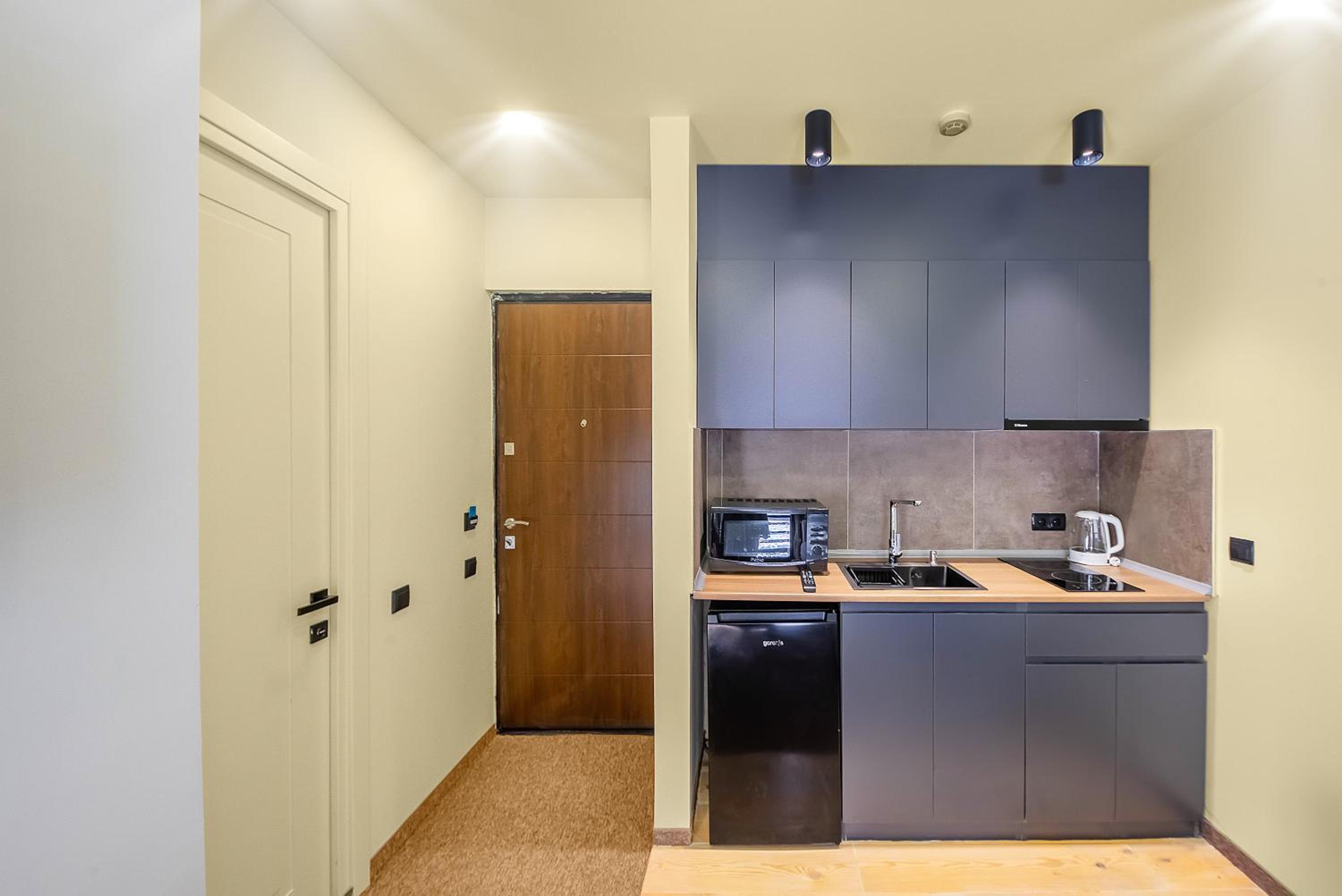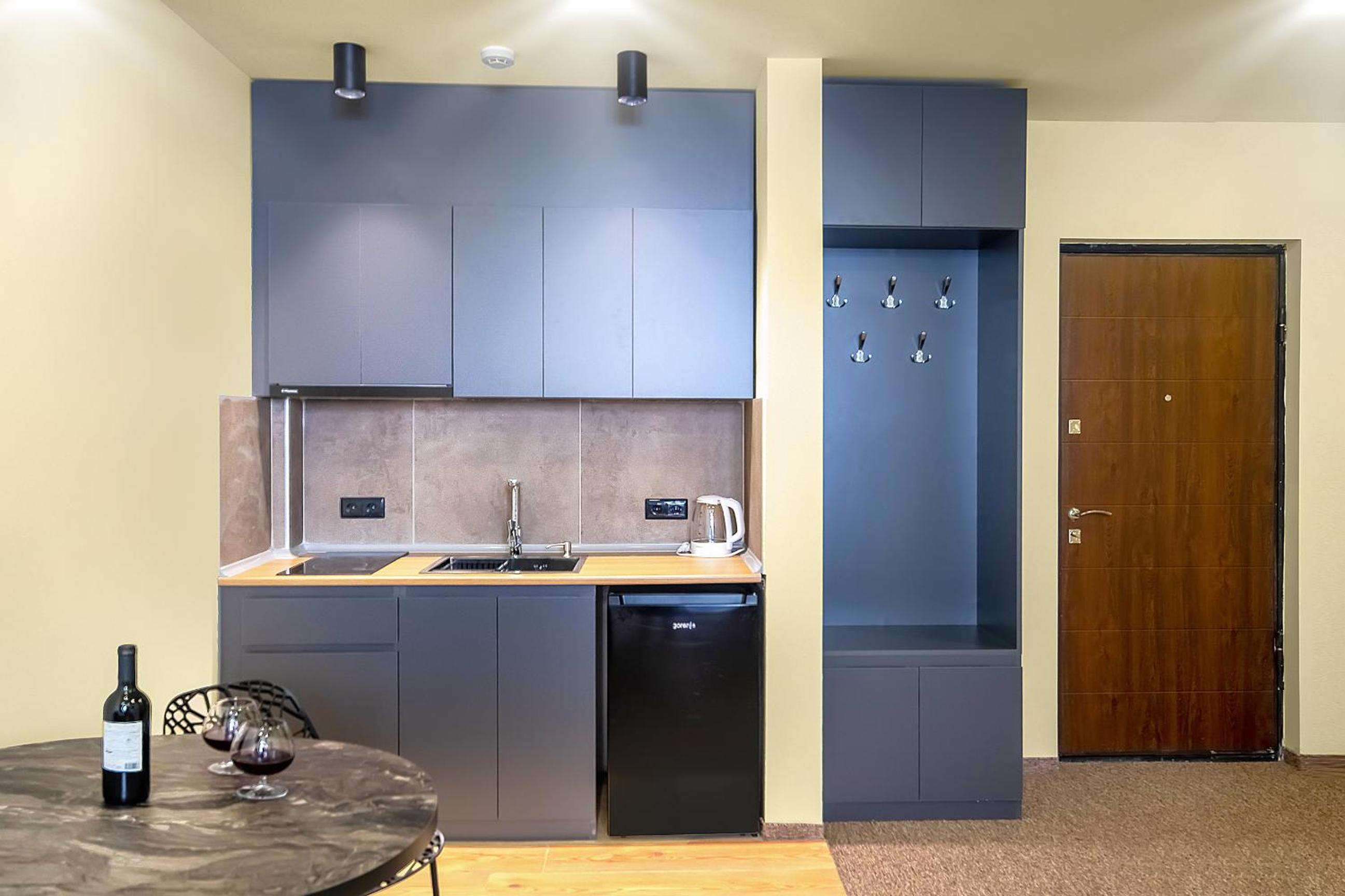 В номере не было вилок/ложек/чайника при наличии мини-кухни, но все это можно было попросить у персонала