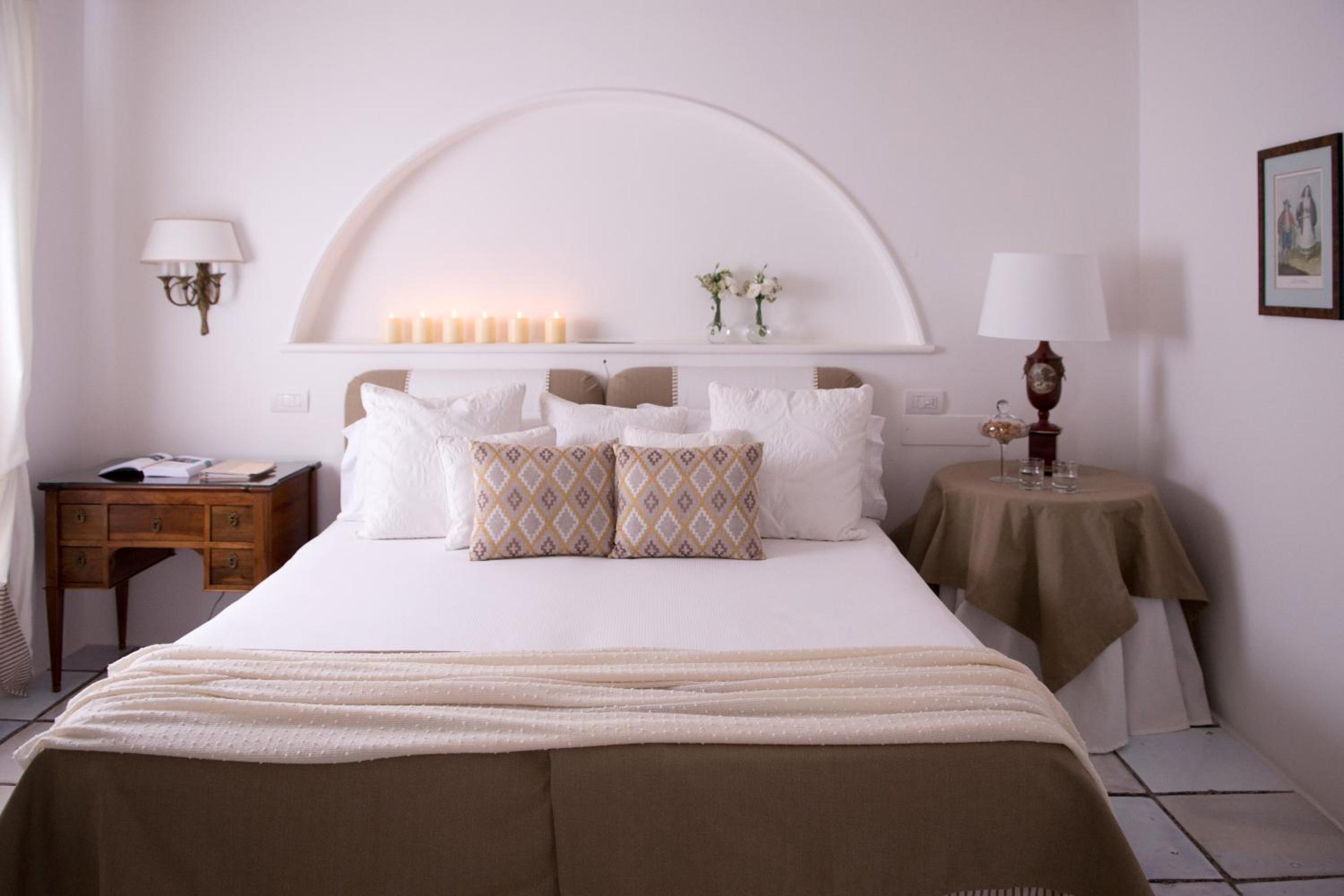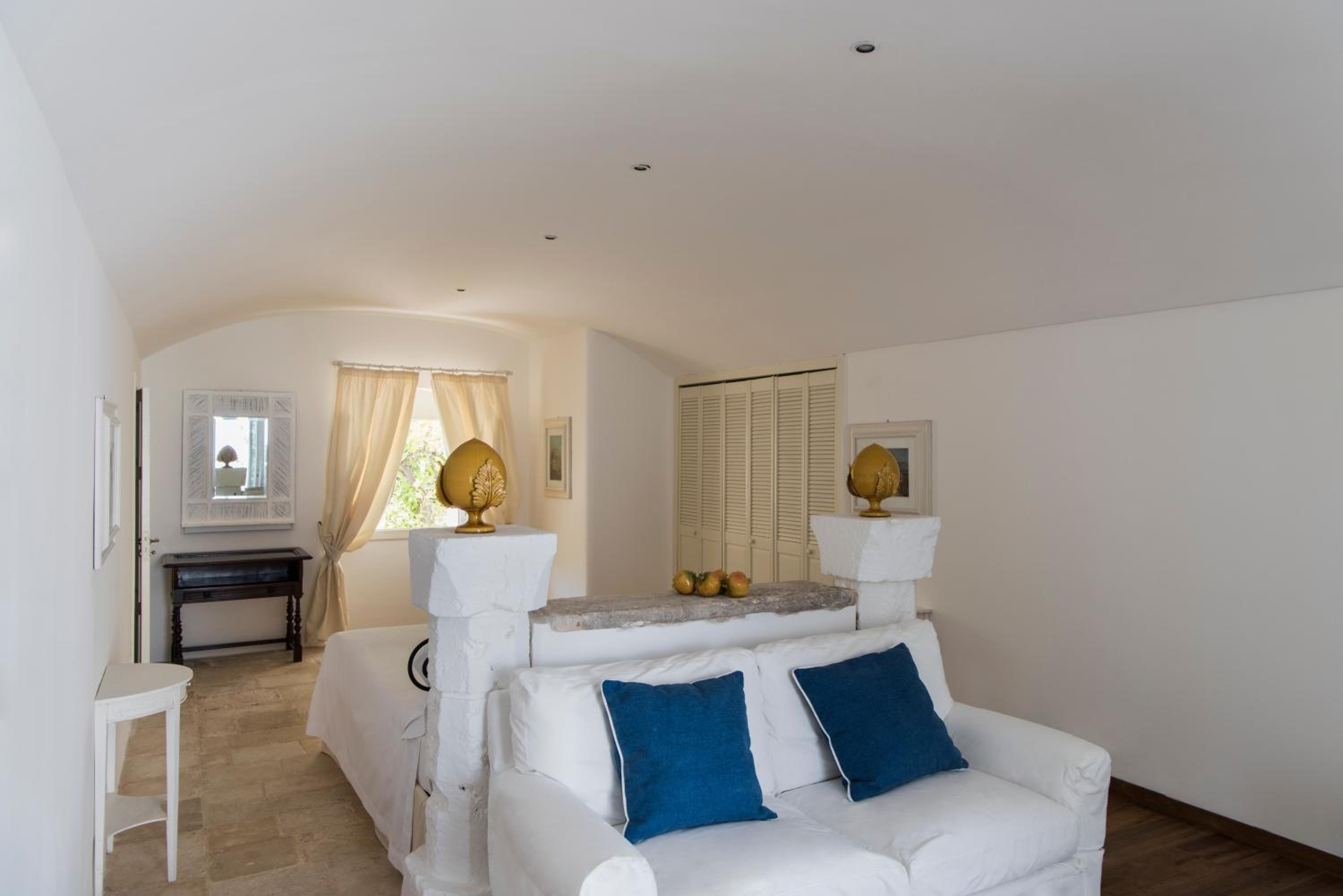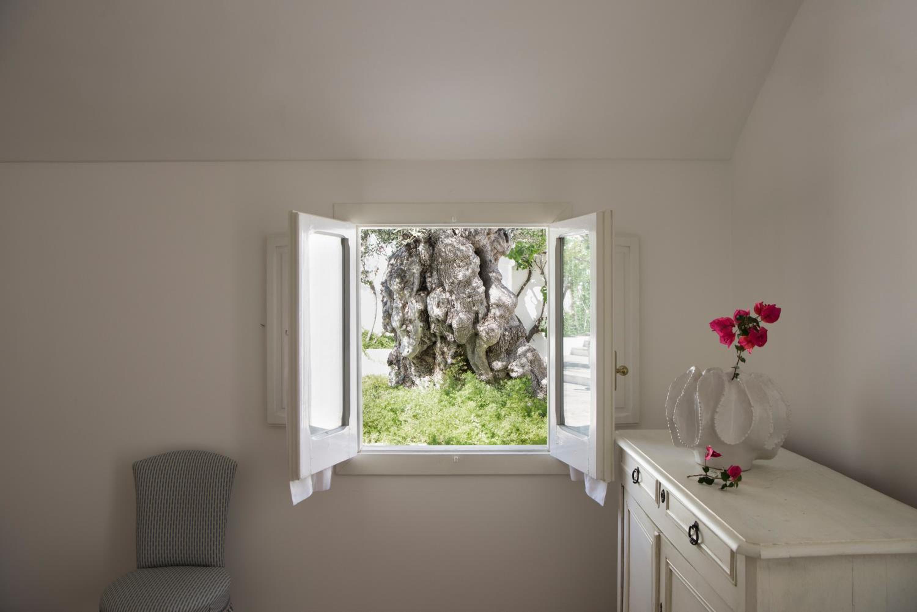 The buildings are on an immense plot of land in the middle or olive groves.It has many white washed buildings dotted with olives and flower. Many of the olives are many centuries old. the rooms are immaculate and tastefully furnished. The property exudes peacefulness.