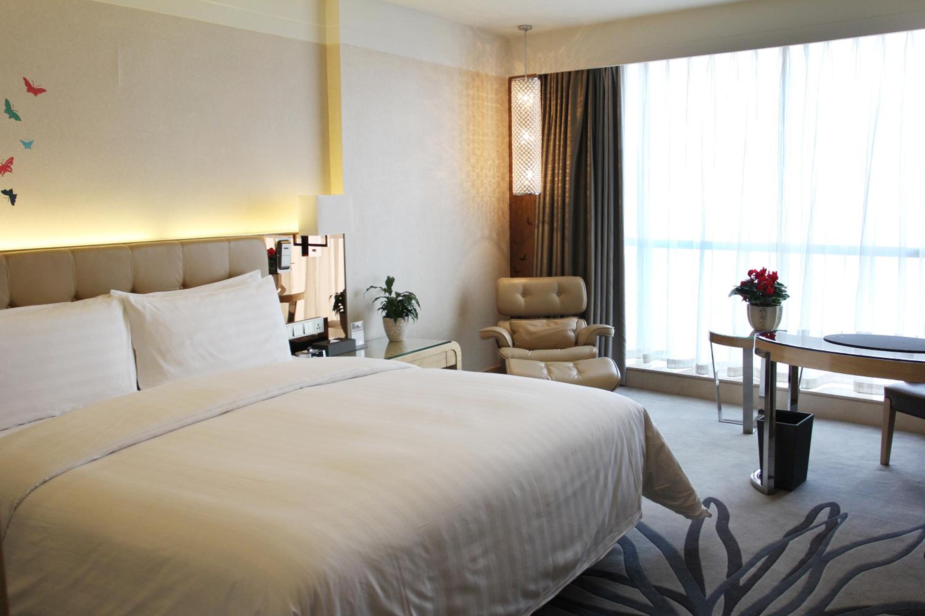 Pullman Linyi Lushang offers luxurious rooms with free wired internet, extra long beds, and iPod docking stations. The rooms are decorated in pleasant pastel colors, creating a serene atmosphere for guests to relax in after a day of exploring the city.