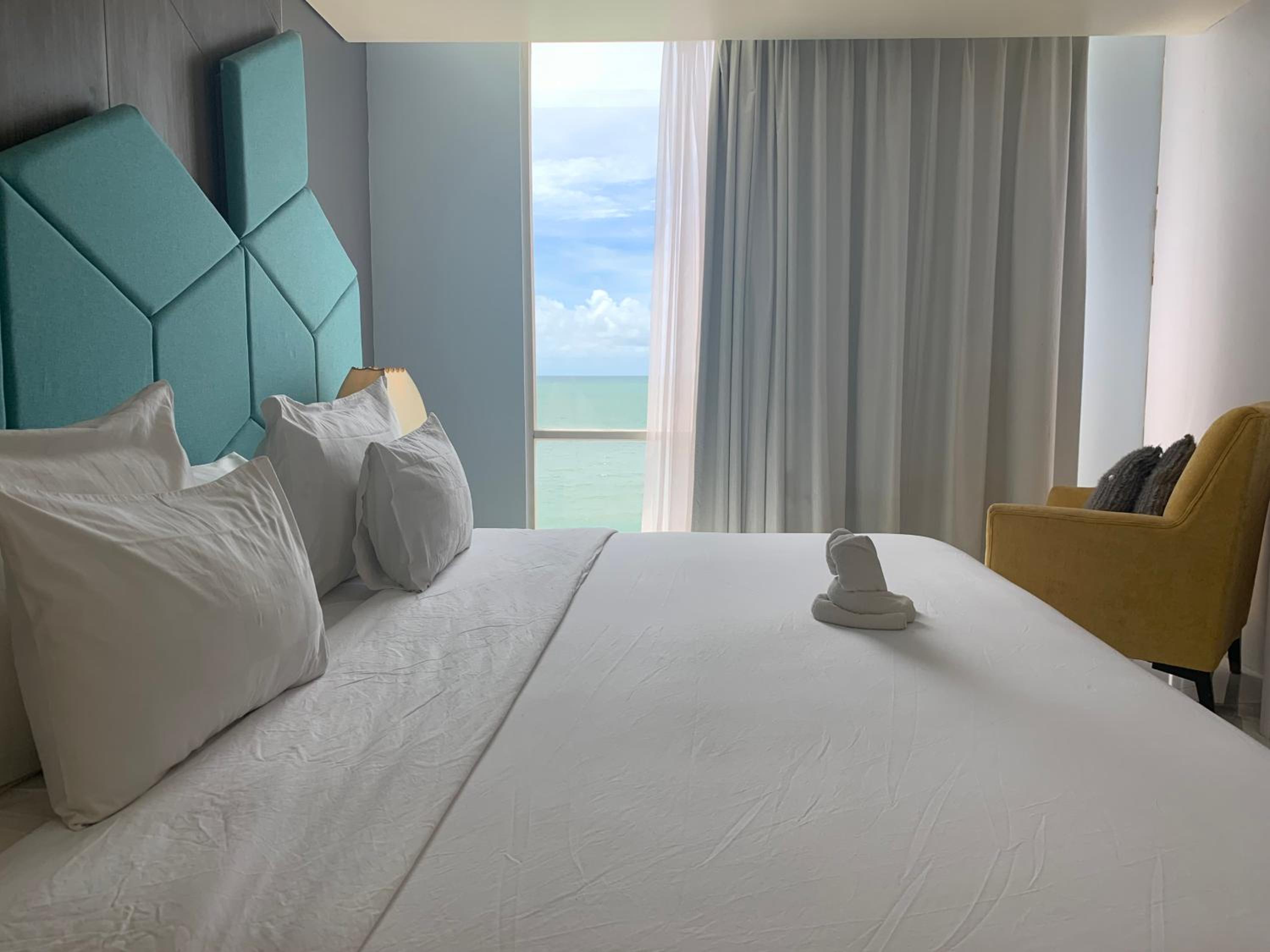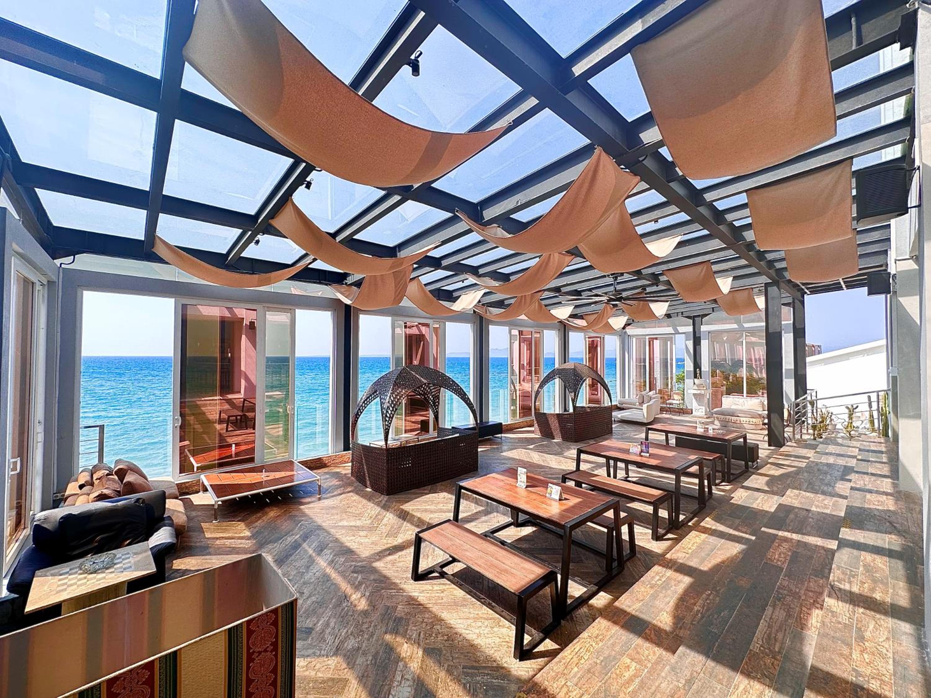 Beautiful location. The hotel is truly beachfront, less than 50 meters from the beach and the sea. Opening the large windows reveals a wide, uninterrupted view of the ocean. The room is also spacious, clean, and very pleasant.