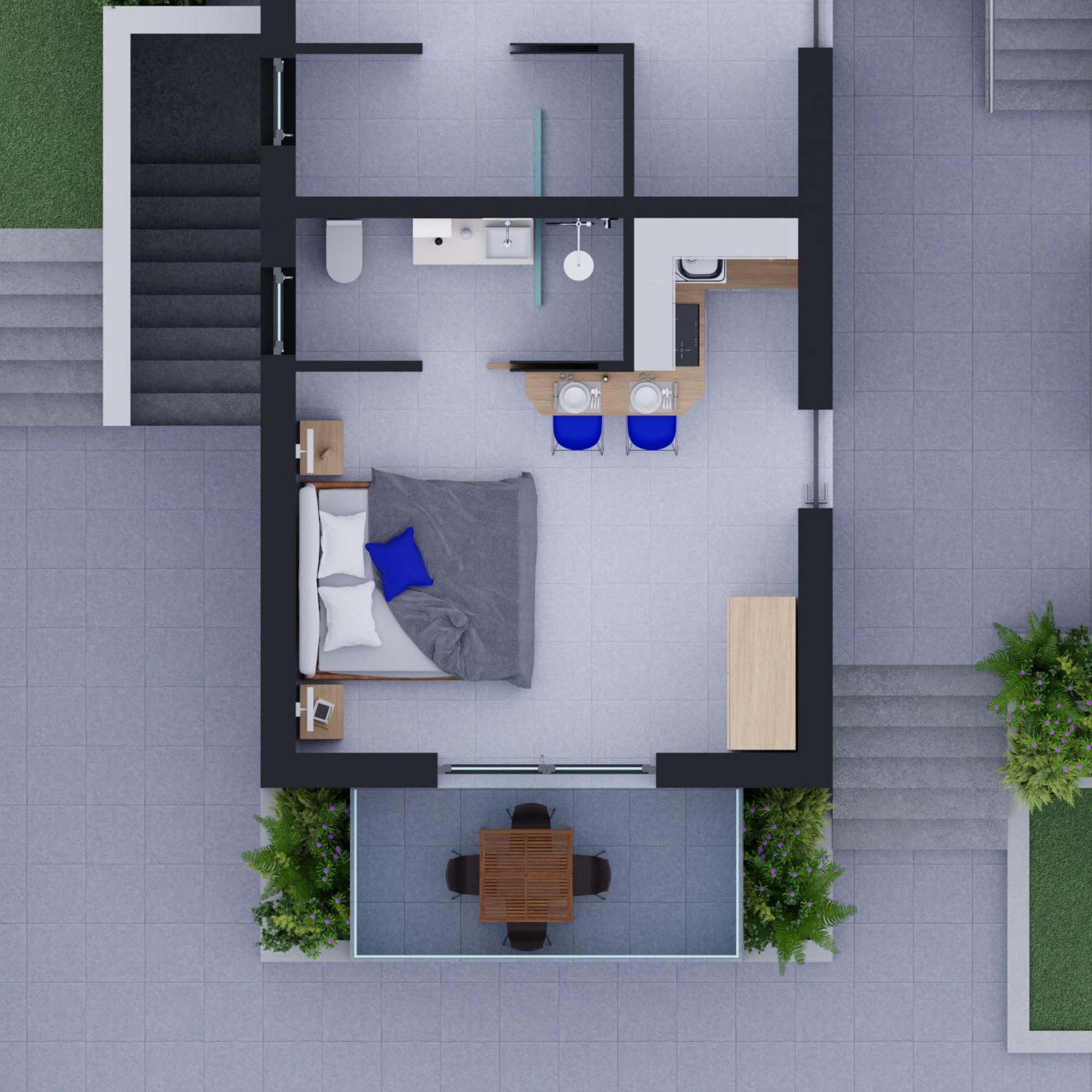 Super clean studio with a lovely pool
