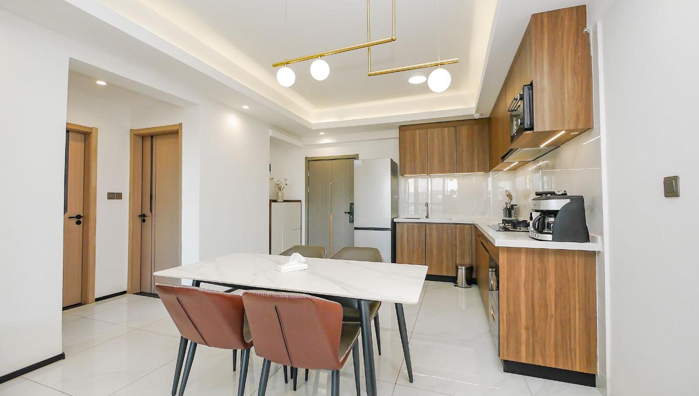 Indulge in home-cooked meals with our fully equipped kitchen while relishing stunning city views from your terrace.
