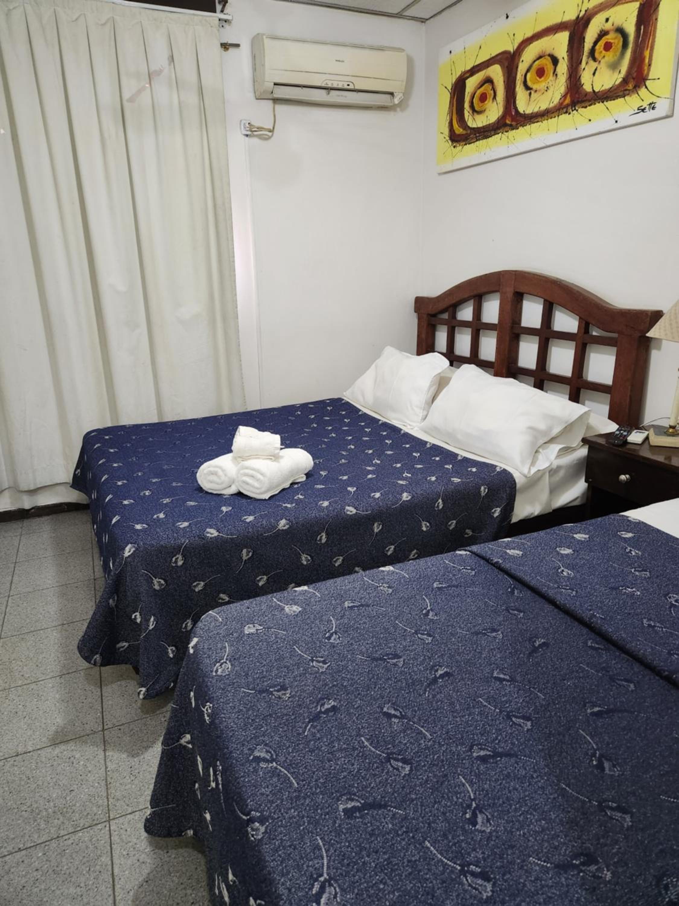 Del personal nada de que decir. Las camas no eran comodas, las almohadas viejas; el baño tenia una filtración de agua, pasaba mojado. La ducha no se podia mantener abierta, habia que cerrar la llave ya que se llenaba de agua y se mojaba el piso.