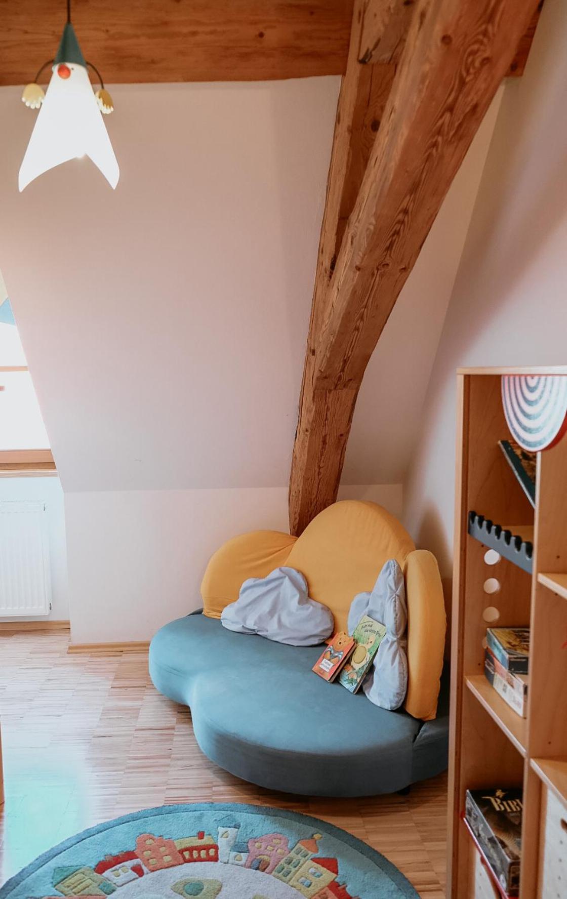 Für Kinder sehr geeignet, da es ein Gehege mit Schafen und einen tollen Spielplatz gibt.