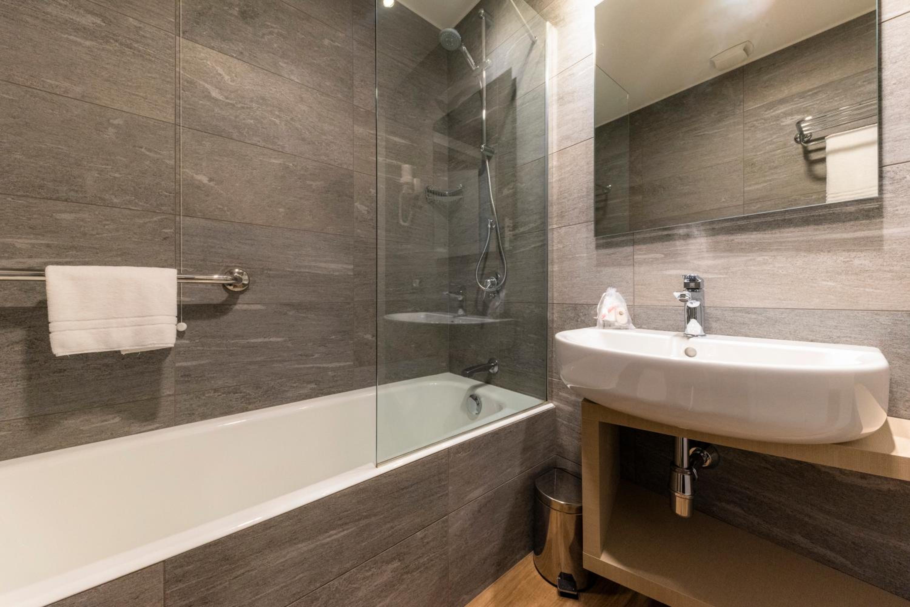 The hotel boasts modern, air-conditioned rooms equipped with a minibar and a private bathroom featuring a shower and a hairdryer, ensuring a comfortable stay for all guests.