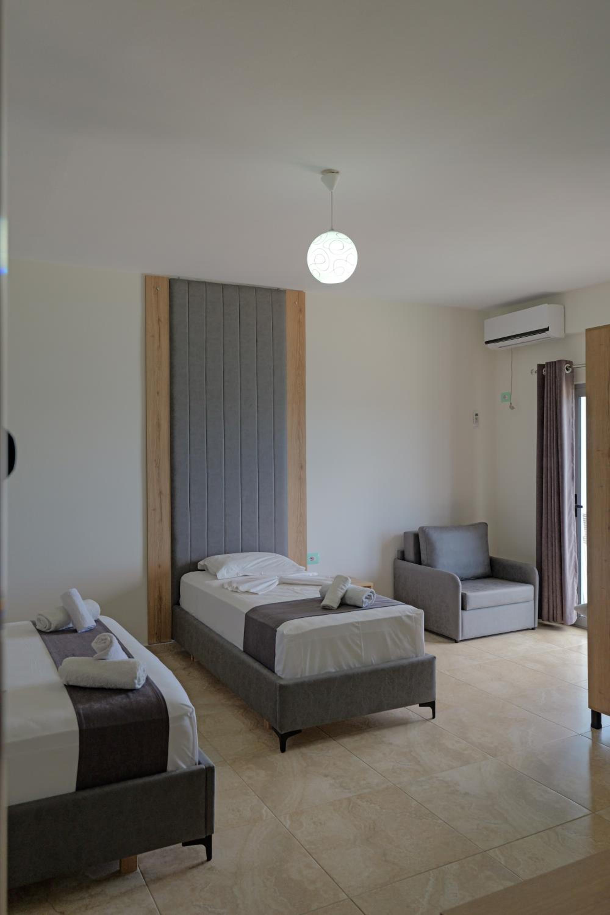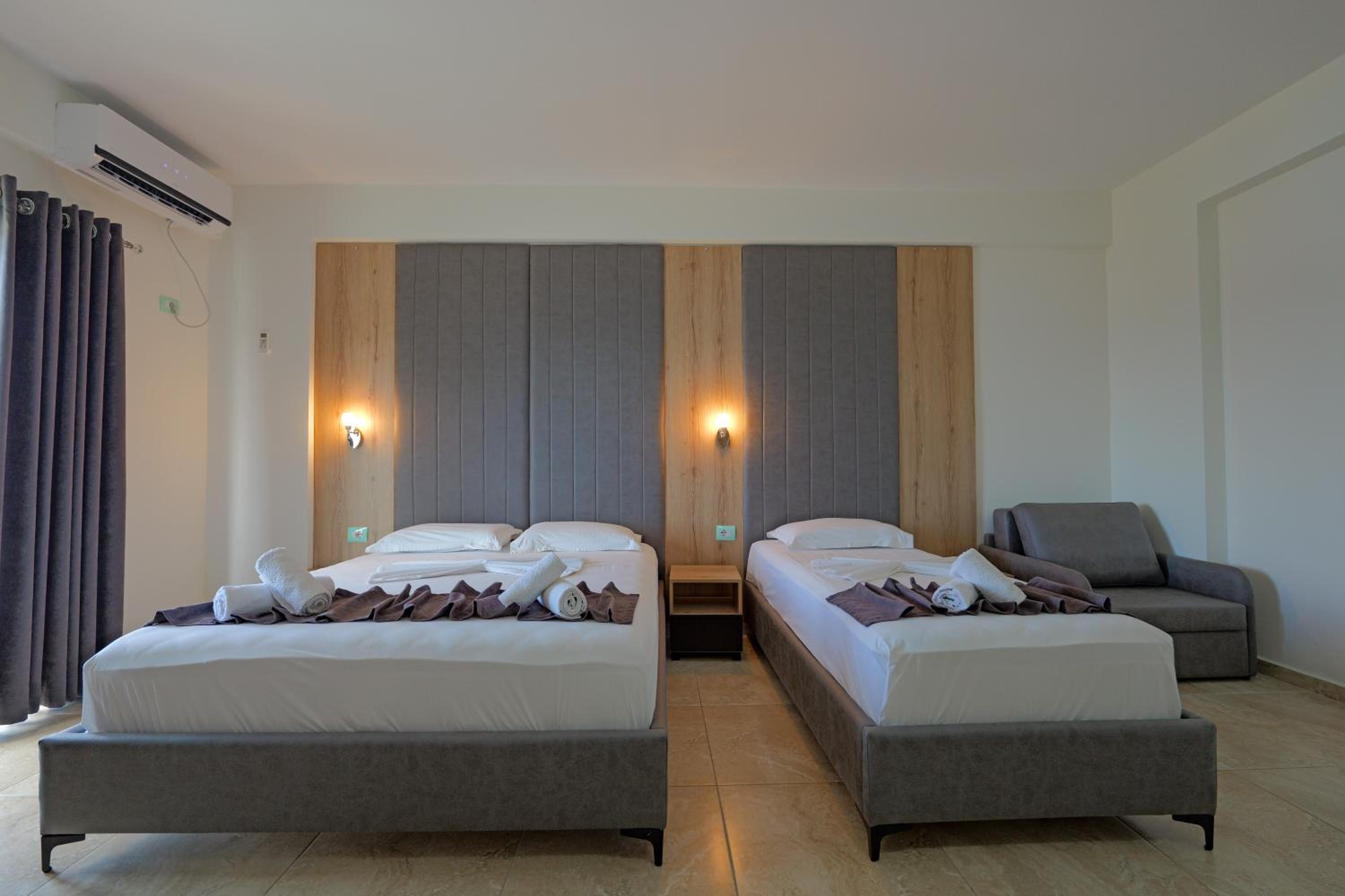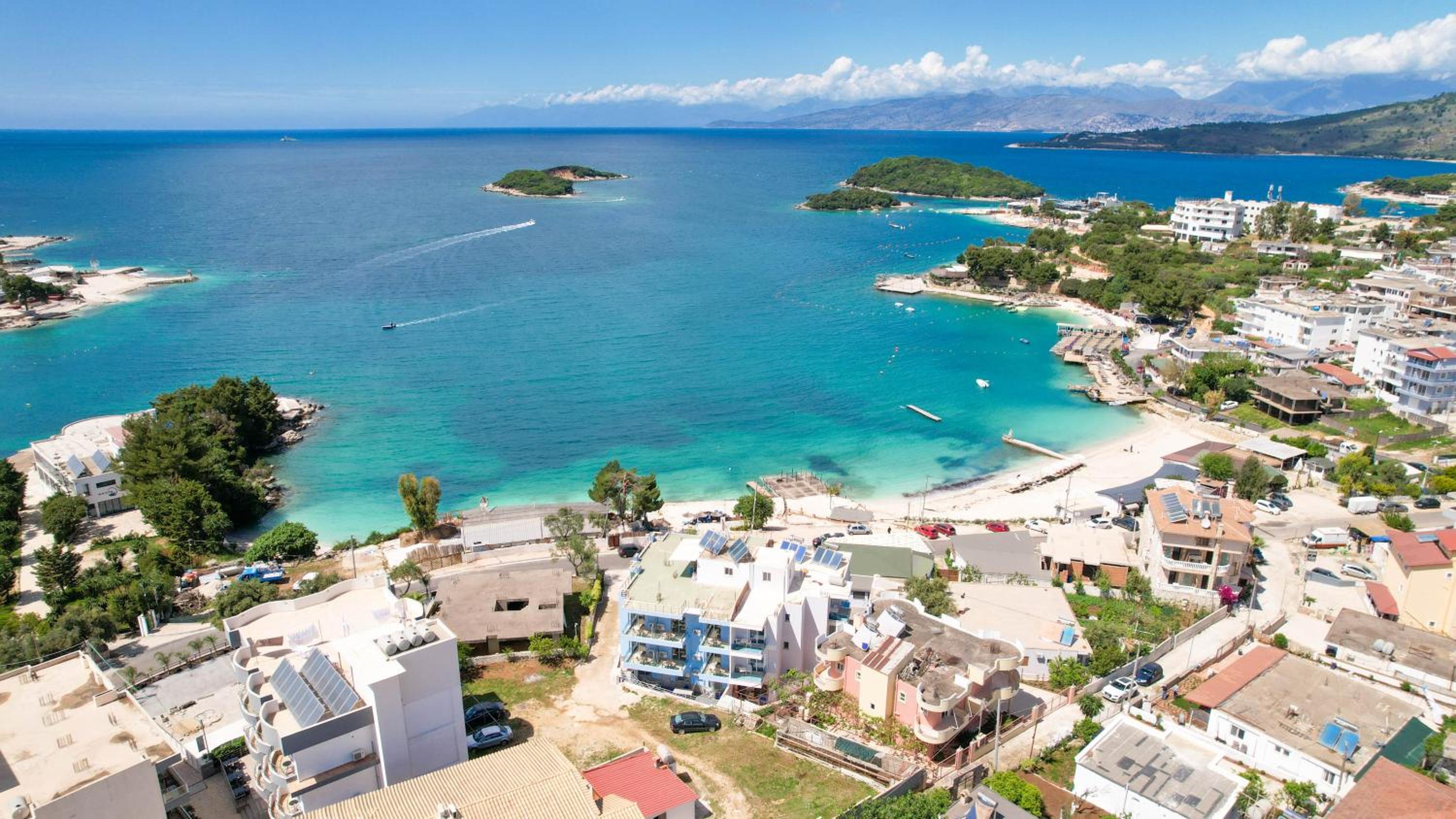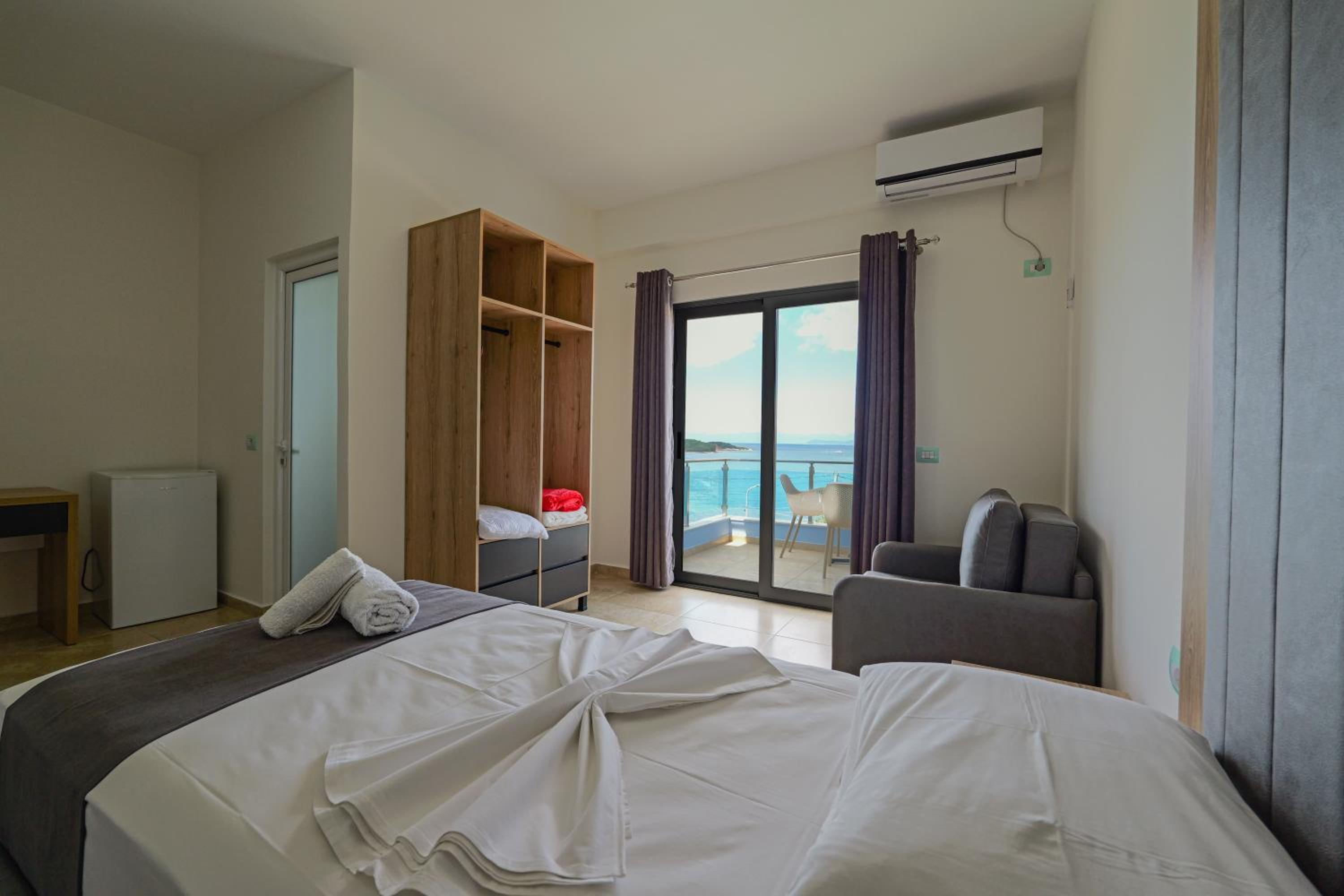 Hotel Esmerald Ksamil, located steps away from Ksamil Beach 9, offers a luxurious stay with spacious rooms featuring modern amenities like flat-screen TVs and private balconies with city views.