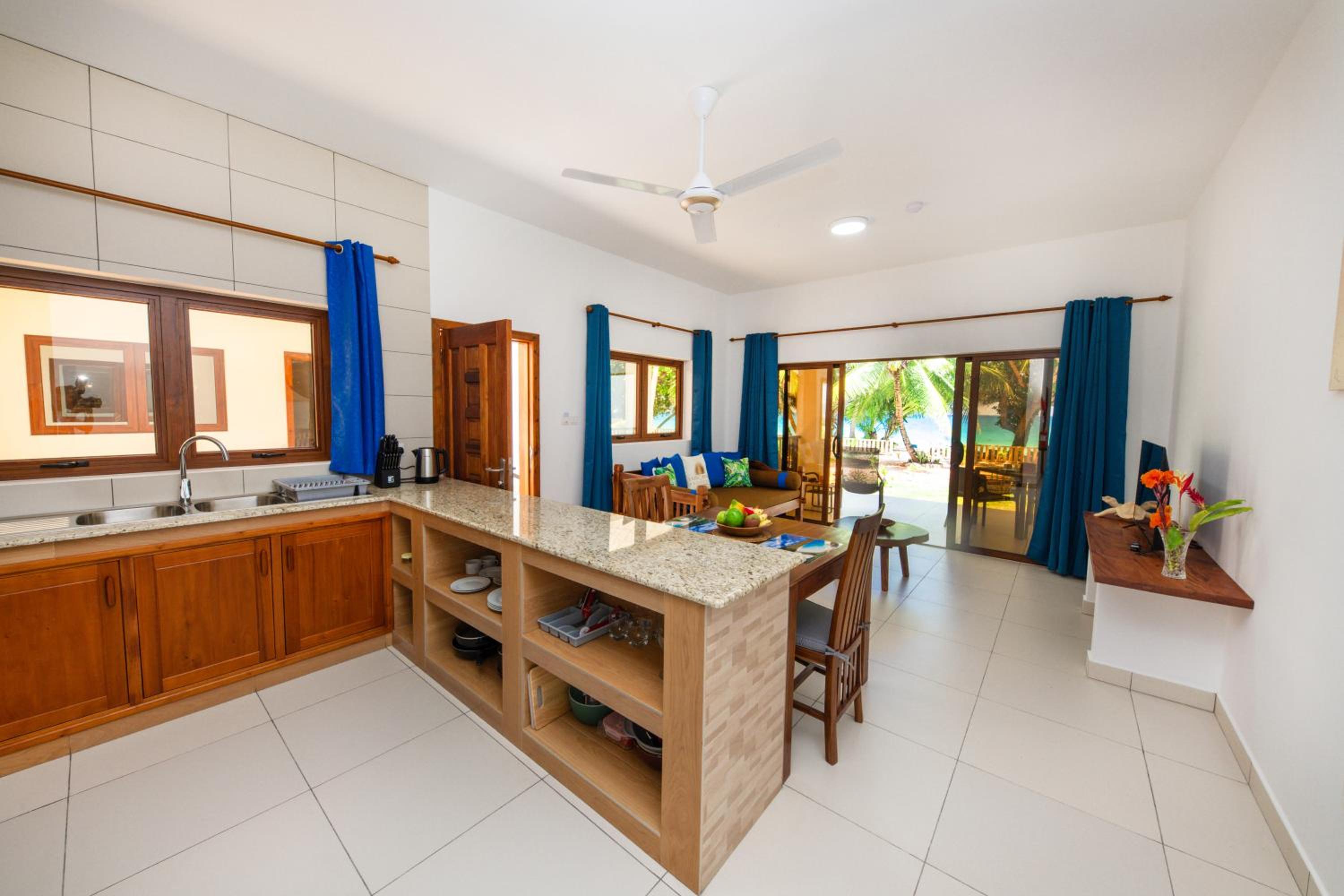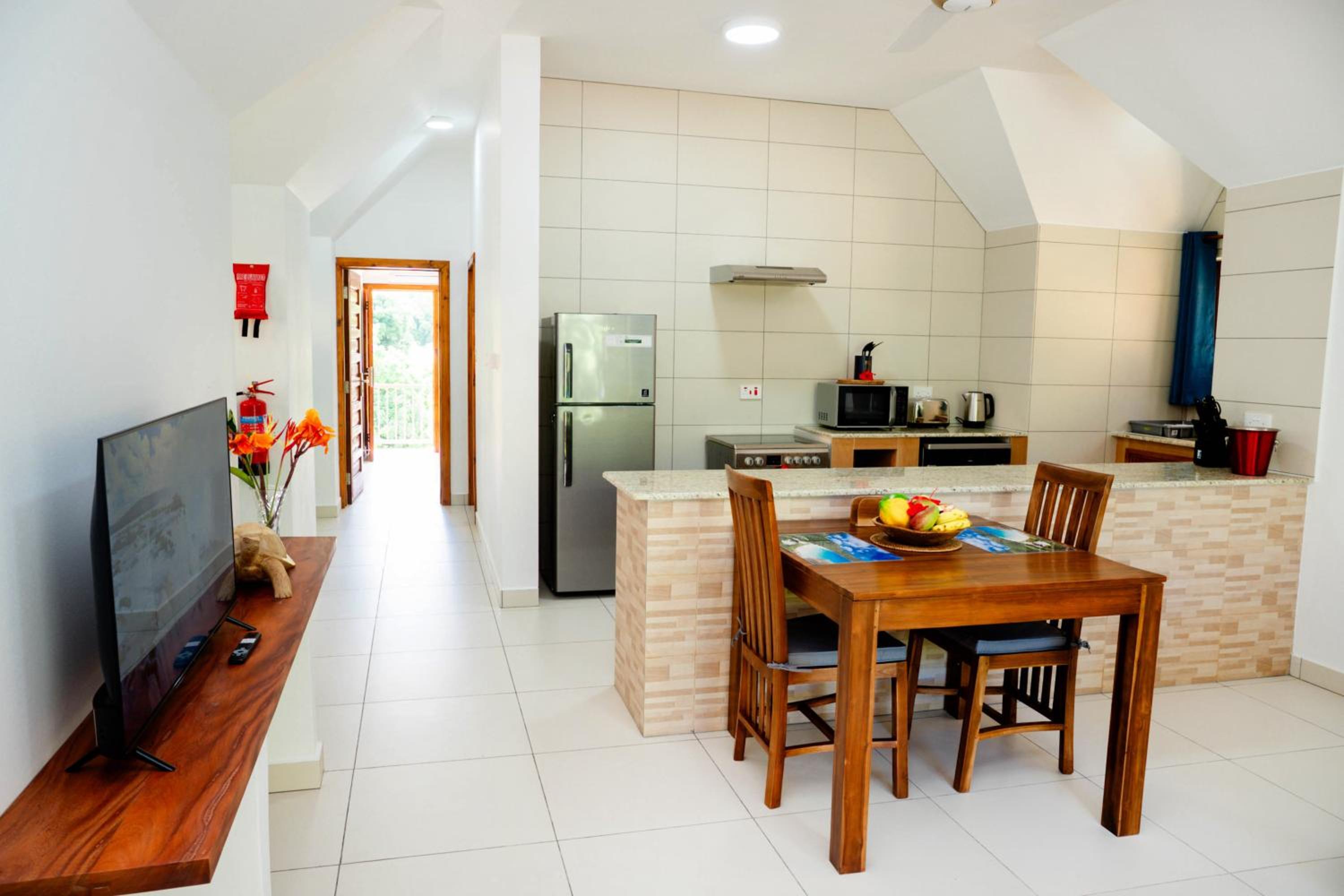 The apartments all face directly onto Anse Lazio, which we thought was the best beach in the Inner Islands by a long way. Incredible snorkelling, sunsets, and gorgeous white sand. From the apartments you have direct access straight onto the beach, which was amazing - you couldn’t ask for better on Praslin. We enjoyed many lovely evenings on the terrace looking out onto the waves. In addition the room was very clean and comfortable, a good shower, and the family are lovely and welcoming.