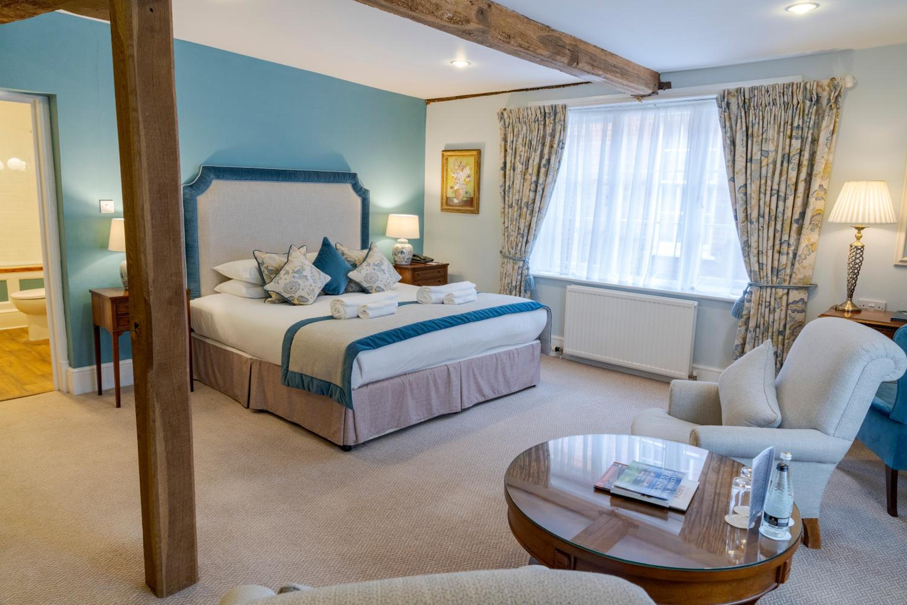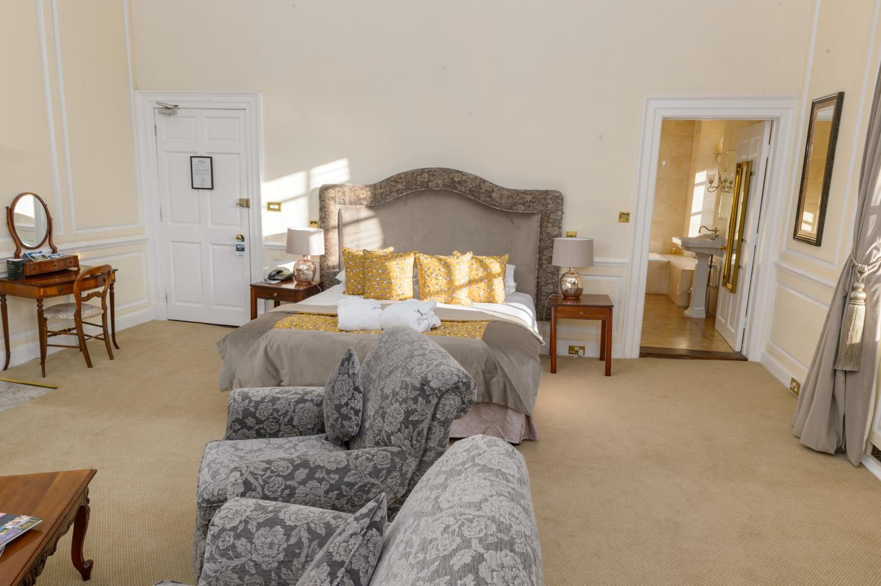 Step into a world of elegance and history at Hintlesham Hall, where 32 uniquely designed bedrooms and suites await you. Adorned with fine fabrics, artworks, and antiques, each room offers a blend of comfort and sophistication.