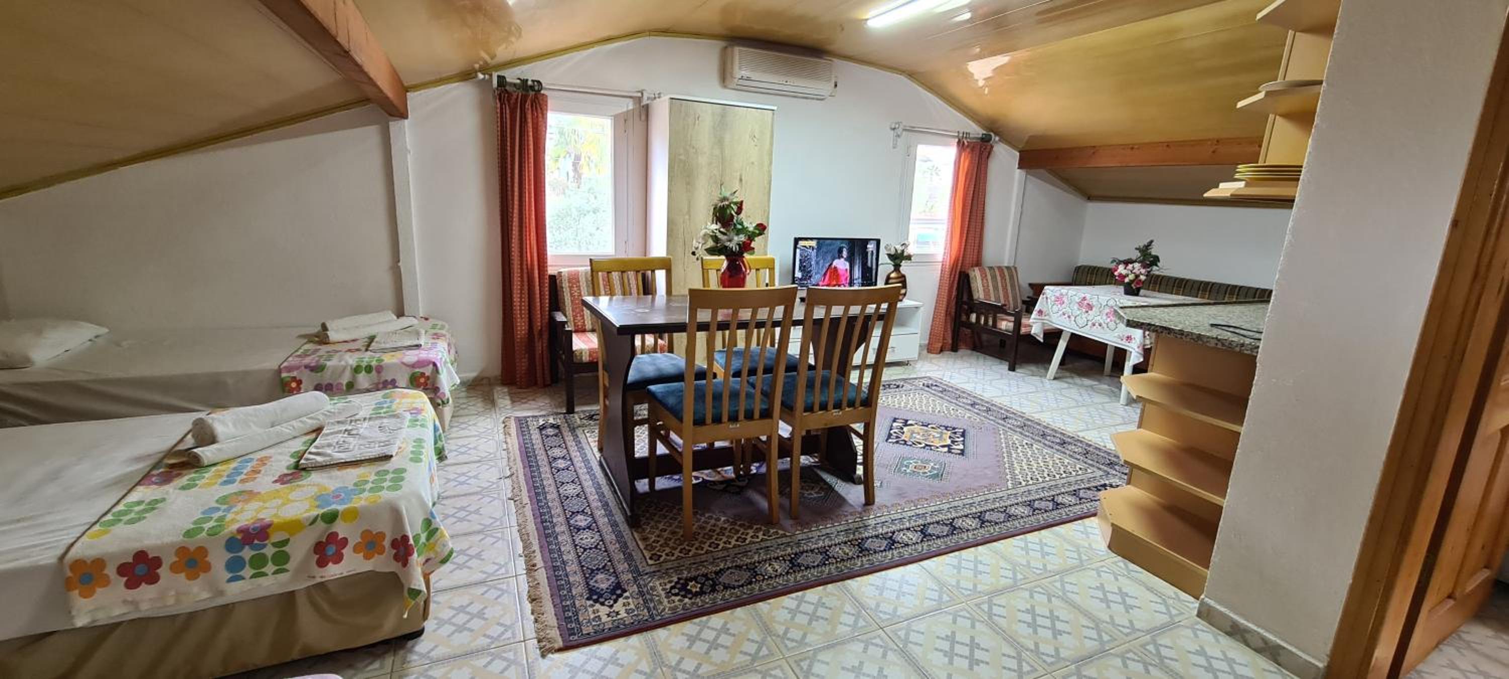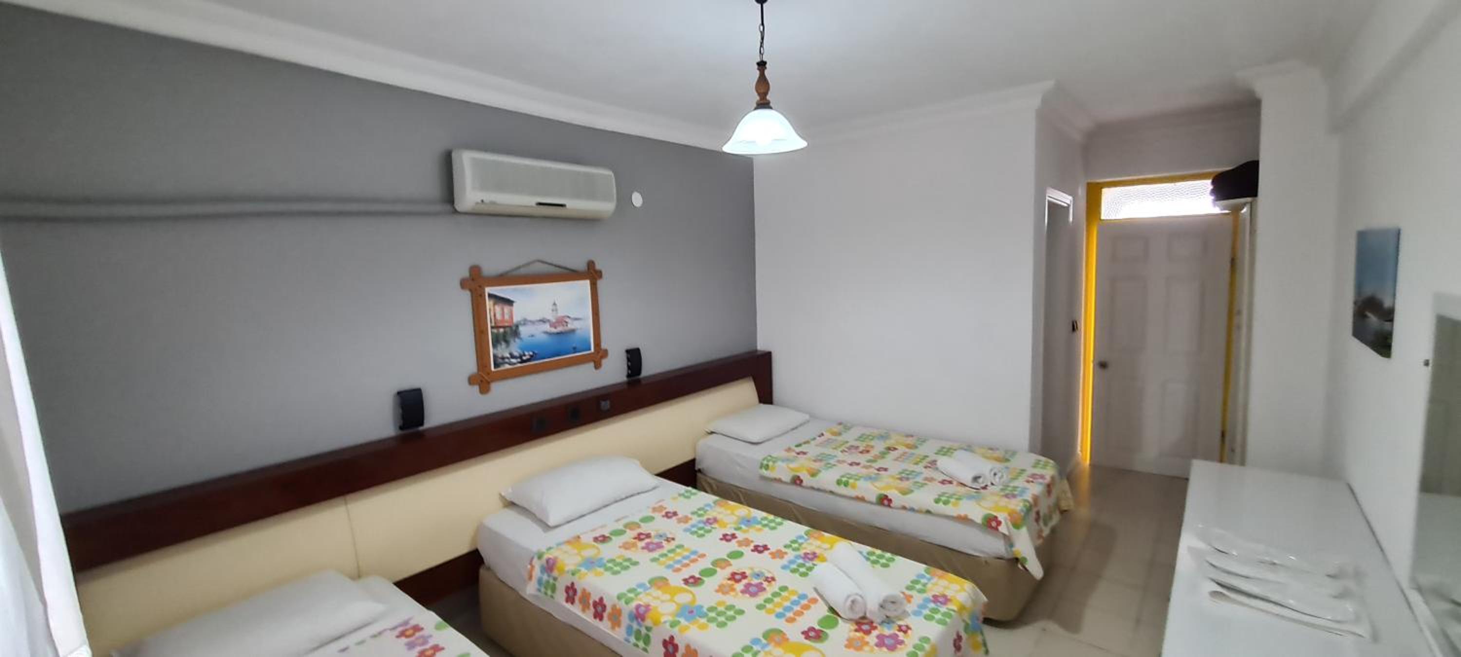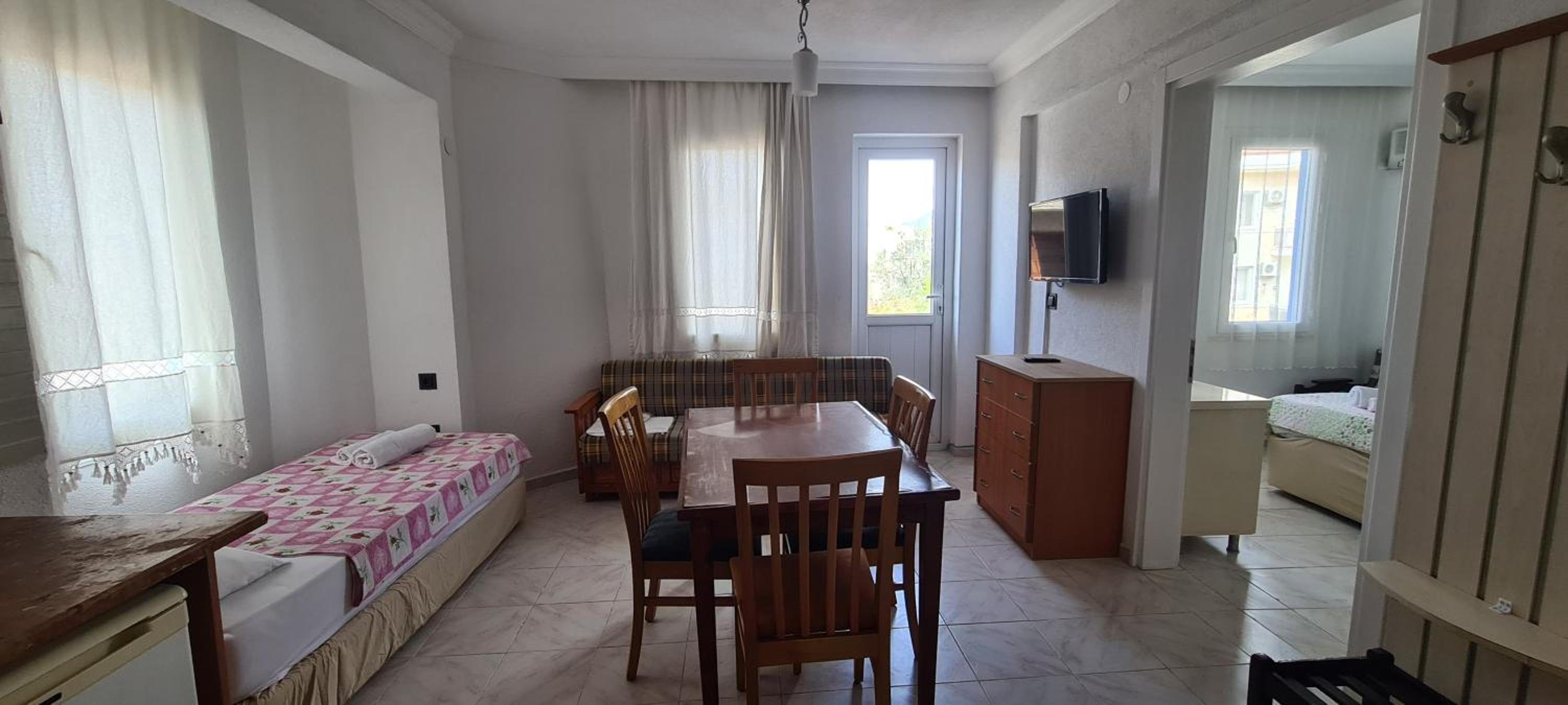 I stayed at California Apart Hotel, with my family, for 4 nights. We booked 2 separate rooms. California Apart Hotel is in a beautiful location; 2/3 KM from Oludeniz Beach and right next to a main shopping/dining area. We really enjoyed to locality. The Apart Hotel is generally very nicely built and in a good location. However, it does need some improvements/modernization. When we moved in our room, there was a lot of water on one side of the room. I think the floor was washed before and water was accumulated on one side, under the bed. We had to wipe it ourselves. The room are very basic. Having said all this, I must admit that it was really value for money. When we checked other hotels during our stay, they were at least 50% more expensive than California Apart Hotel. So, if you are on a tight budget, go for it; you will not be disappointed.